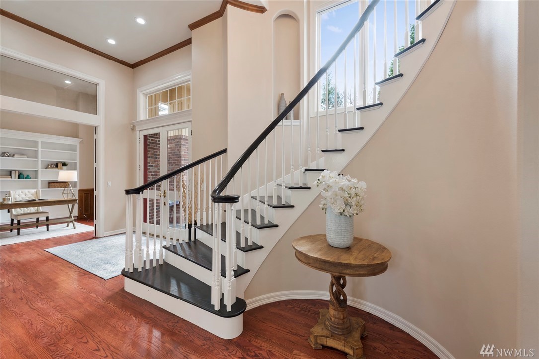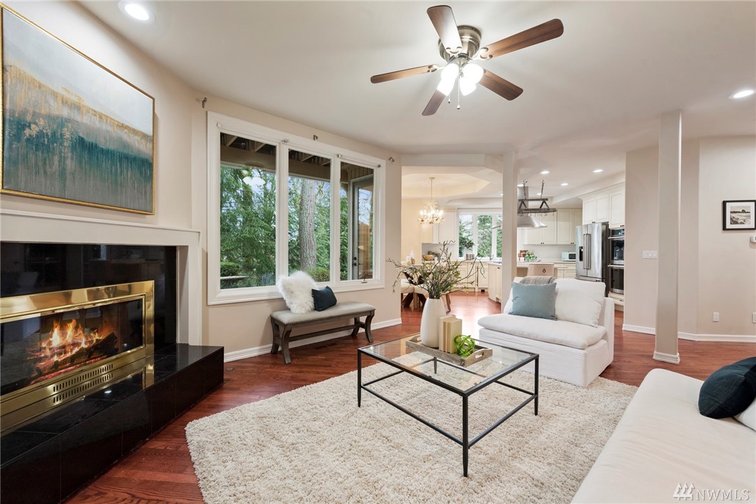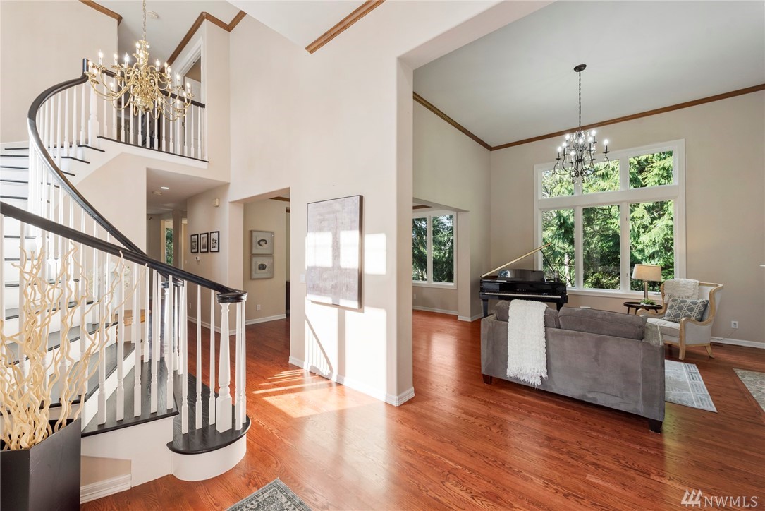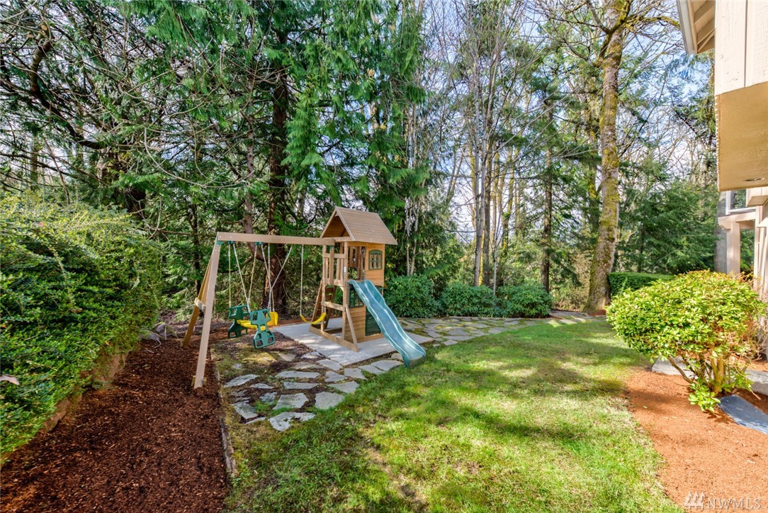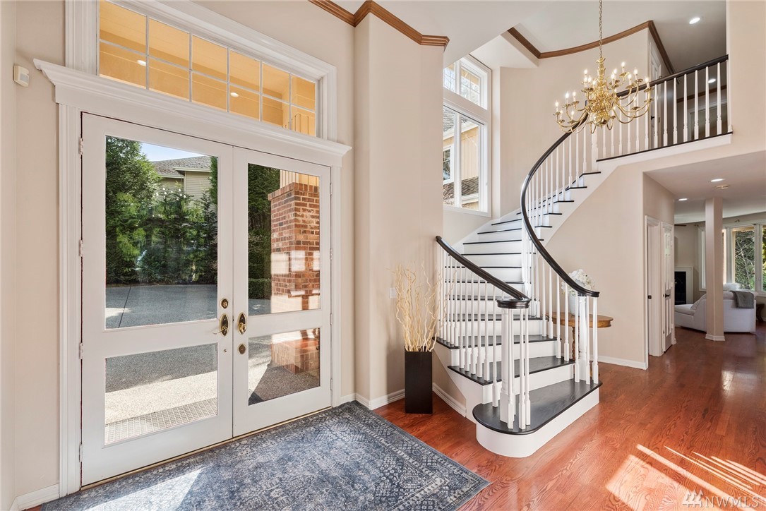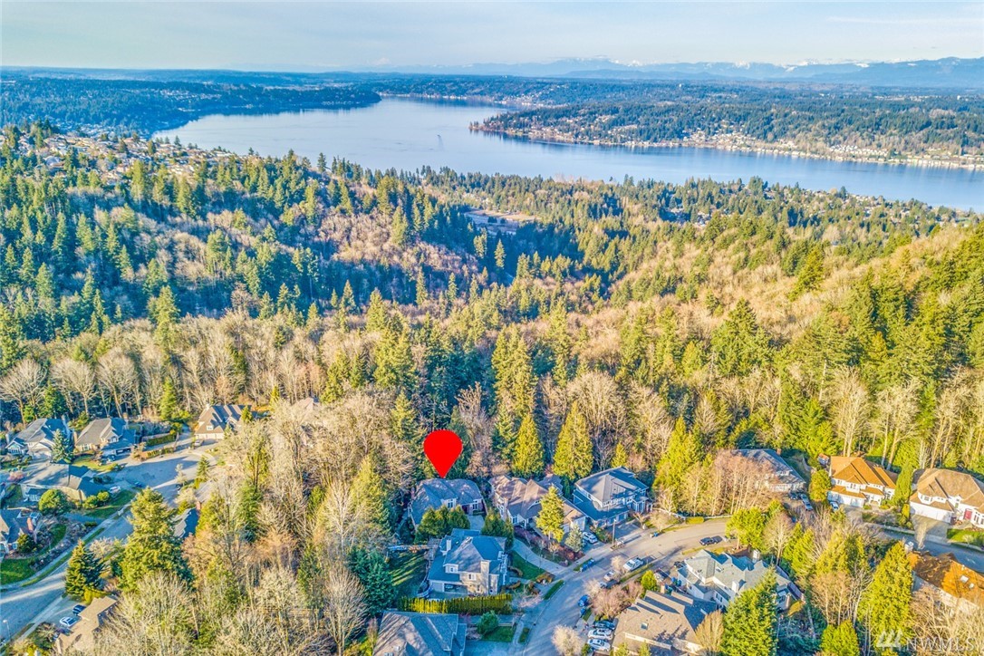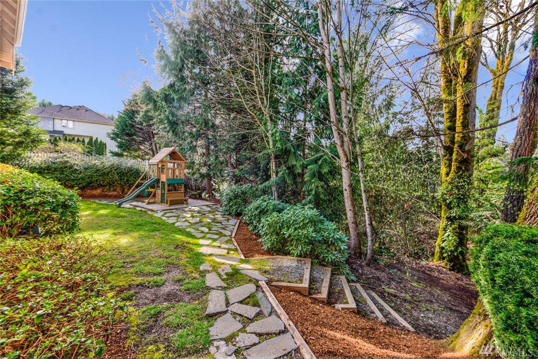 This stunningly remodeled LAKEMONT home backs to a greenbelt with tranquil stream and hiking trail for complete privacy. Grand entry with soaring ceilings welcomes you home. Bright open Living Rm with Secret Rm behind bookshelf. Den features custom built-ins and wainscoting, perfect for work or study. Newly Buffed Hardwood floors throughout main level. New Kitchen with upscale appliances opens to Spacious Family Rm. Elegant spiral staircase to 2nd floor. Luxurious master suite with newly updated 5-piece master bath and more. New quartz countertops throughout. Newer carpet. New Balcony upstairs. 5th BR could be bonus/media Rm. Back yard patio with partial lake view! Prime location near retail, dining, parks, minutes to I90. A must see.