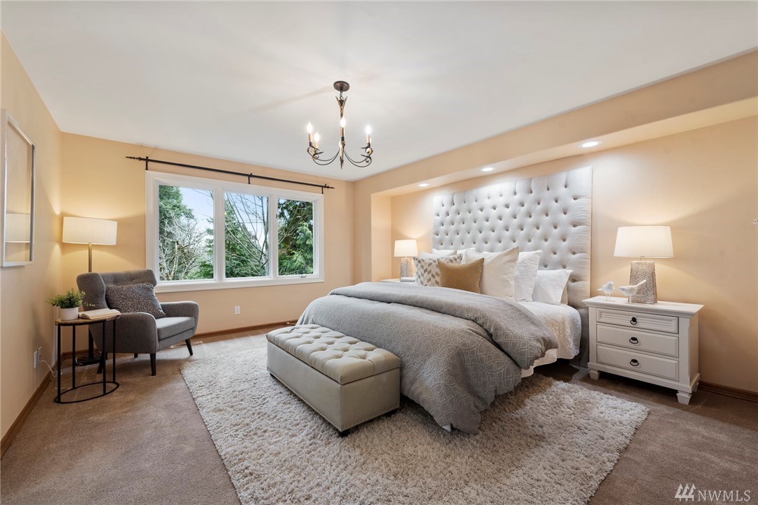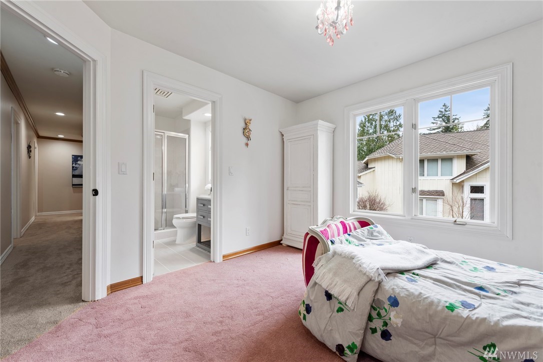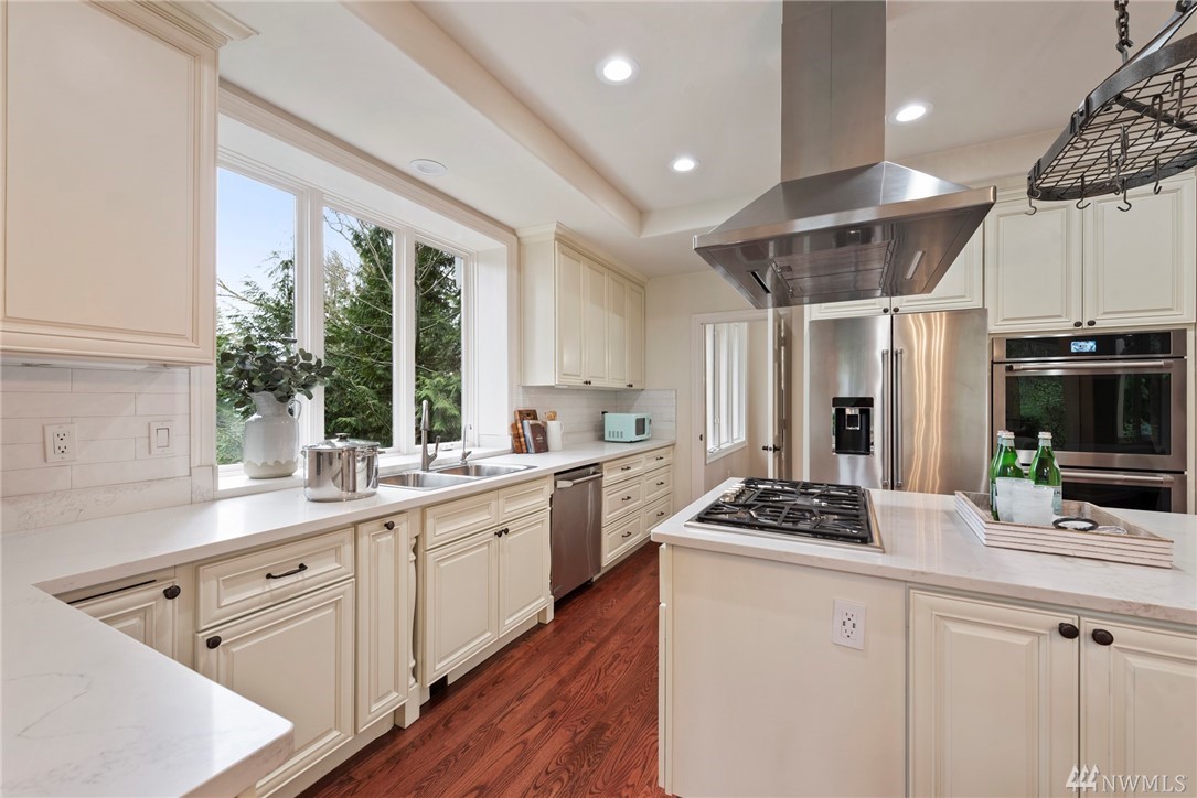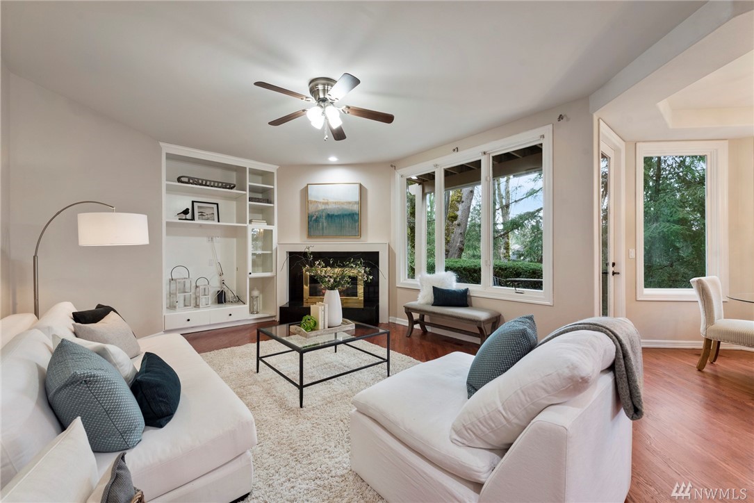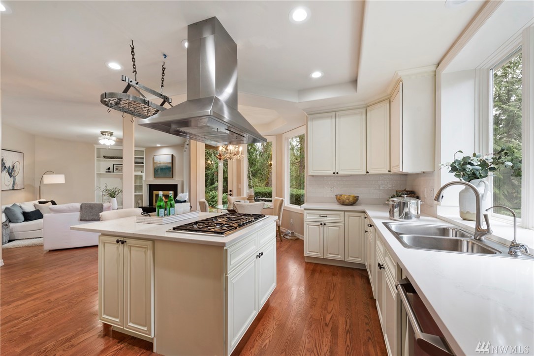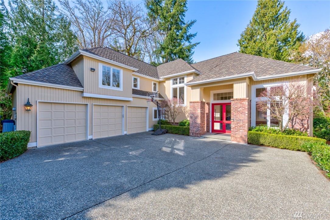 This stunningly remodeled LAKEMONT home backs to a greenbelt with tranquil stream and hiking trail for complete privacy. Grand entry with soaring ceilings welcomes you home. Bright open Living Rm with Secret Rm behind bookshelf. Den features custom built-ins and wainscoting, perfect for work or study. Newly Buffed Hardwood floors throughout main level. New Kitchen with upscale appliances opens to Spacious Family Rm. Elegant spiral staircase to 2nd floor. Luxurious master suite with newly updated 5-piece master bath and more. New quartz countertops throughout. Newer carpet. New Balcony upstairs. 5th BR could be bonus/media Rm. Back yard patio with partial lake view! Prime location near retail, dining, parks, minutes to I90. A must see.