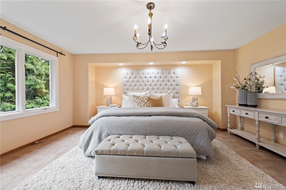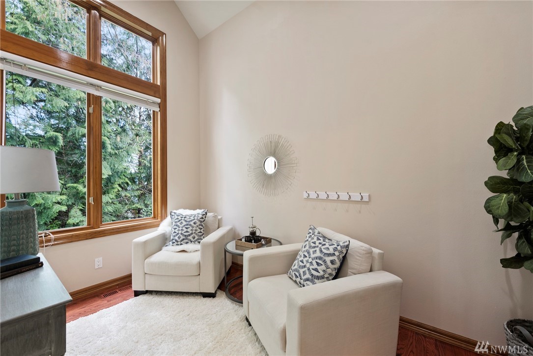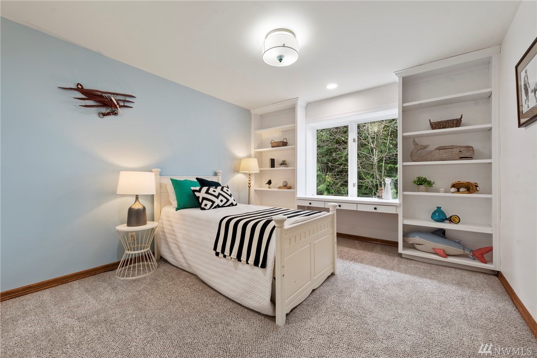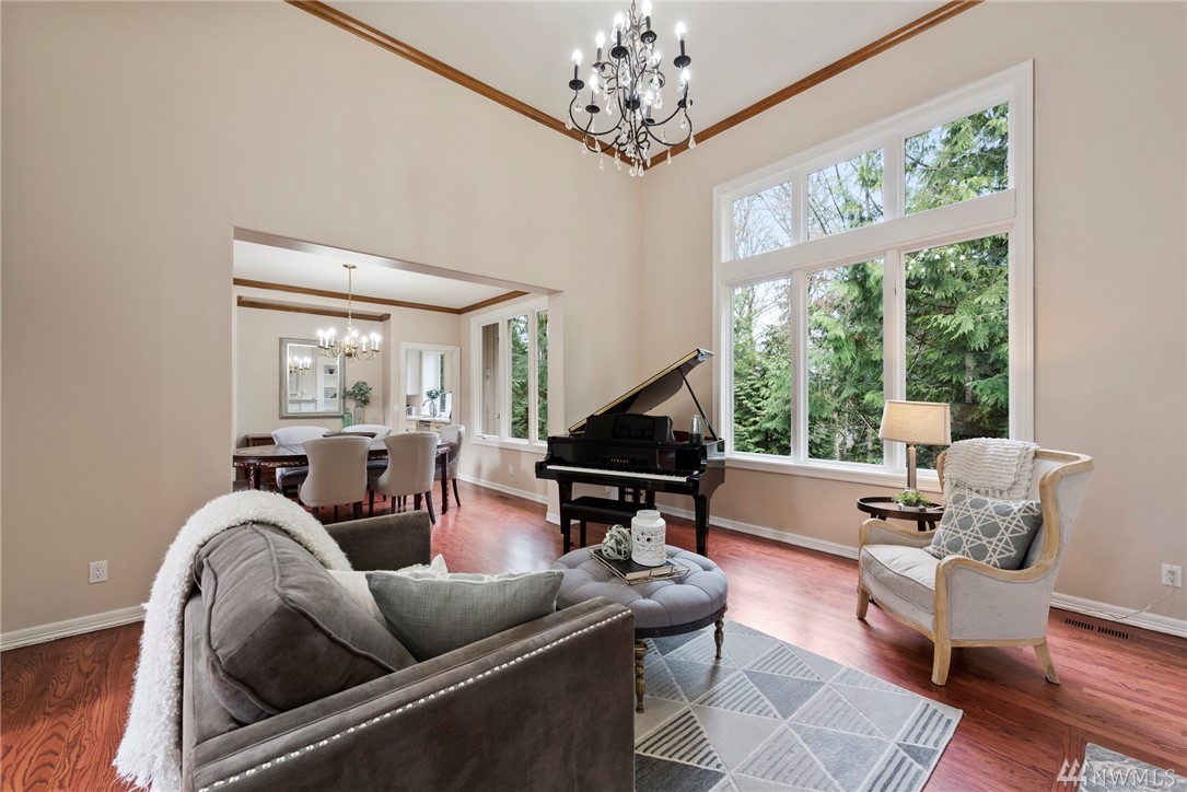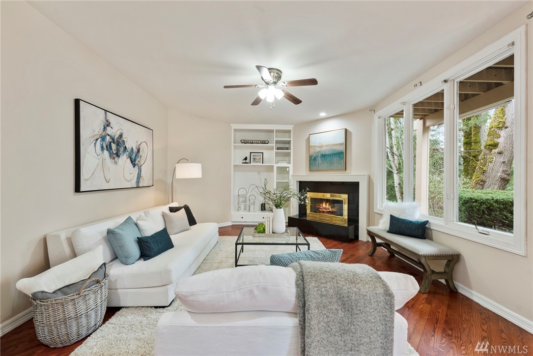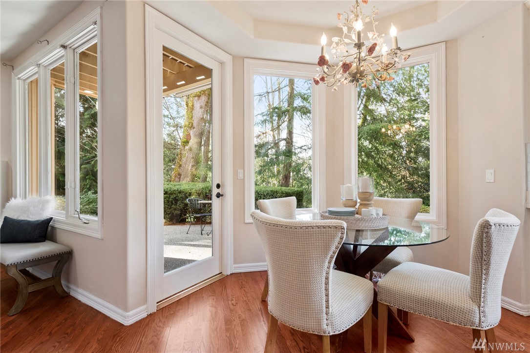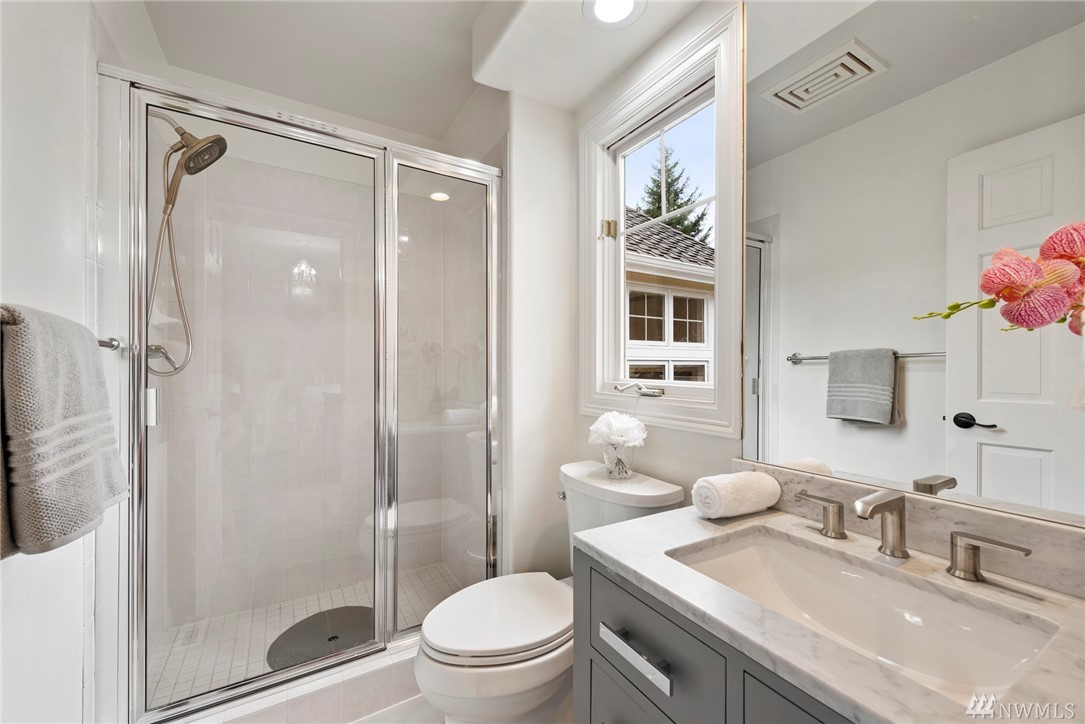 This stunningly remodeled LAKEMONT home backs to a greenbelt with tranquil stream and hiking trail for complete privacy. Grand entry with soaring ceilings welcomes you home. Bright open Living Rm with Secret Rm behind bookshelf. Den features custom built-ins and wainscoting, perfect for work or study. Newly Buffed Hardwood floors throughout main level. New Kitchen with upscale appliances opens to Spacious Family Rm. Elegant spiral staircase to 2nd floor. Luxurious master suite with newly updated 5-piece master bath and more. New quartz countertops throughout. Newer carpet. New Balcony upstairs. 5th BR could be bonus/media Rm. Back yard patio with partial lake view! Prime location near retail, dining, parks, minutes to I90. A must see.