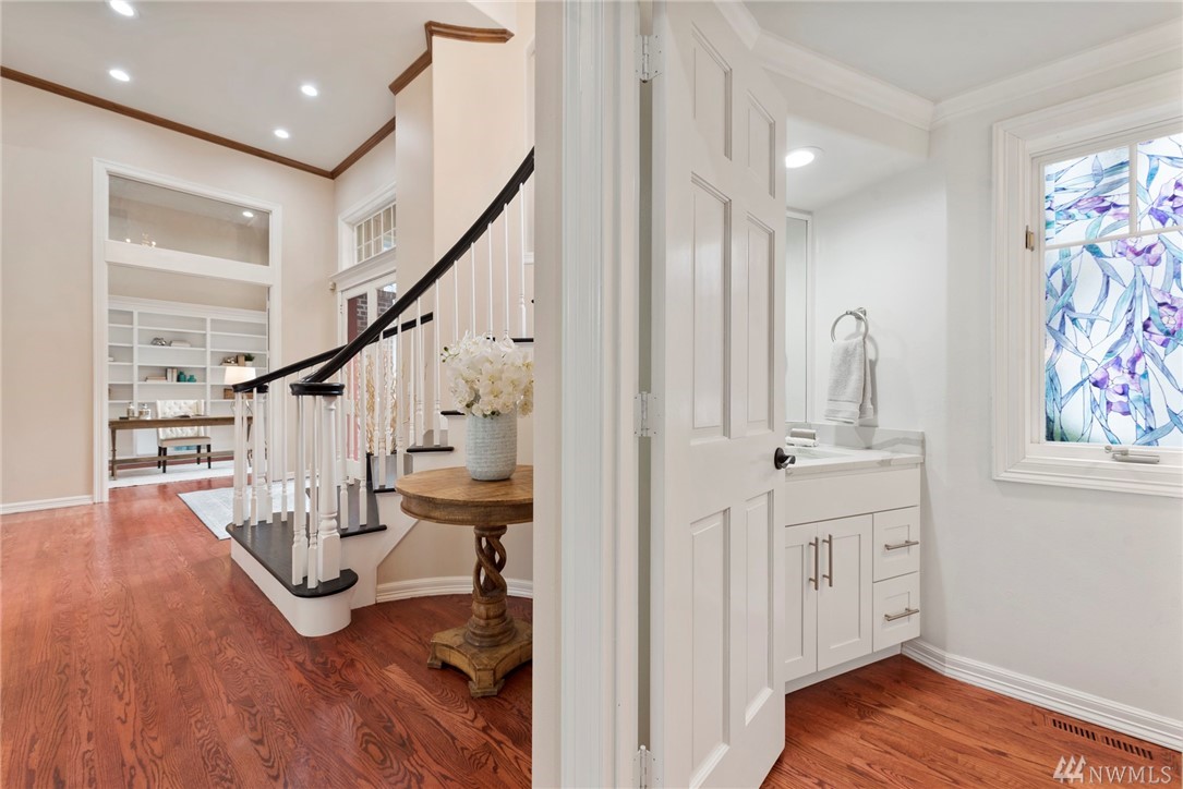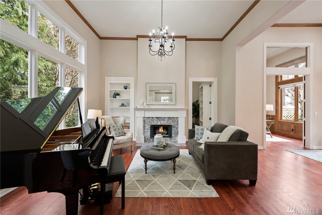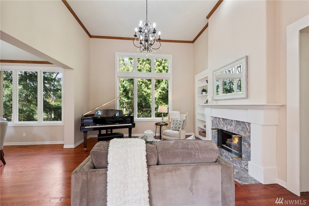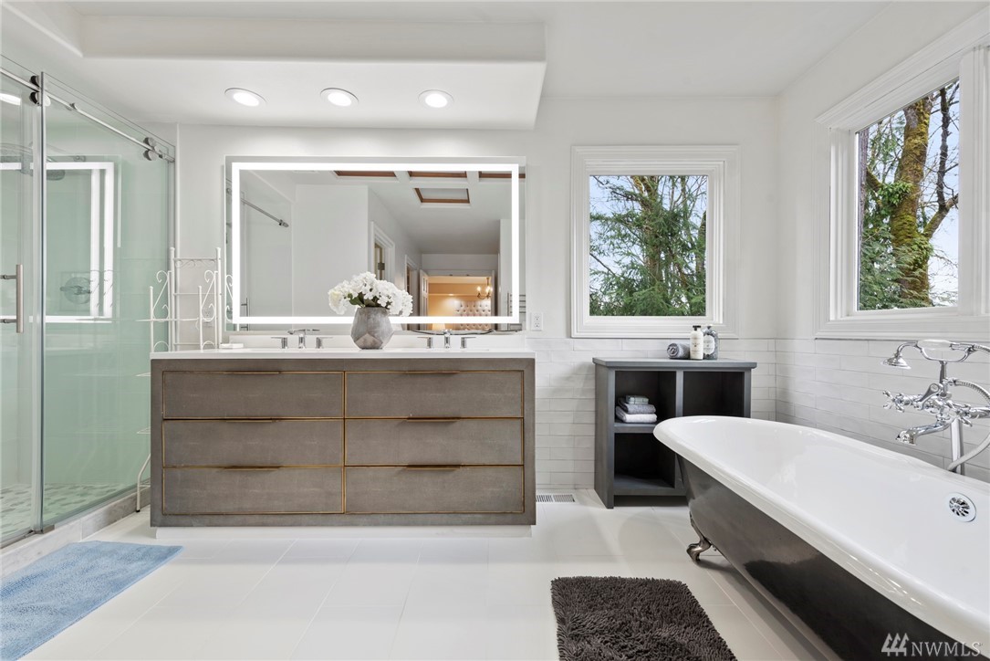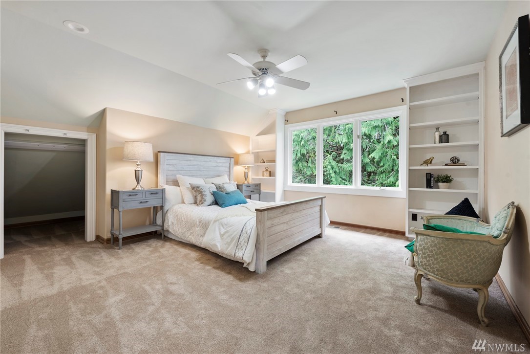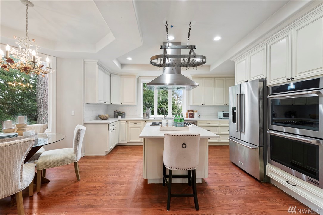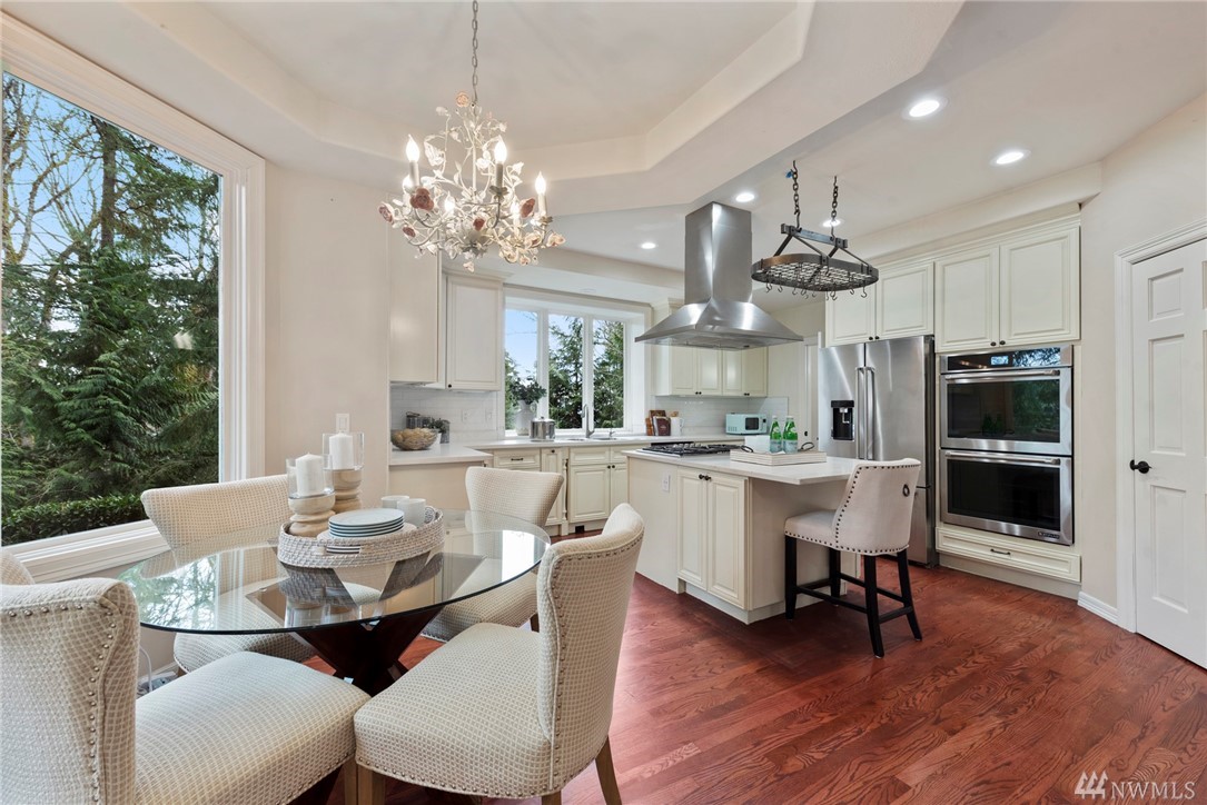This stunningly remodeled LAKEMONT home backs to a greenbelt with tranquil stream and hiking trail for complete privacy. Grand entry with soaring ceilings welcomes you home. Bright open Living Rm with Secret Rm behind bookshelf. Den features custom built-ins and wainscoting, perfect for work or study. Newly Buffed Hardwood floors throughout main level. New Kitchen with upscale appliances opens to Spacious Family Rm. Elegant spiral staircase to 2nd floor. Luxurious master suite with newly updated 5-piece master bath and more. New quartz countertops throughout. Newer carpet. New Balcony upstairs. 5th BR could be bonus/media Rm. Back yard patio with partial lake view! Prime location near retail, dining, parks, minutes to I90. A must see.