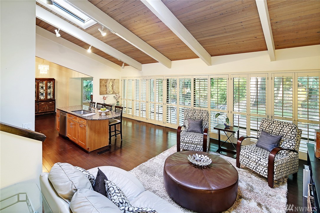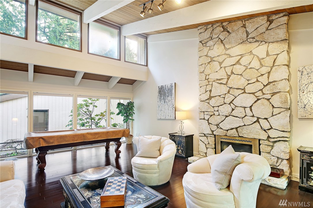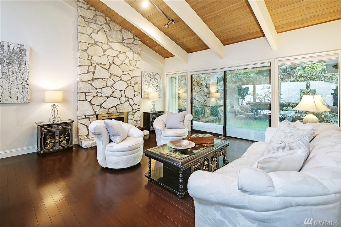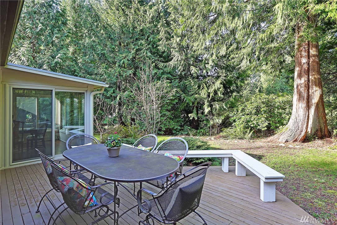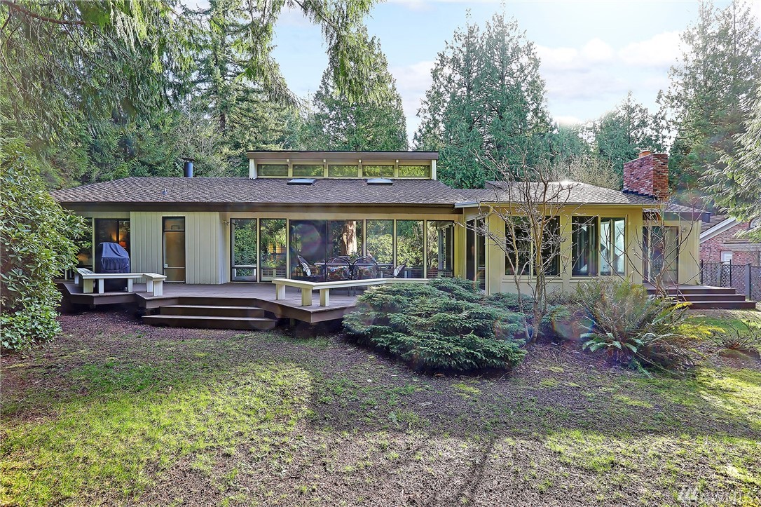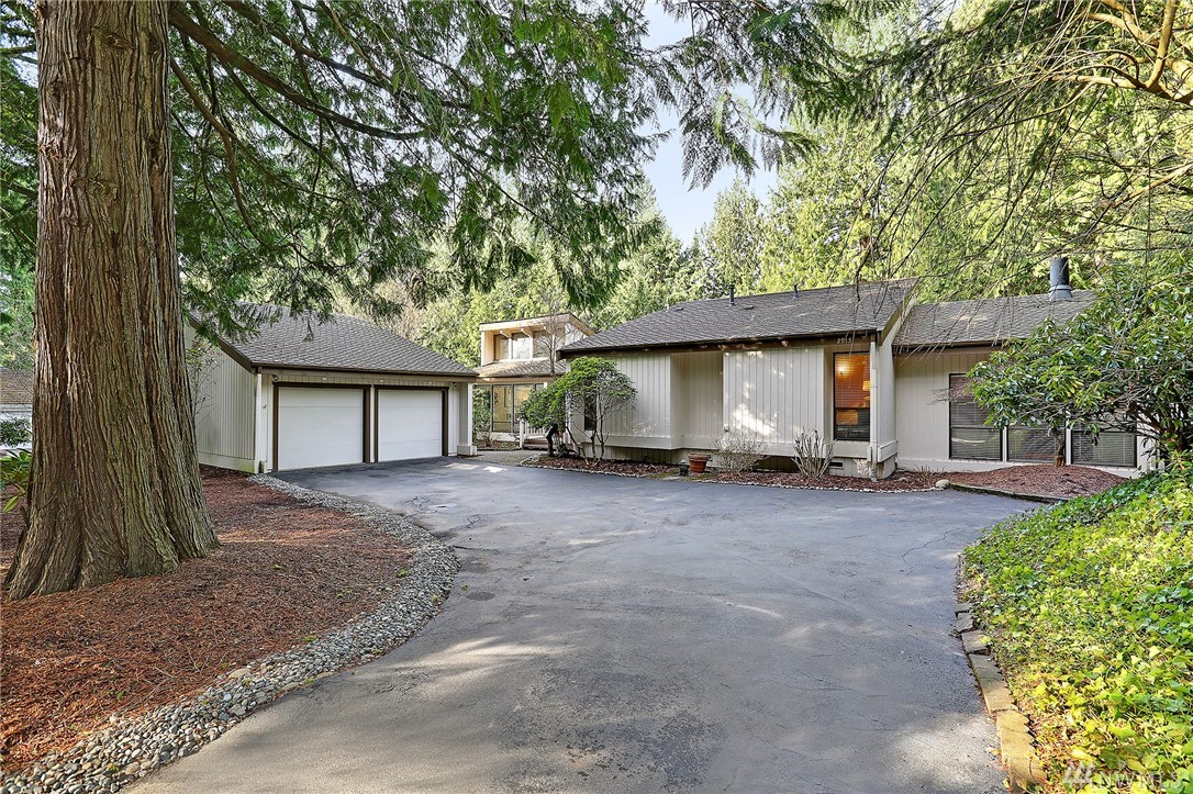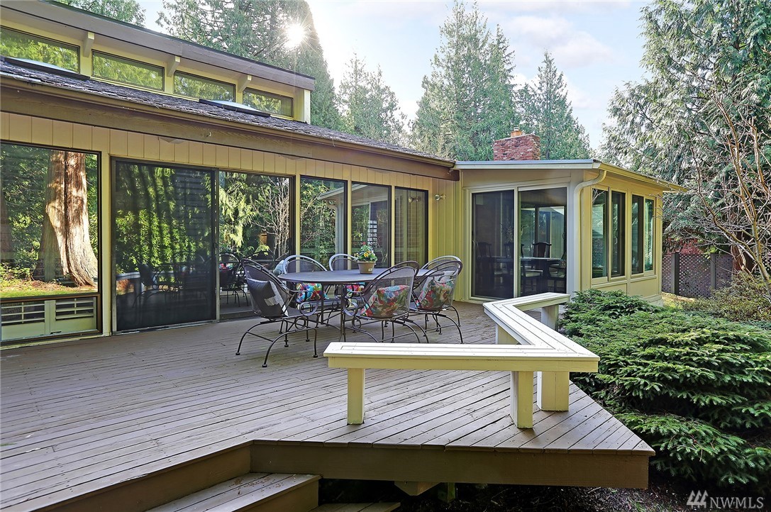Welcome to PGA Sahalee Golf Club! Bordering the golf course, at the 2nd pin, is this wonderful home & setting! Exceptional for outdoor & summer living! Main level hardwood floors greet you upon entry and run throughout the home except in the bedrooms & bathrooms. This lovely & unique home offers mostly one level living. Large living room has a gas FP & adjacent deck; a granite/stainless kitchen, Great Room, wall of windows, skylights & large deck face this PGA course beyond. Quiet & private master suite with walk-in closet, soaking tub & shower is separated from a den/office/2nd closet room side by a gas fireplace. Master has sliders to the deck too. Owners enjoy NO speed bumps coming/going from this home via 3rd Sahalee gate!