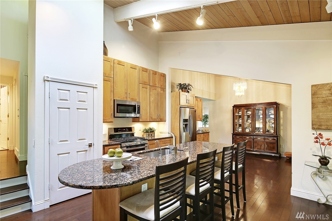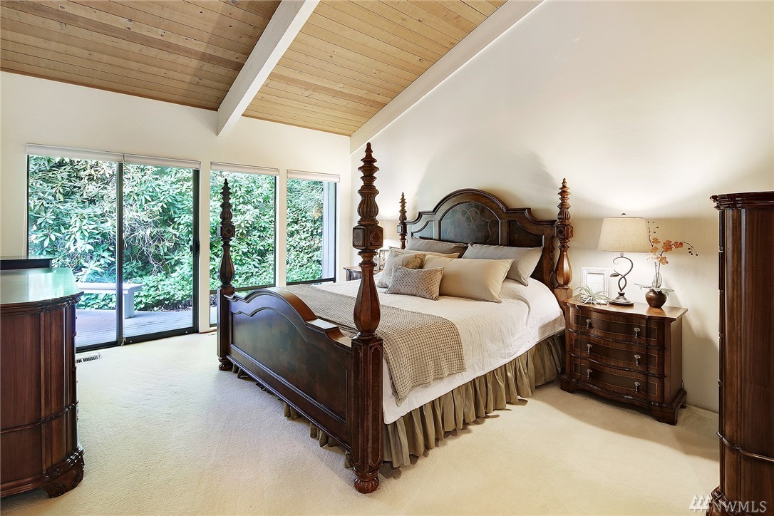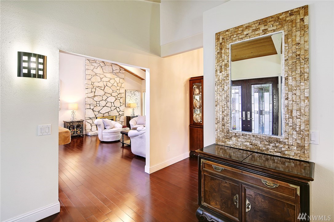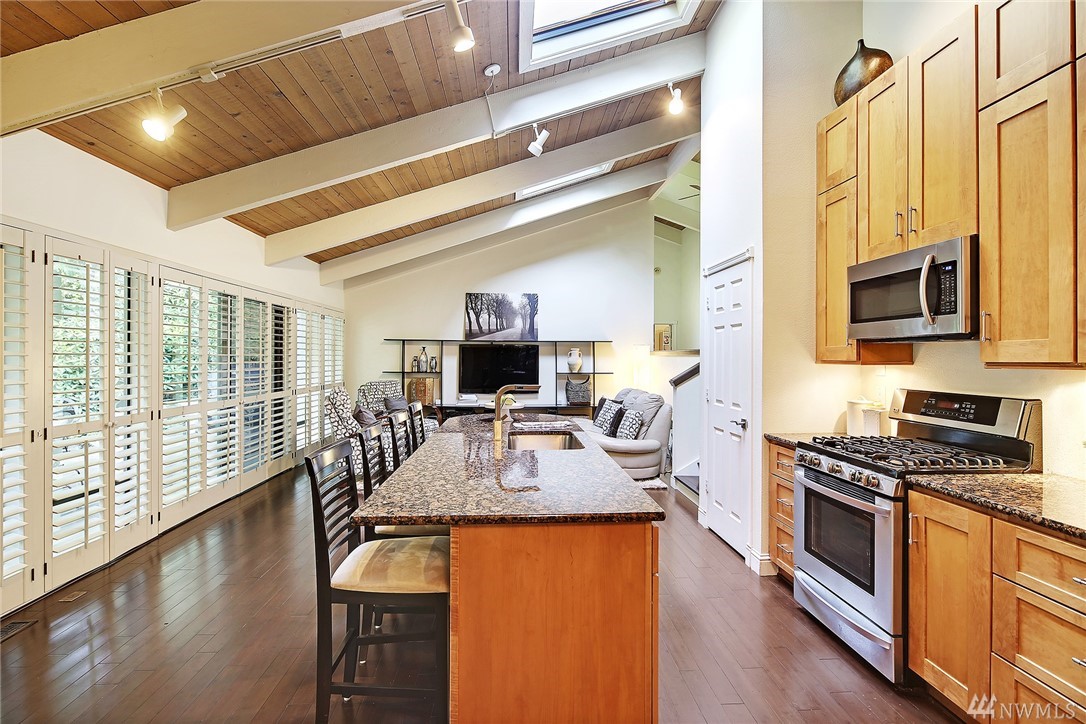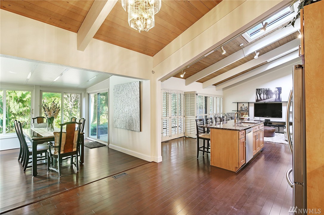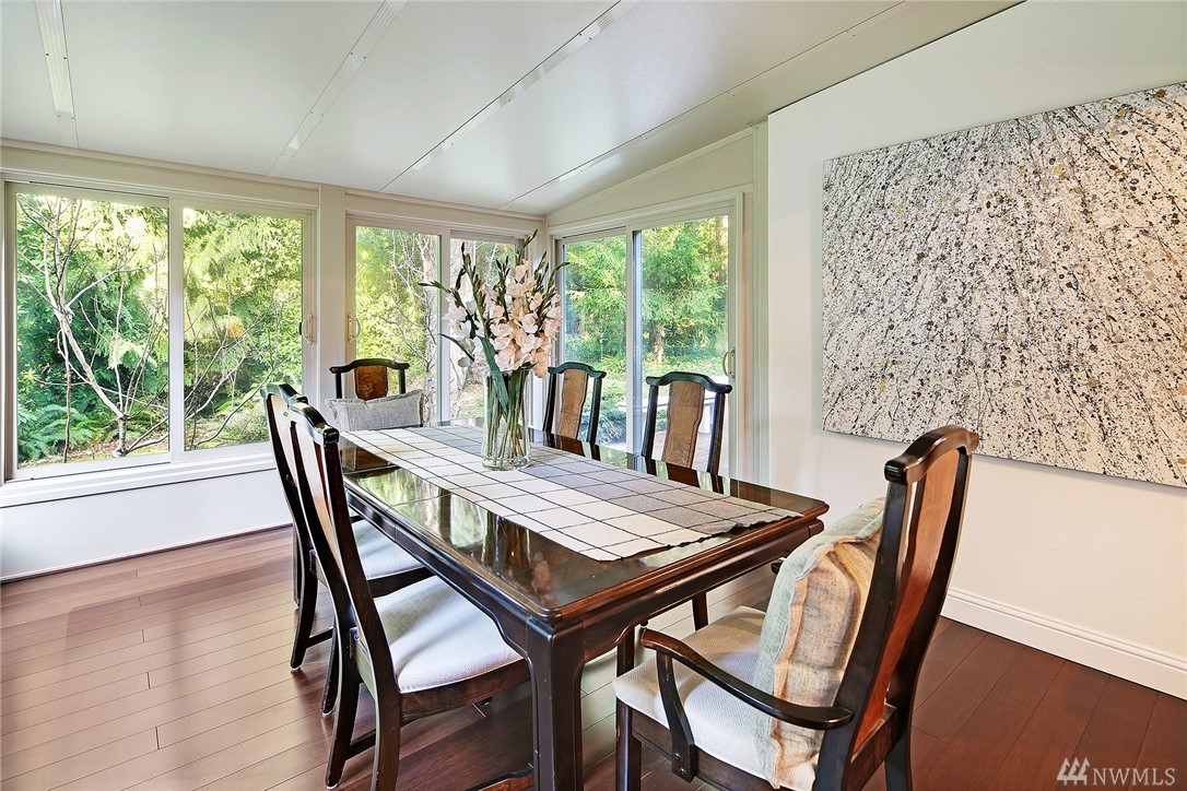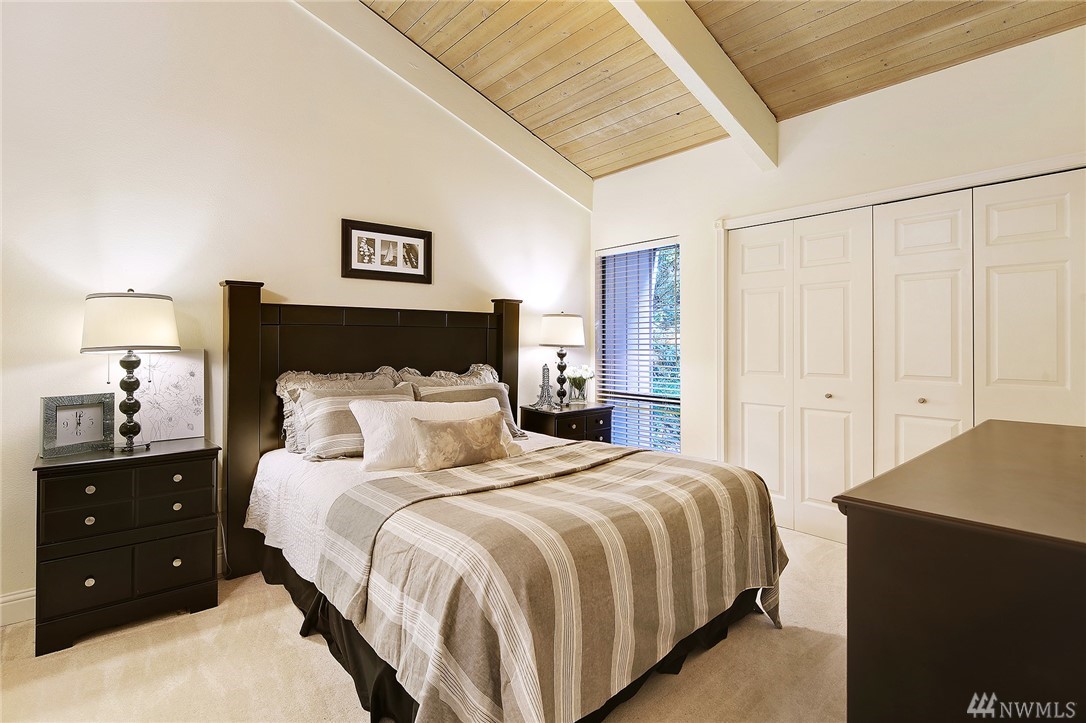 Welcome to PGA Sahalee Golf Club! Bordering the golf course, at the 2nd pin, is this wonderful home & setting! Exceptional for outdoor & summer living! Main level hardwood floors greet you upon entry and run throughout the home except in the bedrooms & bathrooms. This lovely & unique home offers mostly one level living. Large living room has a gas FP & adjacent deck; a granite/stainless kitchen, Great Room, wall of windows, skylights & large deck face this PGA course beyond. Quiet & private master suite with walk-in closet, soaking tub & shower is separated from a den/office/2nd closet room side by a gas fireplace. Master has sliders to the deck too. Owners enjoy NO speed bumps coming/going from this home via 3rd Sahalee gate!
