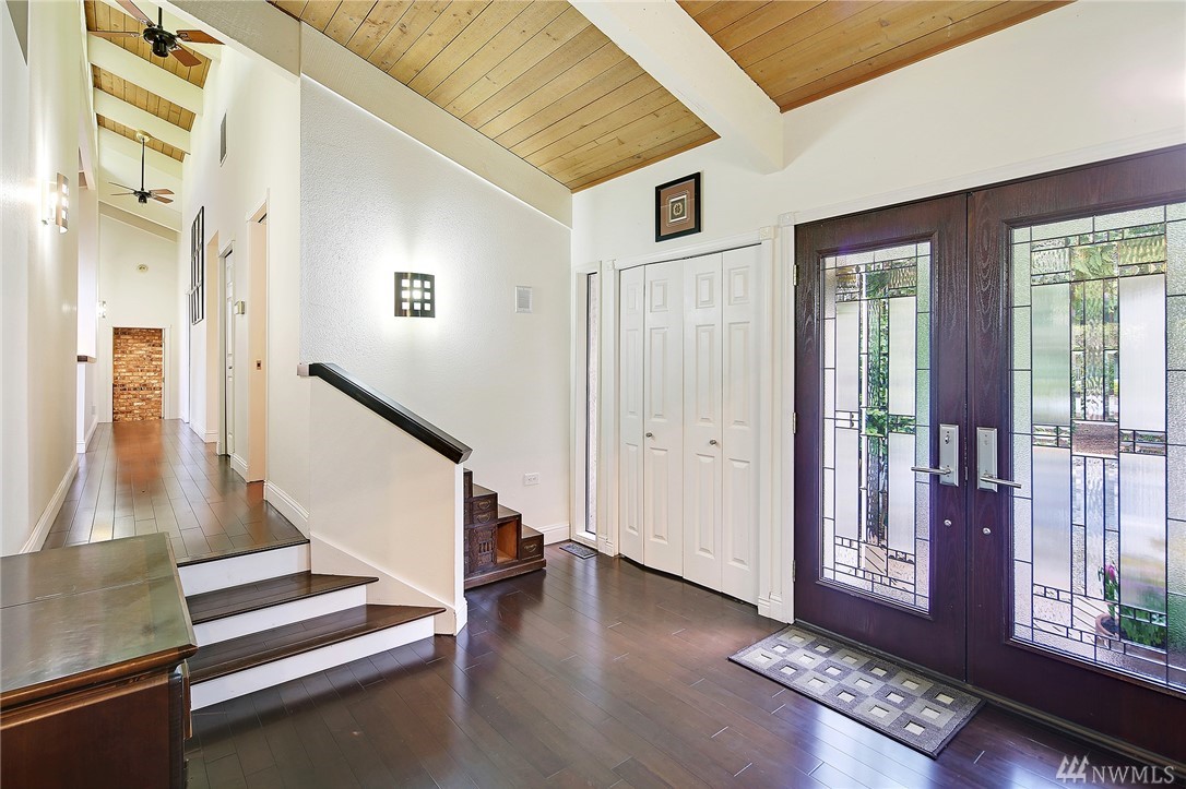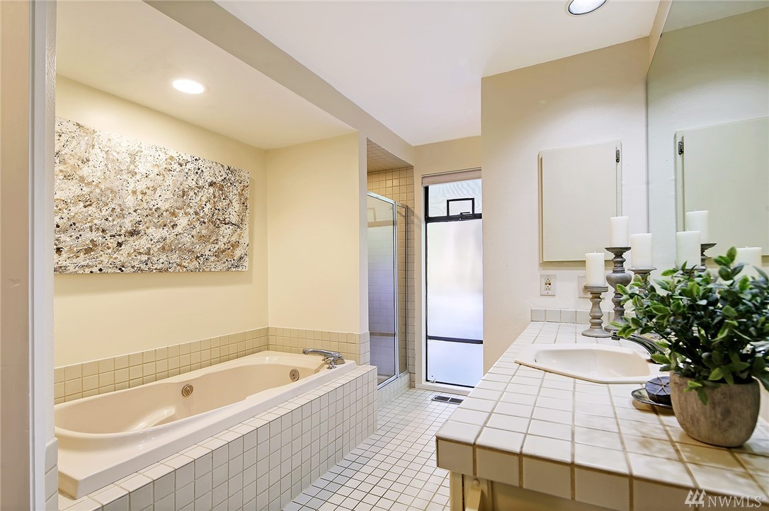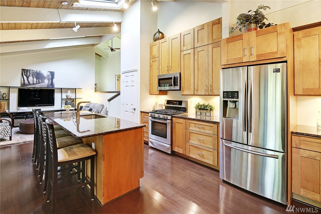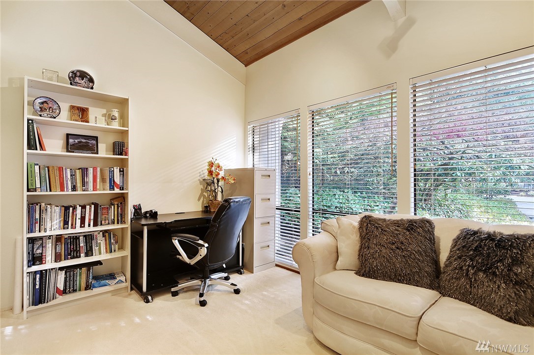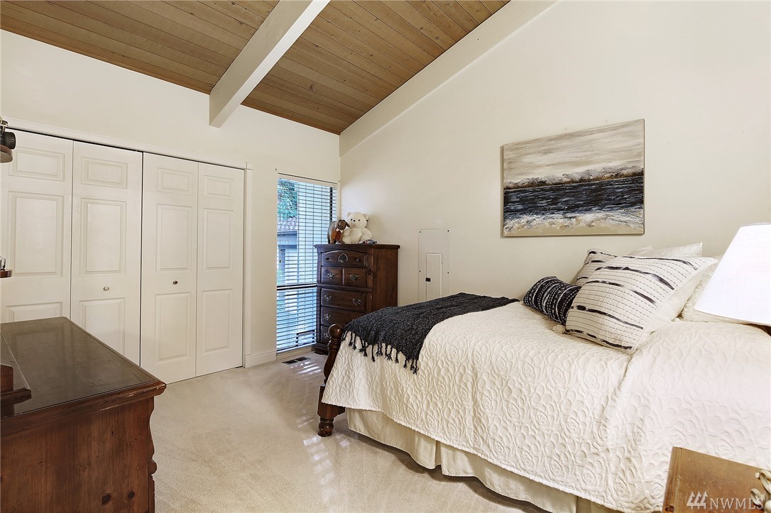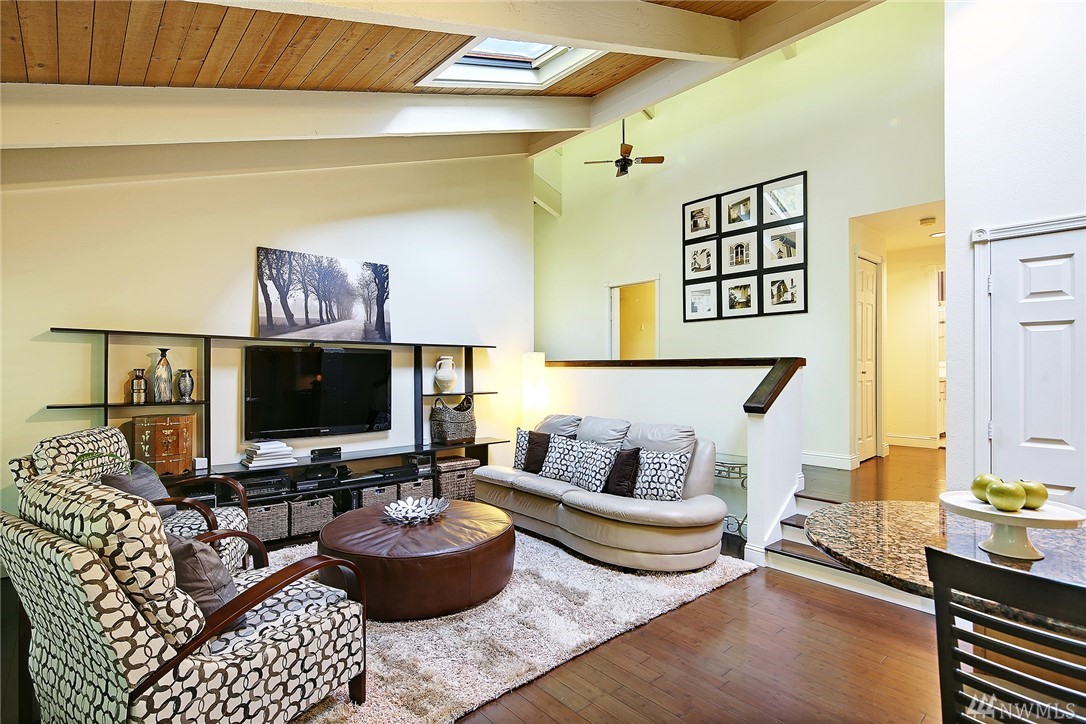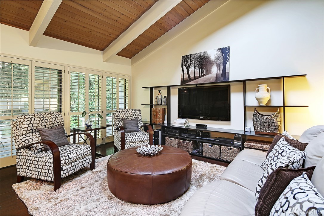 Welcome to PGA Sahalee Golf Club! Bordering the golf course, at the 2nd pin, is this wonderful home & setting! Exceptional for outdoor & summer living! Main level hardwood floors greet you upon entry and run throughout the home except in the bedrooms & bathrooms. This lovely & unique home offers mostly one level living. Large living room has a gas FP & adjacent deck; a granite/stainless kitchen, Great Room, wall of windows, skylights & large deck face this PGA course beyond. Quiet & private master suite with walk-in closet, soaking tub & shower is separated from a den/office/2nd closet room side by a gas fireplace. Master has sliders to the deck too. Owners enjoy NO speed bumps coming/going from this home via 3rd Sahalee gate!