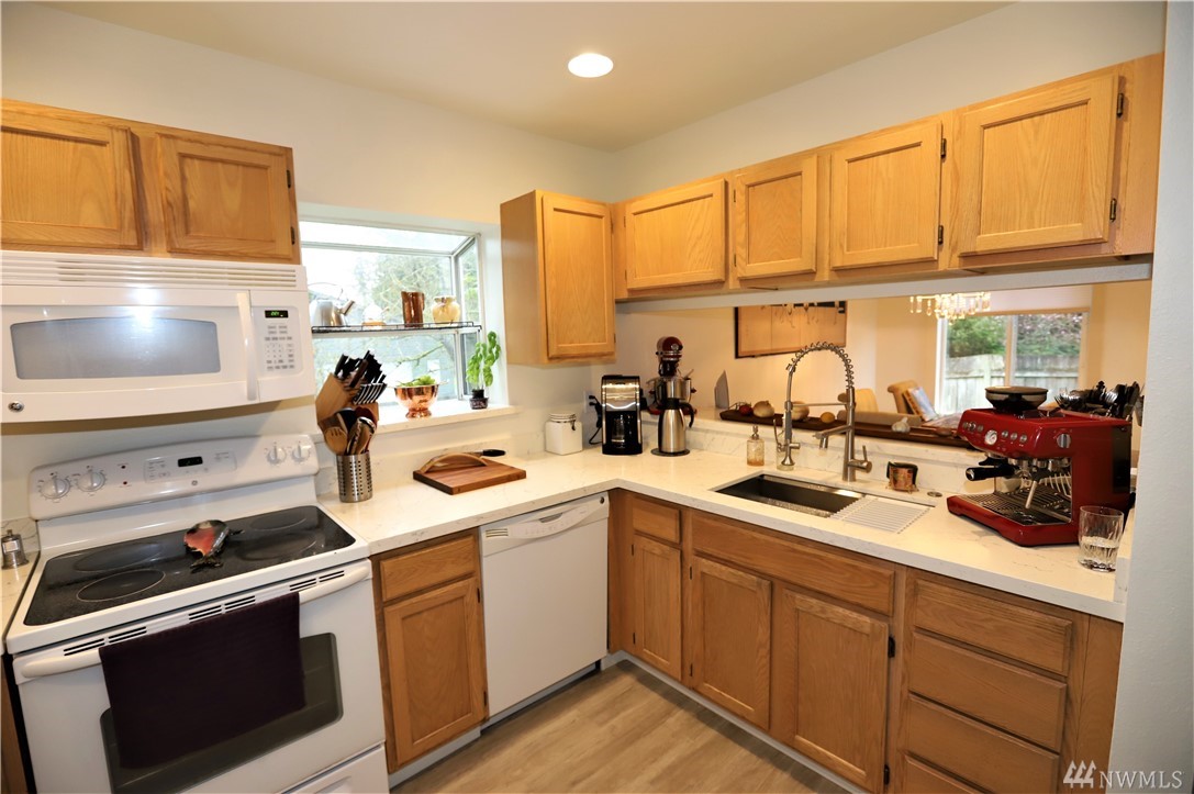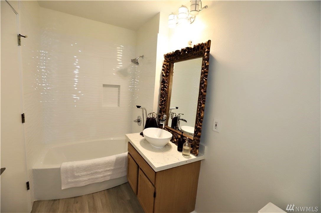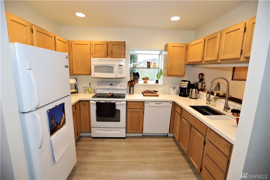 Best townhome set up in Lynnwood, 4 bedrooms & 3 Full baths! Newer modern remodel throughout, open concept, newer lighting & switches, perfect sized kitchen with beautiful quartz counters, tons of cabinet/counter space, all appliances stay! Laminate floors on main level, dining area, walk in pantry and walk in closet. Bedroom and full bath on main floor. King sized master suite with amazing tile bath, with rain shower attachment, modern digital mirror, quartz counters and custom sink, 2 walk in closets, all bedrooms large sized. 4+ cars will fit in driveway, tons of off street parking and close to 525, I5, shopping & Alderwood mall. Back yard deck for entertaining and fenced in yard.