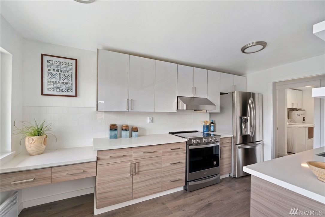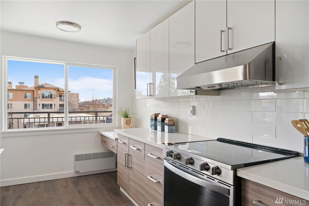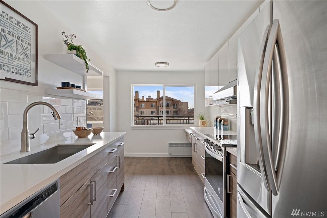 Incredible completely renovated 3 bed, 2 bath top floor PENTHOUSE condo in the heart of Ballard that just underwent a total exterior revamp to make the building feel BRAND NEW. HUGE open lay-out with a massive near 1600sqft all on one level! Nearly everything you can see & touch is new: floors, paint, windows, lighting, designer kitchen with custom tile & quartz, new appliances, new custom bathrooms, etc...you name it, it's new. Large primary bedroom with room for a king size bed & desk! Mammoth near 40' wide deck, incredible for entertaining while overlooking your new hood: 97 walk score & 91 bike score. Walk, bike, bus, or Uber to ALL that downtown Ballard living has to offer. HAS PARKING; garage & uncovered. Welcome home my friends!