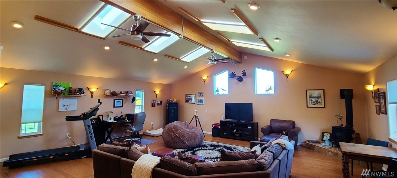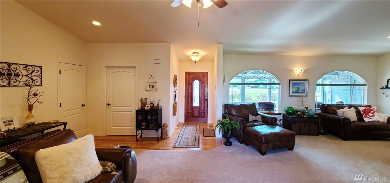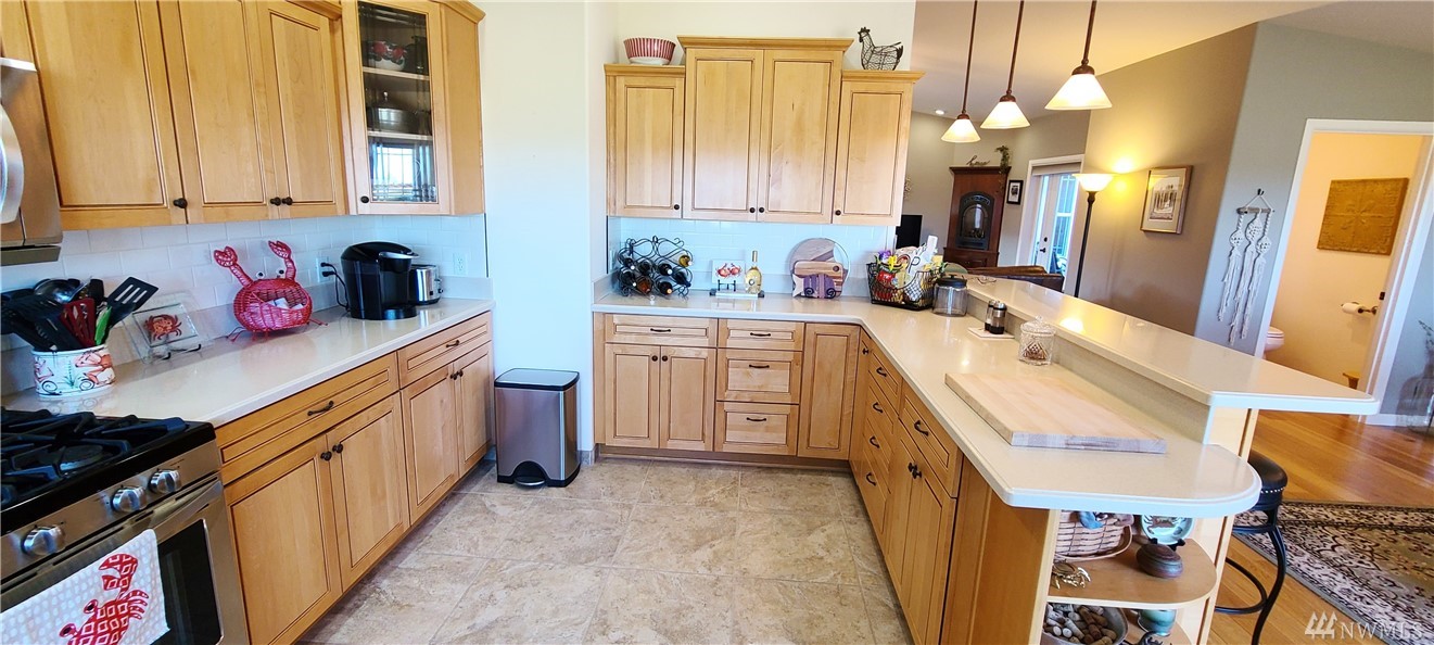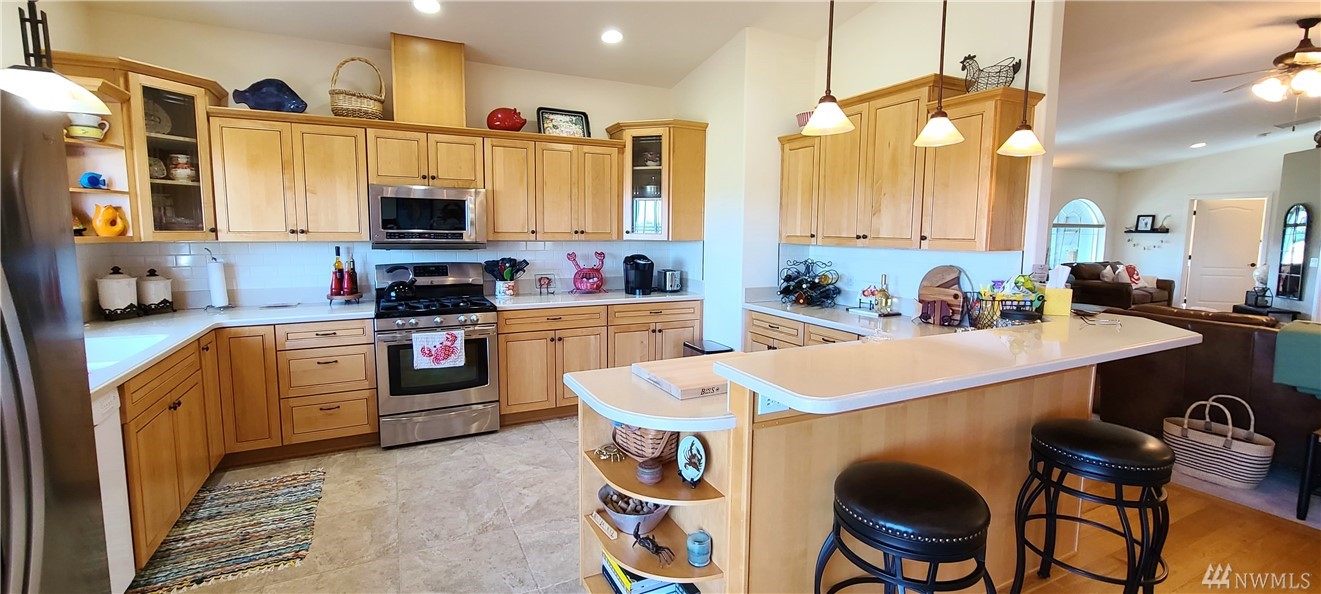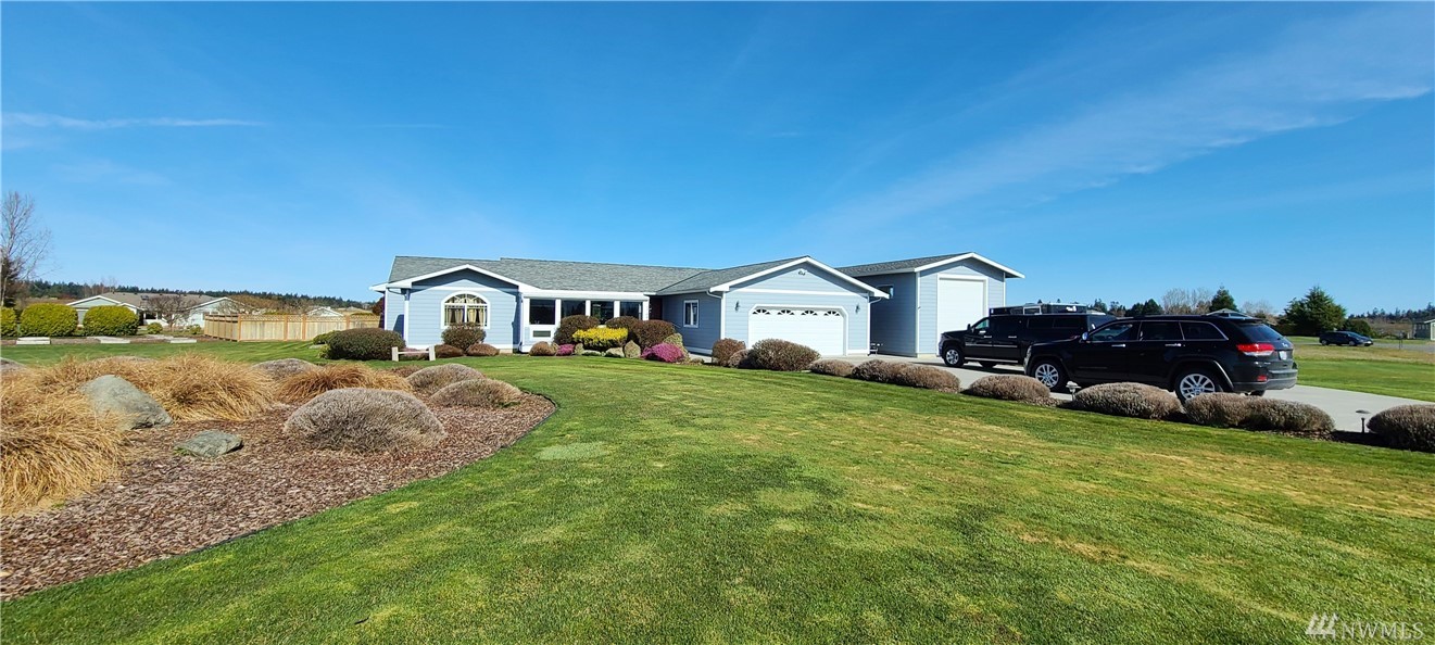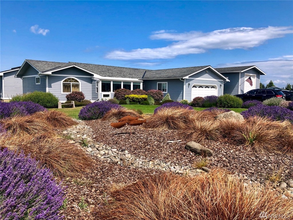 Beautiful contemporary spacious home with 2 master suites, stunning great room, office, & fantastic mountain view! Well designed kitchen w/Corian counters. Built-in china cabinet in dining. Excellent neighborhood location close to town on dead end street! Take in the beautiful mountain view & landscaped e-z care grounds from the sun room. Vaulted ceilings and light filled rooms throughout! Lavender lined drive and fenced rear yard. 18x32 heated RV garage w/loft/shop, 12x16 shed, pressurized irrigation.