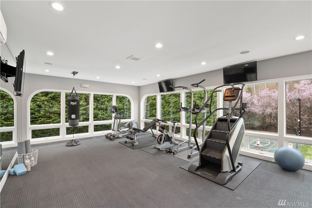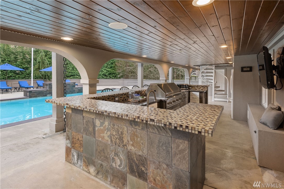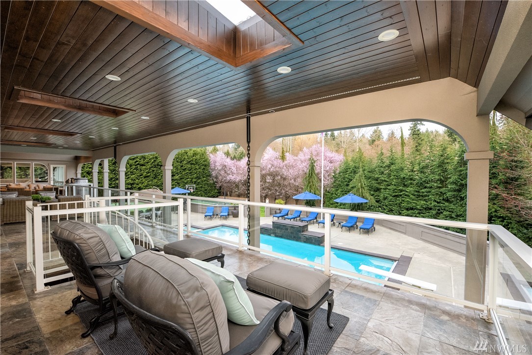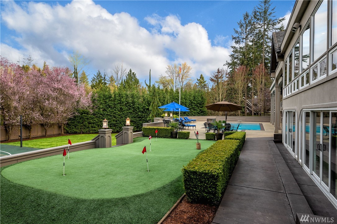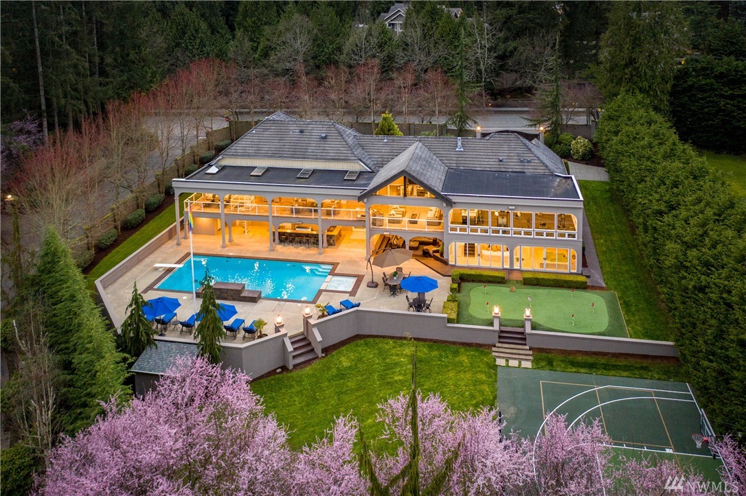 Imagine living in your own personal resort every day! There's no need to leave w/more than 5,000 SF of int living space & over 1,500 SF of covered outdoor spaces + outdoor kitchen, inground pool/hottub, putting green, sport court, indoor spa, sauna, personal gym AND prof designed home theater system. Luxury meets comfort thru-out this home. Gourmet kitchen w/Calcutta marble countertops & high-end appl. Expansive open Great Room w/intimate gathering spaces effortlessly flows to one of the outdoor living areas. The Primary Bdrm w/italian marble spa bath, Office/5th Bdrm & gym complete the main floor. Theater/bonus, Sauna/spa, 3 add'l bdrms & laundry down. Need to leave? No problem! Minutes to everything. Middle of Eastside's tech corridor.