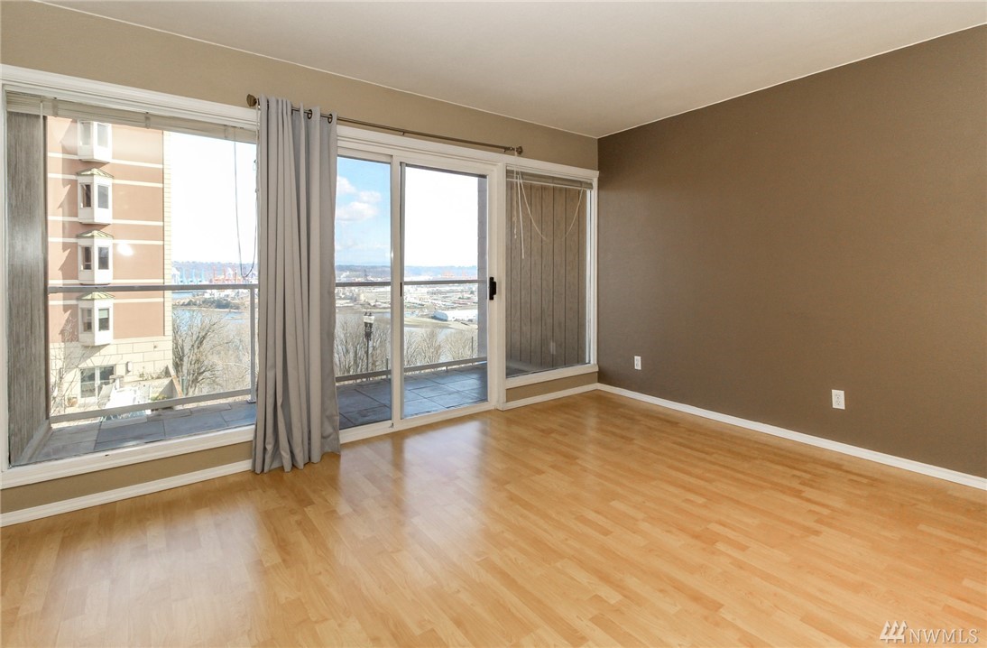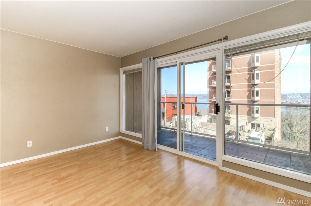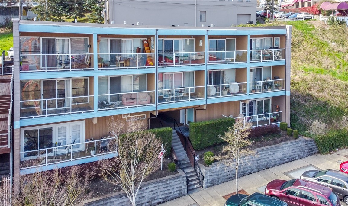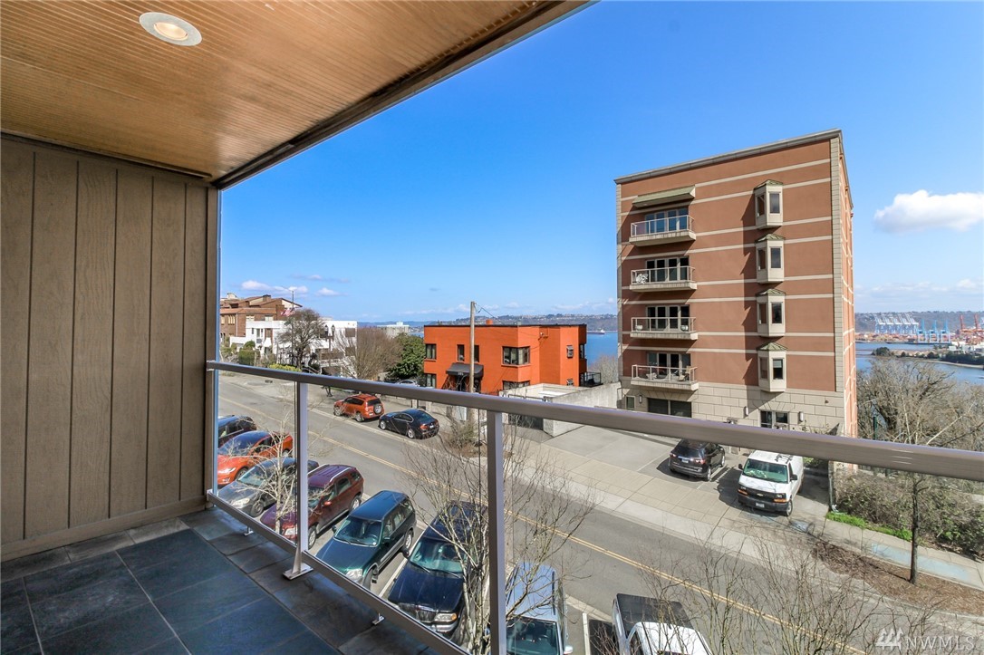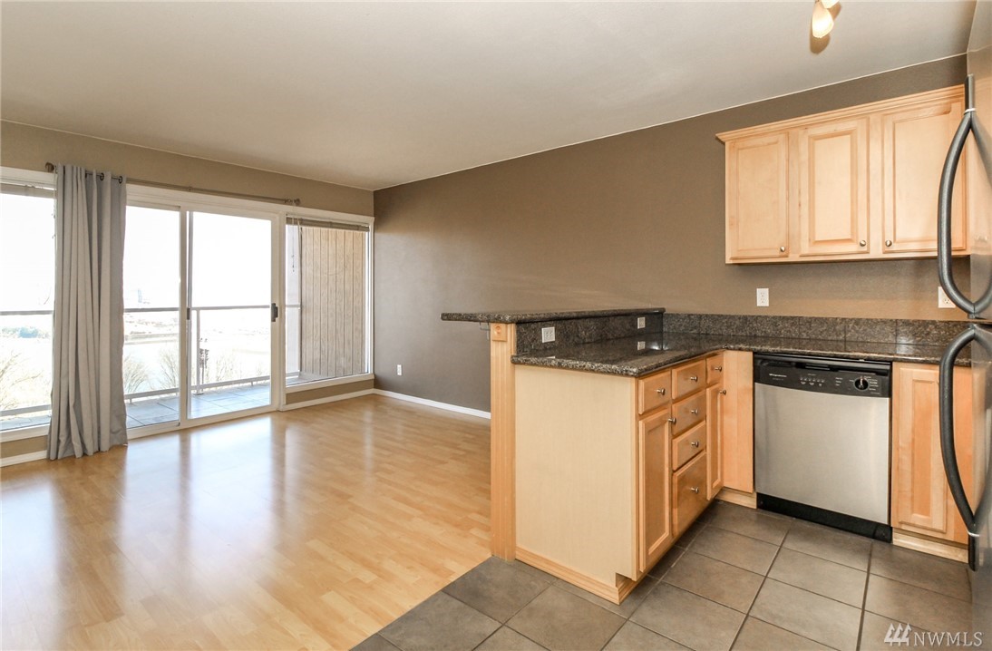Nicely appointed 1 bdrm condo w/partial views of the bay and beyond. Contemporary colors,quality finishes including maple cabinetry, granite tile counters in kitchen, SS appliances, white millwork, 6 paneldoors, & tile and pergo flooring. Glass slider to inviting covered patio that will extend your living and entertainingspace. Convenient street parking on Broadway. Buyer to verify all information to their sole satisfaction. Condo is VA but not FHA Certified.