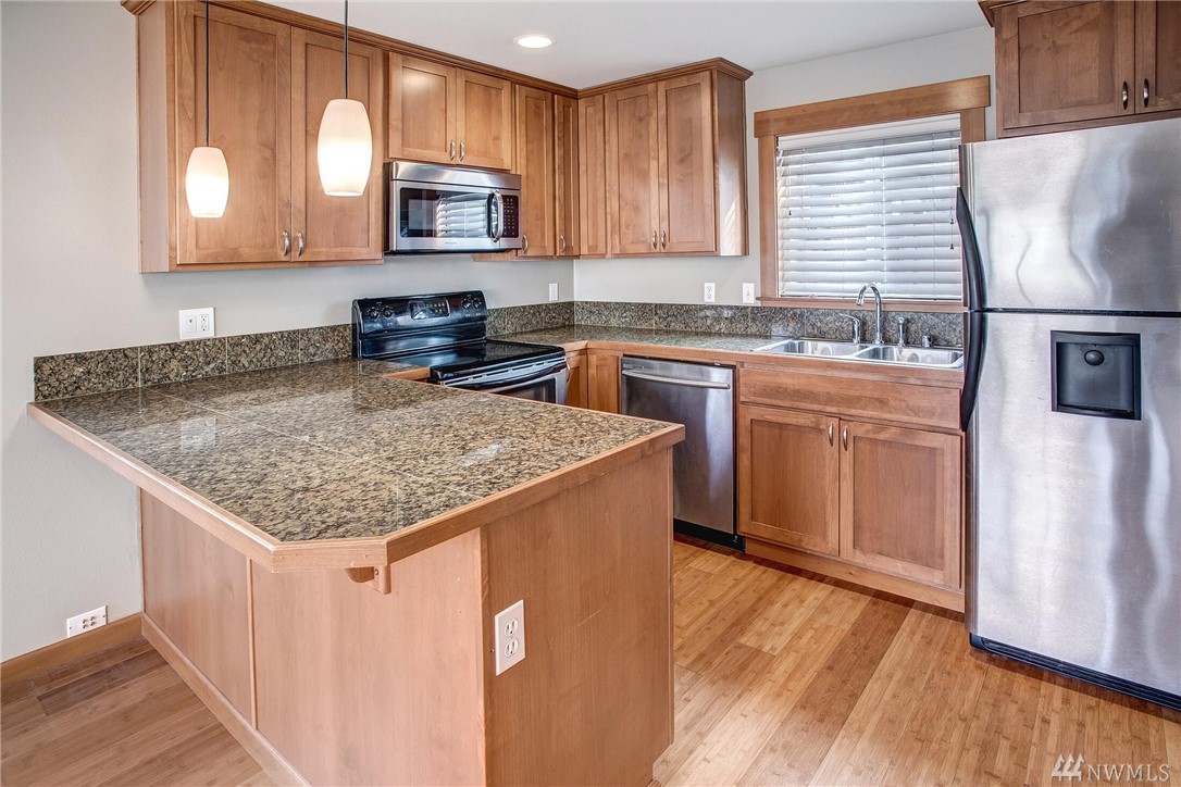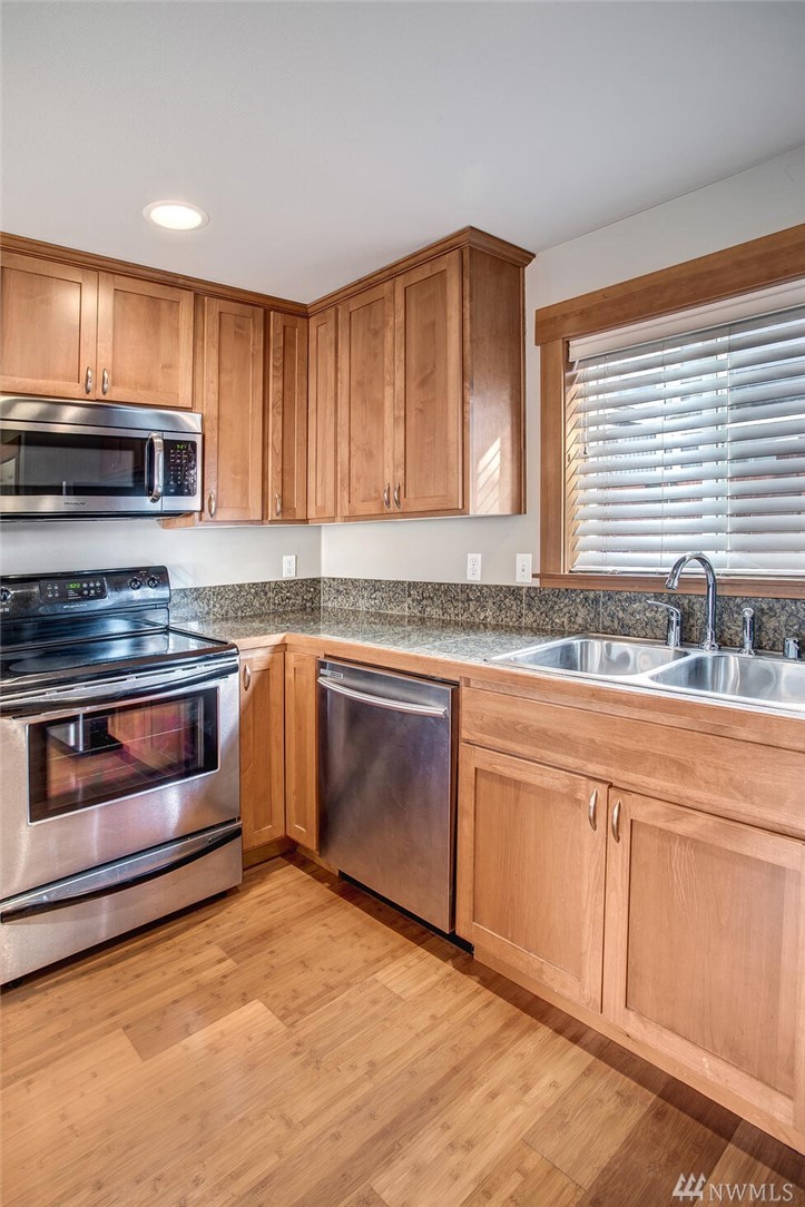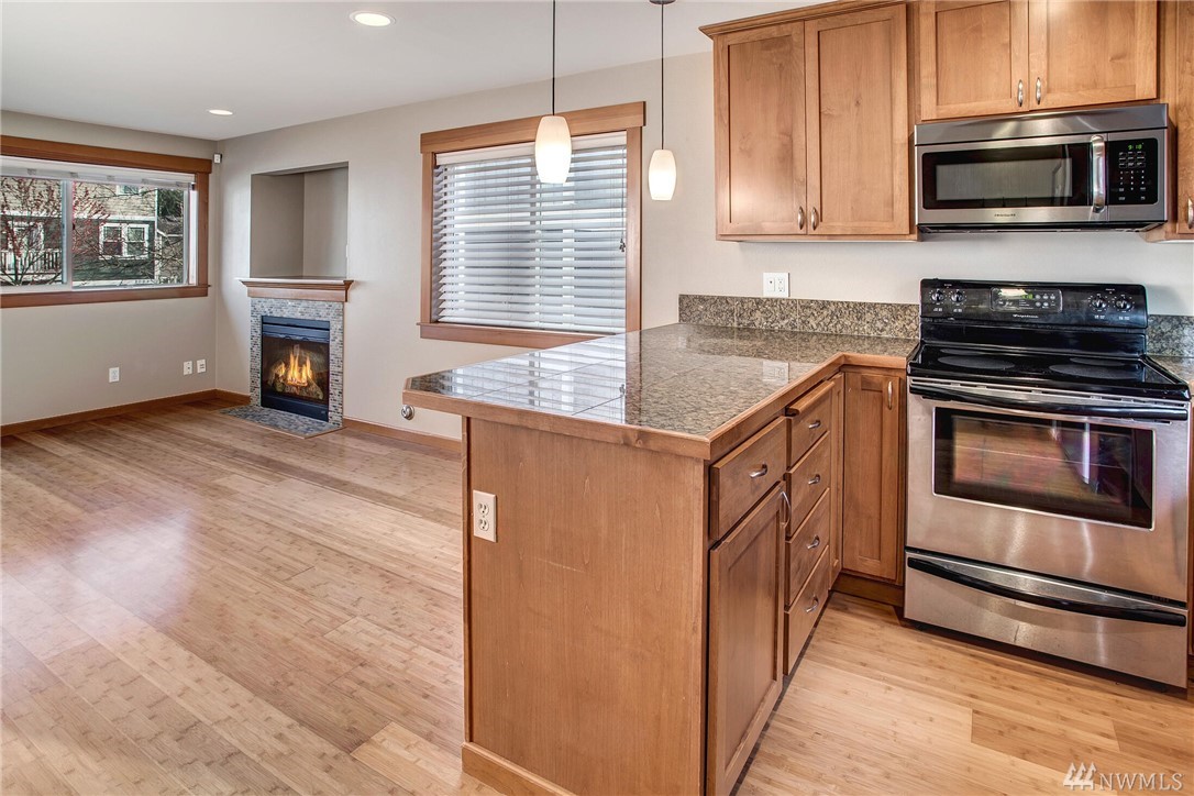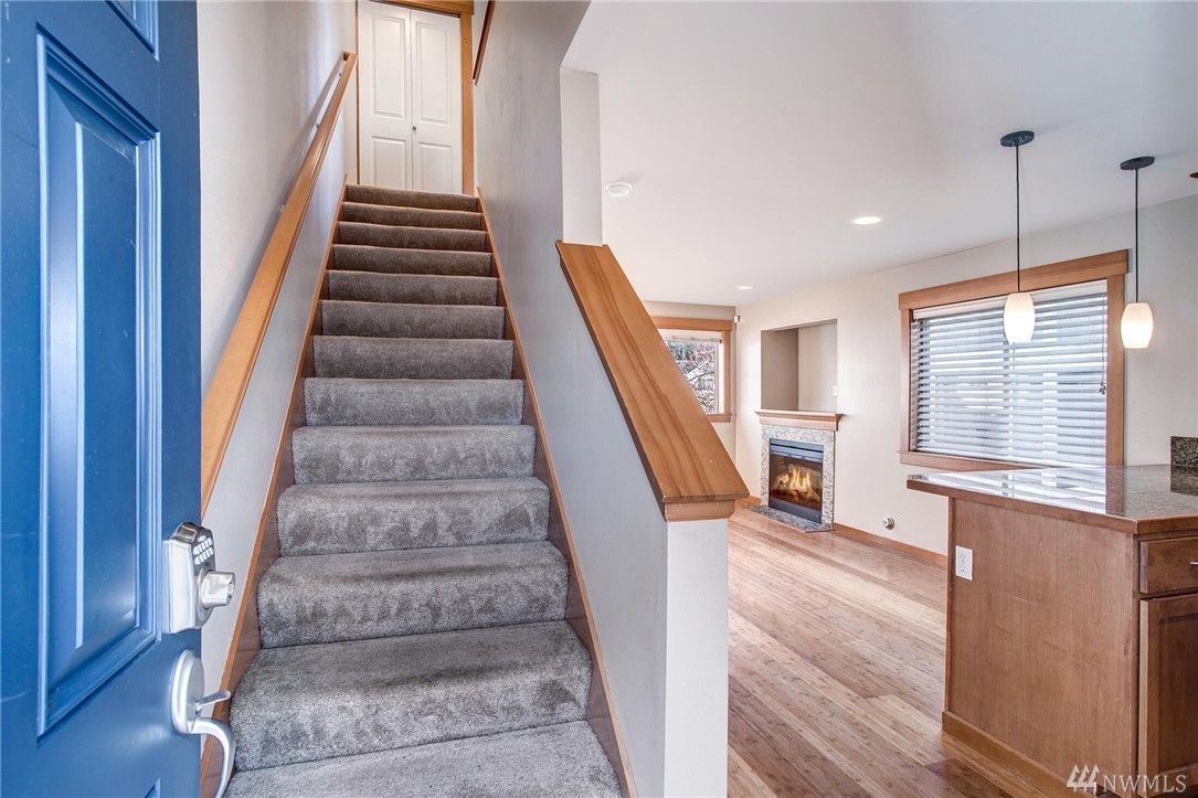 Sweet townhome full of natural light, within walking distance to everything. Enjoy the comfortable living space with bamboo floors and features a warming electric fireplace. Stainless steel appliances(new dishwasher and microwave) in the kitchen offers open space to the dining and living area. There is bar seating at the granite countertop. And a wonderful fenced in patio that sits above the street for those BBQs, relax in the sun or sip your favorite beverage. Upstairs offers 2 bedrooms and a full bath along with the washer & dryer. Also has a designated parking space and no HODs, this is an awesome home ready for you to move in! Walk to parks, cafes, pubs, retail, bus. Close to I90, I5, future Judkins Park Light rail station, downtown.