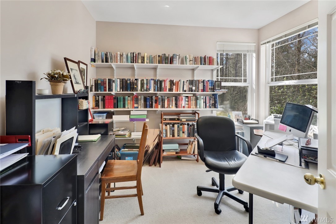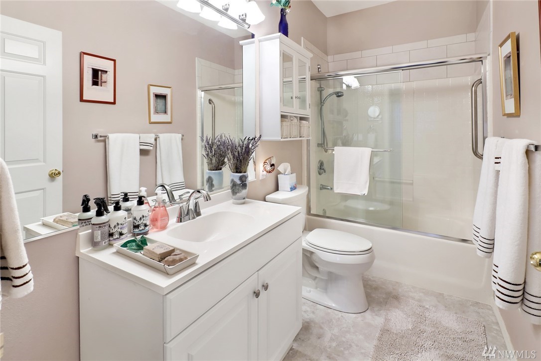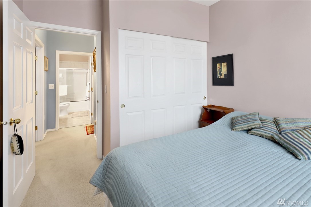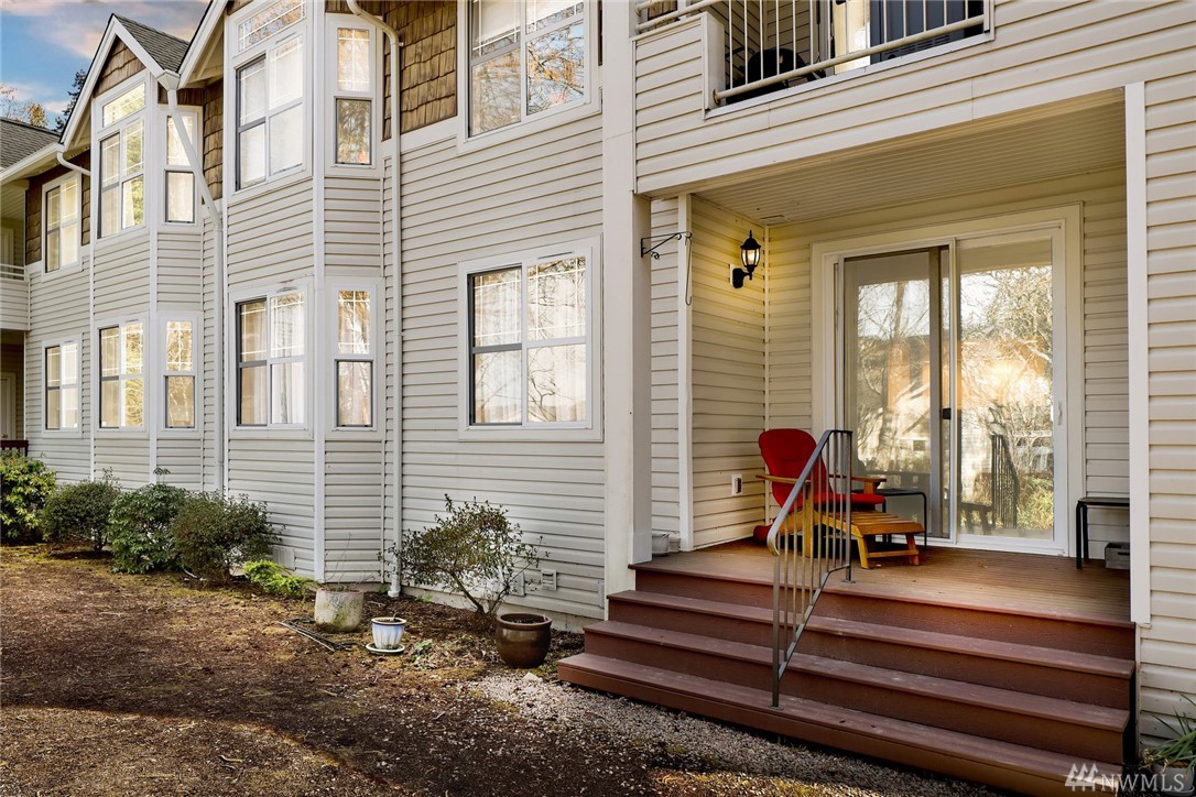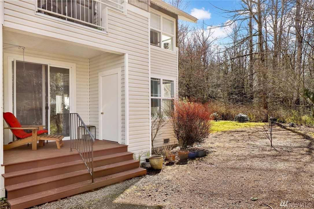 One level, ground floor condo in a fabulous southside location. This is one of the best settings in the complex, away from the road and backing to a greenbelt. Very private and woodsy, with a quiet yard area on two sides. 2 bedrooms plus a den / office that is perfect for working from home. Open floor plan with lots of windows, 9' ceilings, and a cozy gas fireplace. Large master suite has two closets and double sinks. Kitchen has new gas oven, microwave and sink. Covered deck was just refinished. All appliances included. Attached double garage with built in storage, plus a private turnout for extra parking. Hop on the Interurban Trail for easy access to Fairhaven, parks, waterfront, & beyond. Excellent condition and ready for moving day.