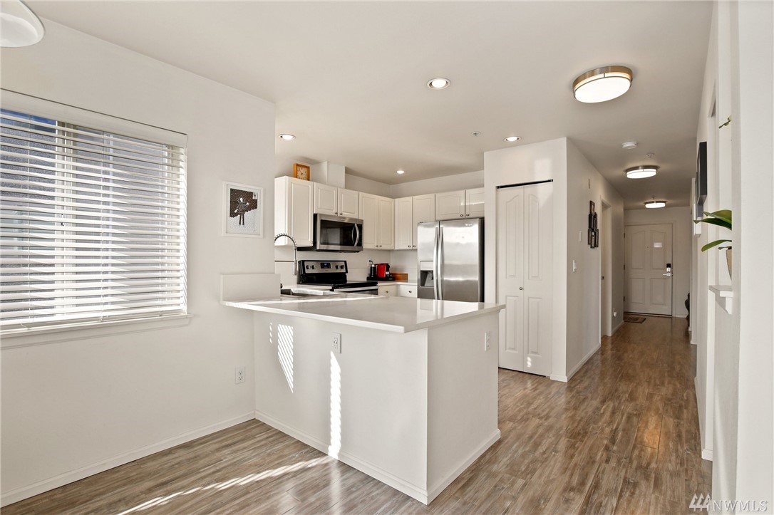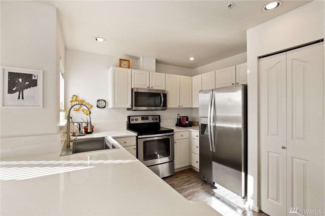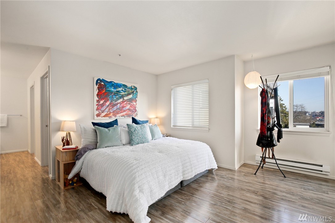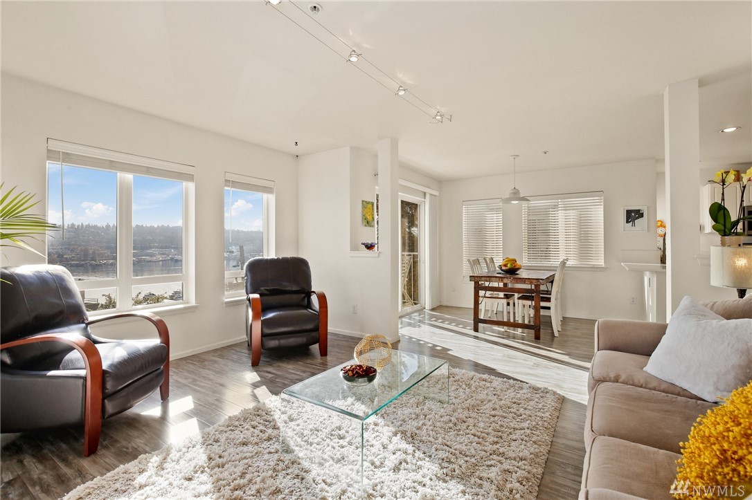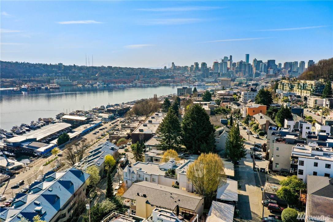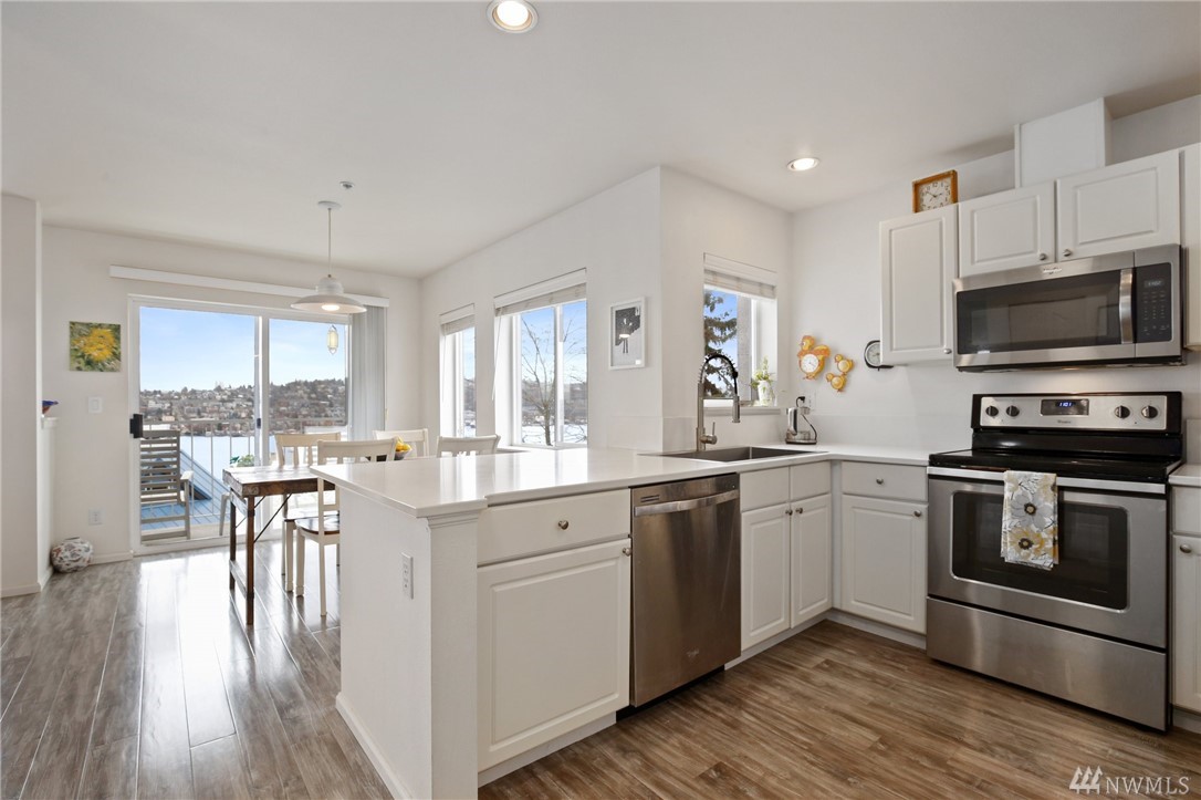 Enjoy stunning & expansive views of Lake Union, Gas Works Park, and the gorgeous Cascades from this spacious 2 bedroom condo.  Light & open floor-plan with new flooring throughout.  Enjoy the cozy fireplace and your front row seats to 4th of July fireworks! New kitchen counters with bar seating, stainless steel appliances, and new deep stainless sink. Imagine watching the sea planes land on Lake Union while washing dishes and prepping dinner! Huge master-suite with room for King bed, walk-in closet, en suite bathroom, and private balcony. Spacious 2nd bedroom and full bathroom for guests. Parking in secure garage + additional storage space. Walk to SLU, Downtown, hip Fremont with easy access to I-5 and 99! Urban living at it's best!