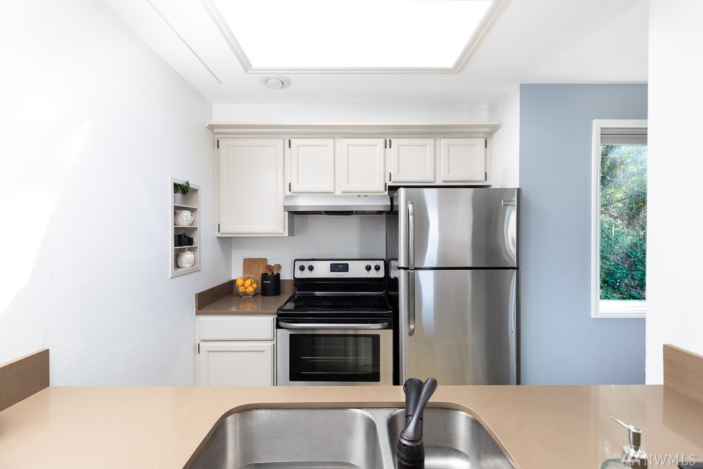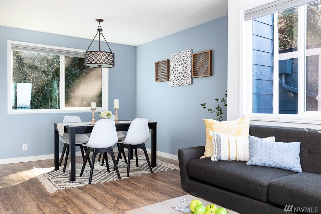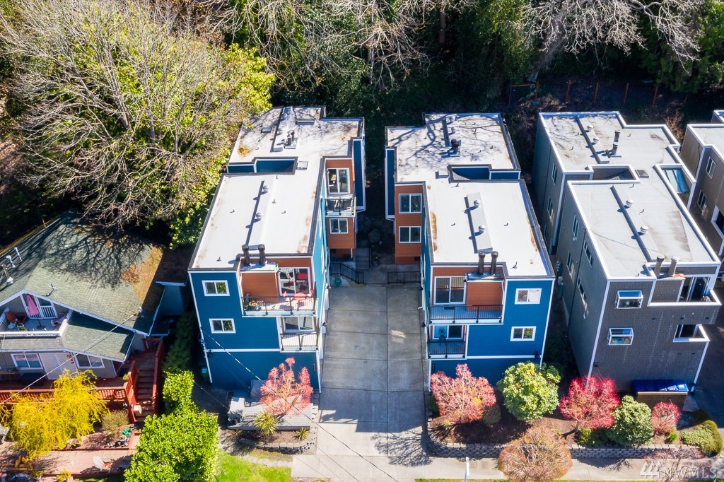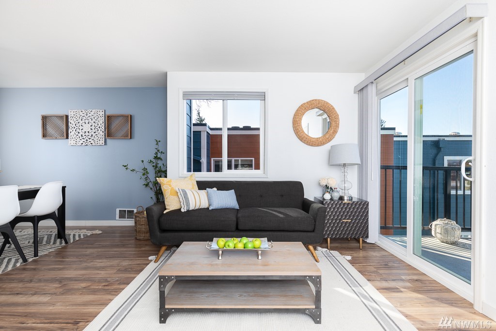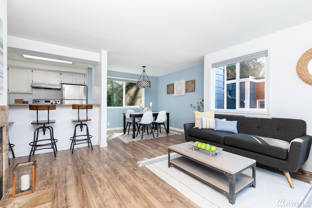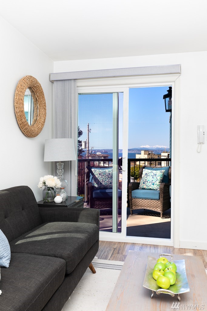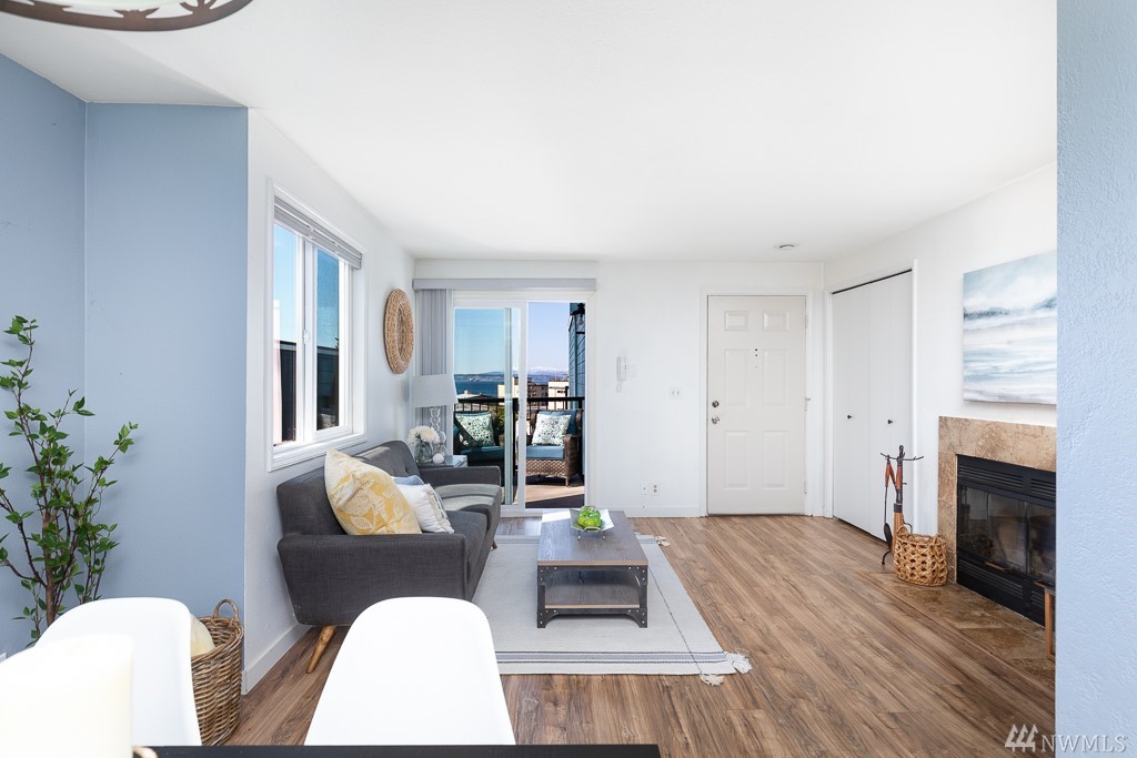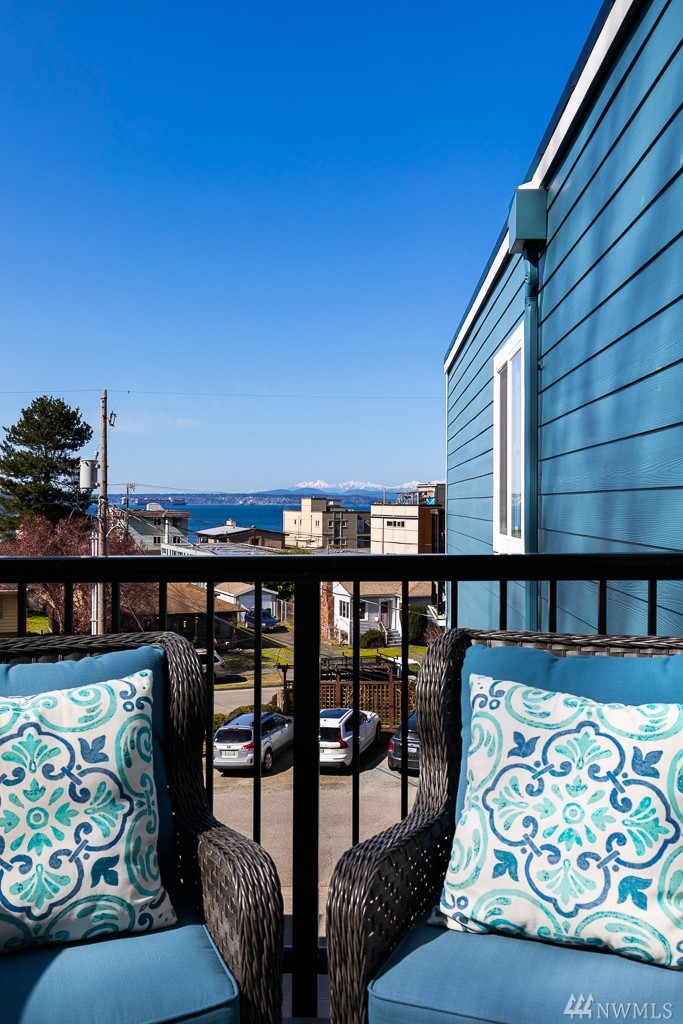 Incredible views of Puget Sound and Olympic Mtns from your new West Seattle home! Cozy up to the wood burning fireplace and enjoy gorgeous sunsets from the deck and living room. This 2 bed/1 bath home has been updated inside and out, including brand new exterior renovations with new Hardi siding, roof, paint, windows, doors, decks, skylights and common area upgrades - completed March 2021. Rare no shared walls, top floor, end unit! One block from multiple pocket parks to launch your kayak or paddle board, Mee-Kwa-Mooks Park for a picnic & just a few minutes to Alki Beach! One car parking & storage in secure garage. No Rental Cap!