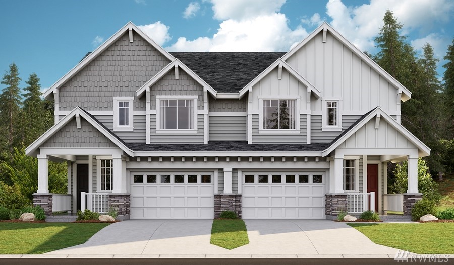 An inviting covered porch welcomes guests to the paired two-story Emerick plan. The main floor offers a convenient powder room, a comfortable dining room and an expansive great room with a contemporary fireplace and adjacent covered patio—perfect for entertaining! A large kitchen featuring a center island and roomy pantry is also included. Upstairs, you’ll find a linen closet, three secondary bedrooms with a shared bath and a lavish owner’s suite, complete with an oversized walk-in closet and attached bath with double sinks.