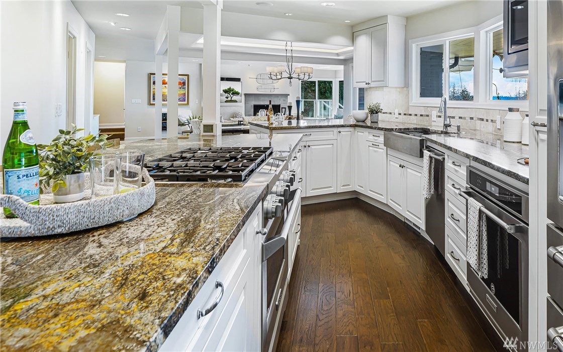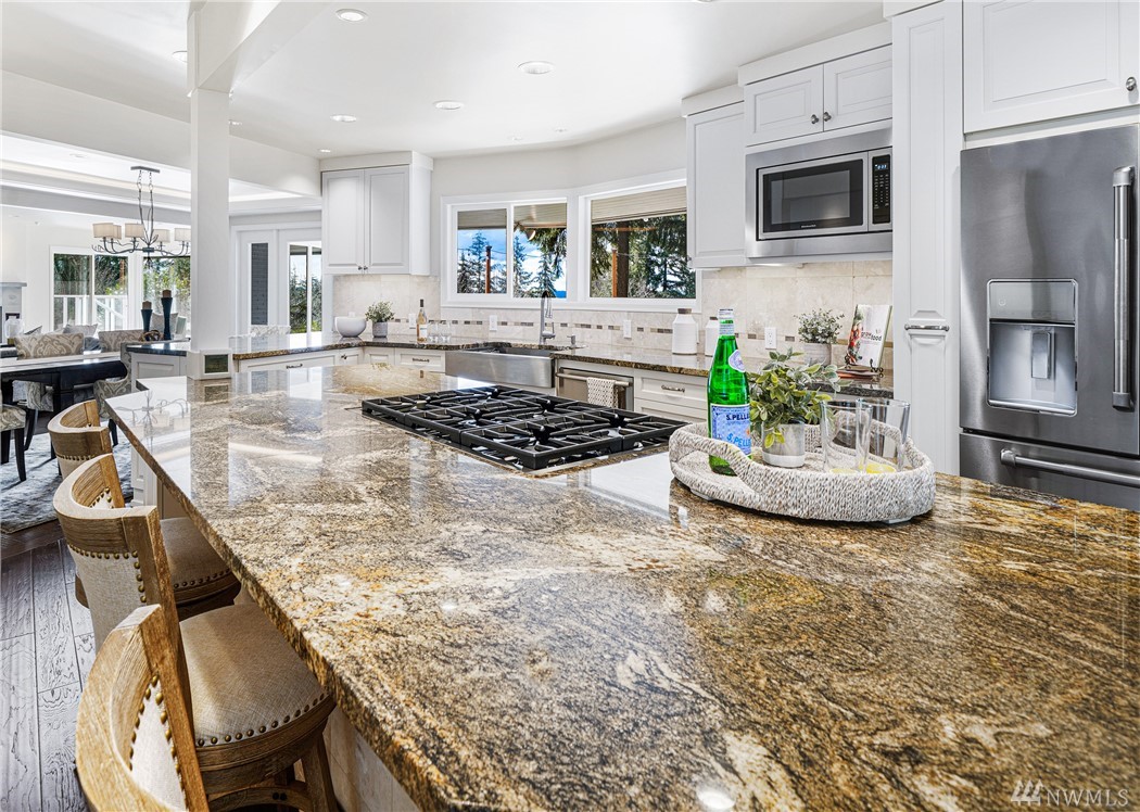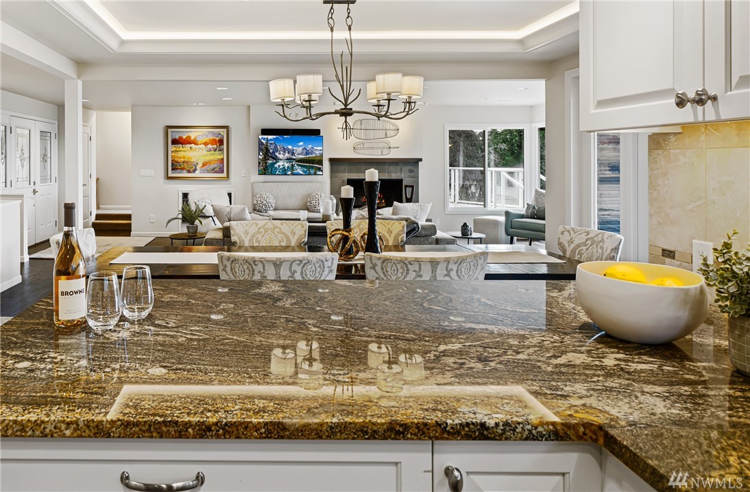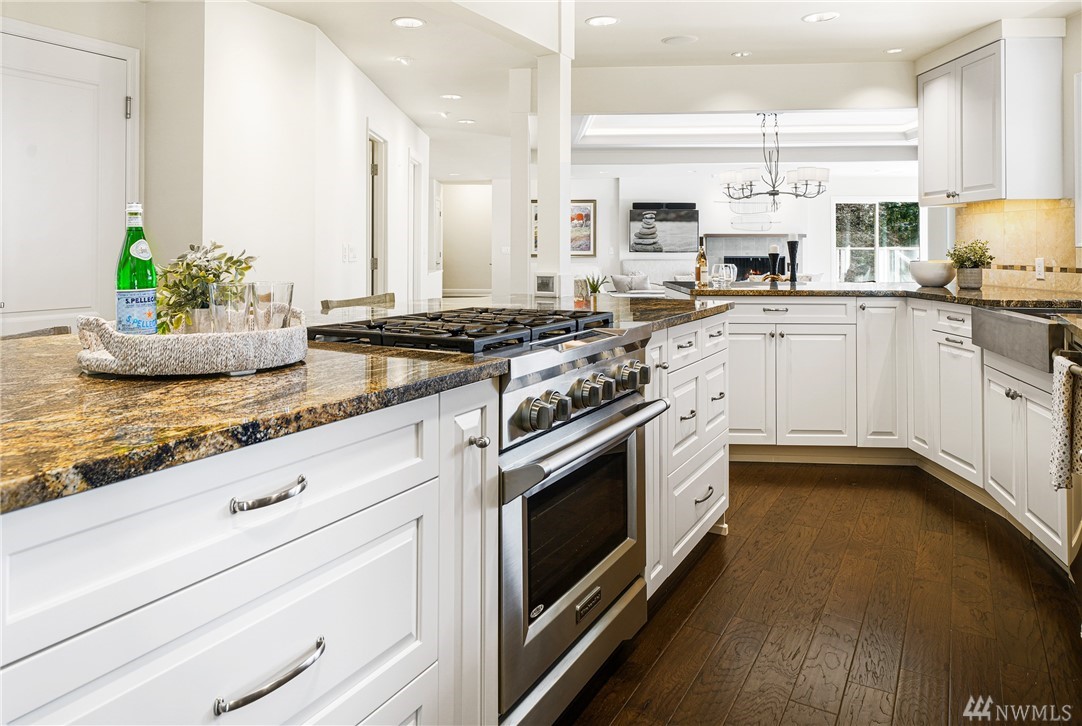 Arrive home to a timeless residence refreshed with modern appointments on a shy acre with lake & mountain views found perfectly on the coveted Westside of Mercer Island providing privacy within sought after neighborhood. The heart of the 4,730sf home is the ample chief’s kitchen which pours onto handscraped hickory hardwood floors from the massive slab island to the great room & out onto the outdoor entertaining area, all of which showcase the western exposure. The main level boasts full master suite with sitting area & view deck overlooking the grounds in addition to living room, dining room, 2 wood burning fireplaces bedroom/office. The sprawling 40,100sf gently sloping lot enjoys flowing areas for entertaining, play & retreat.