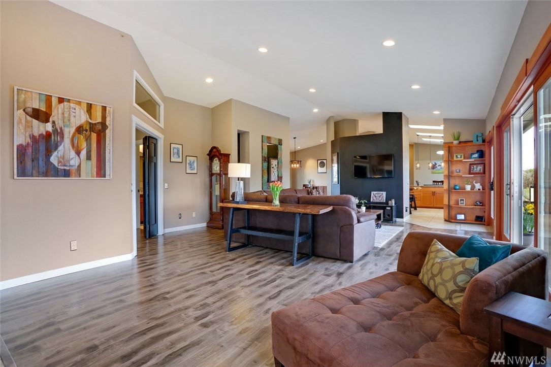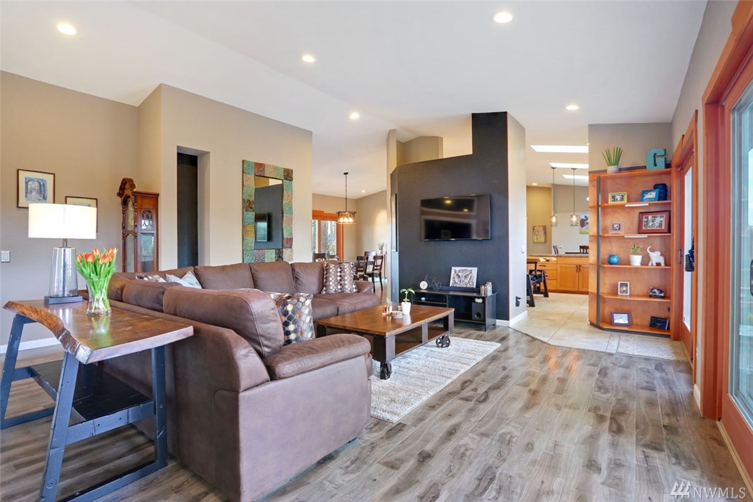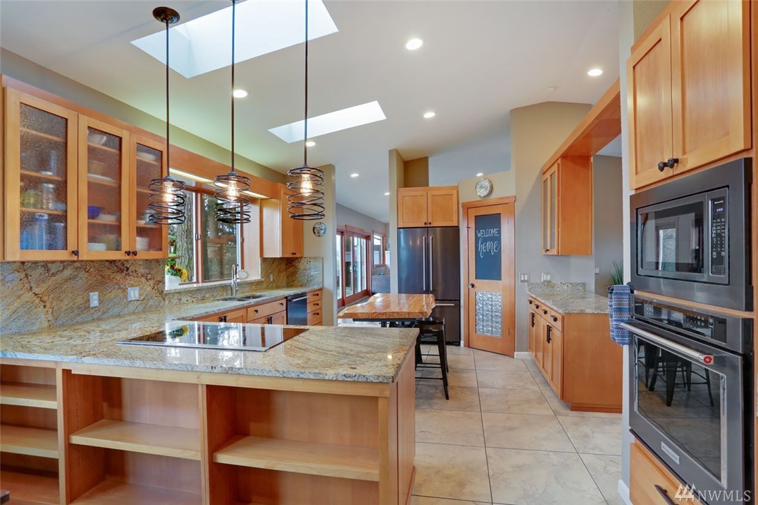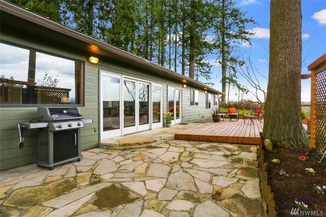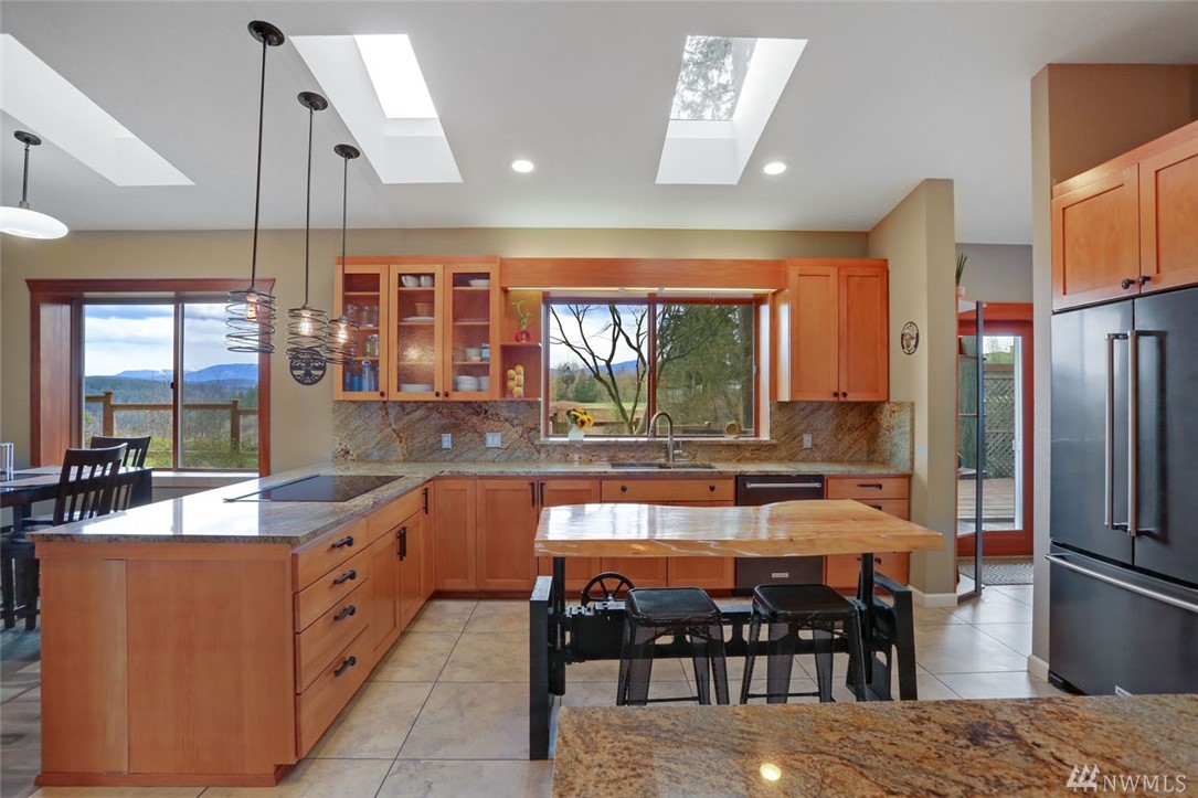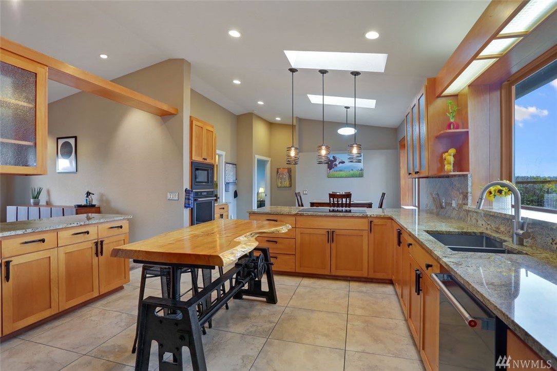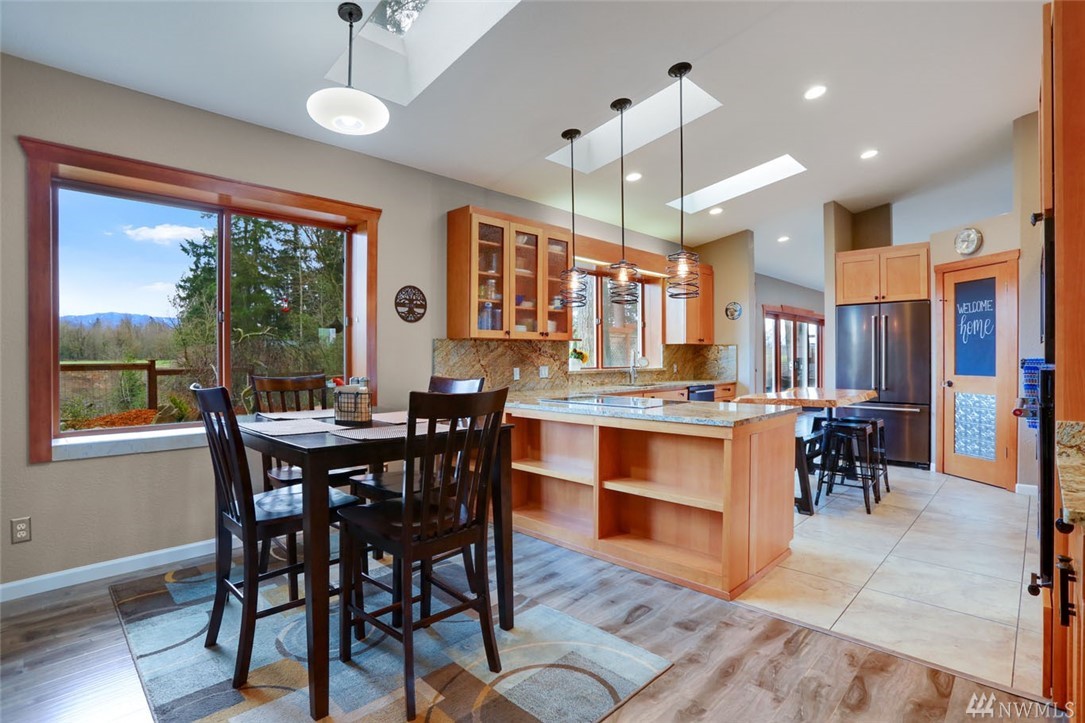Listen to the flowing Green River below from this Northwest-inspired custom retreat enjoying picturesque setting and majestic Mt Rainier views. Sophisticated one-level residence brims with gracious rooms, inviting style, architectural detailing, high ceilings, gleaming floors, skylights, rich wood finishes, classy fixtures and lighting, fashionable colors around every turn. Well-equipped and polished kitchen will host a crowd. Primary en-suite has indulgent bath, den/office ideal for work or school; addtl sizable bdrms. Two decks, flagstone patios, fire pit, lush landscaping, wooded grounds create the optimal outdoor experience. Detached garage with shops; greenhouse; hobby studio. Scenic drive leads to this spectacular home.