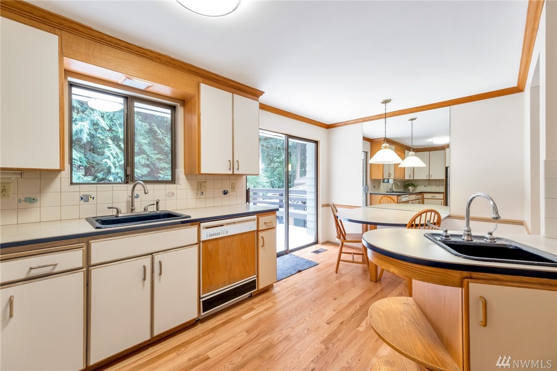This spacious home has floorplan that will accommodate so many lifestyle variables; ideally suited to multi-generational living, those looking for a variety of spaces for day-to-day living w/artist studio, working from home to those looking for additional income from ADU. 5 bedrooms, 5 bathrooms, laundry hook-ups on 3 levels & 3 kitchens. Recent updates include refinished oak floors, freshly painted interior, new roof. The deck & backyard are a tranquil place, with gazebo & hot tub. Enjoy a verdant view from all windows. EZ access to the King Fisher Natural area & just around the corner from Victory Heights playground. Close to everything: 3 miles N of UW, .75 mile to Northgate light rail, minutes to I-5 & 522. Come check it out!