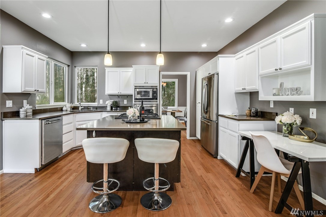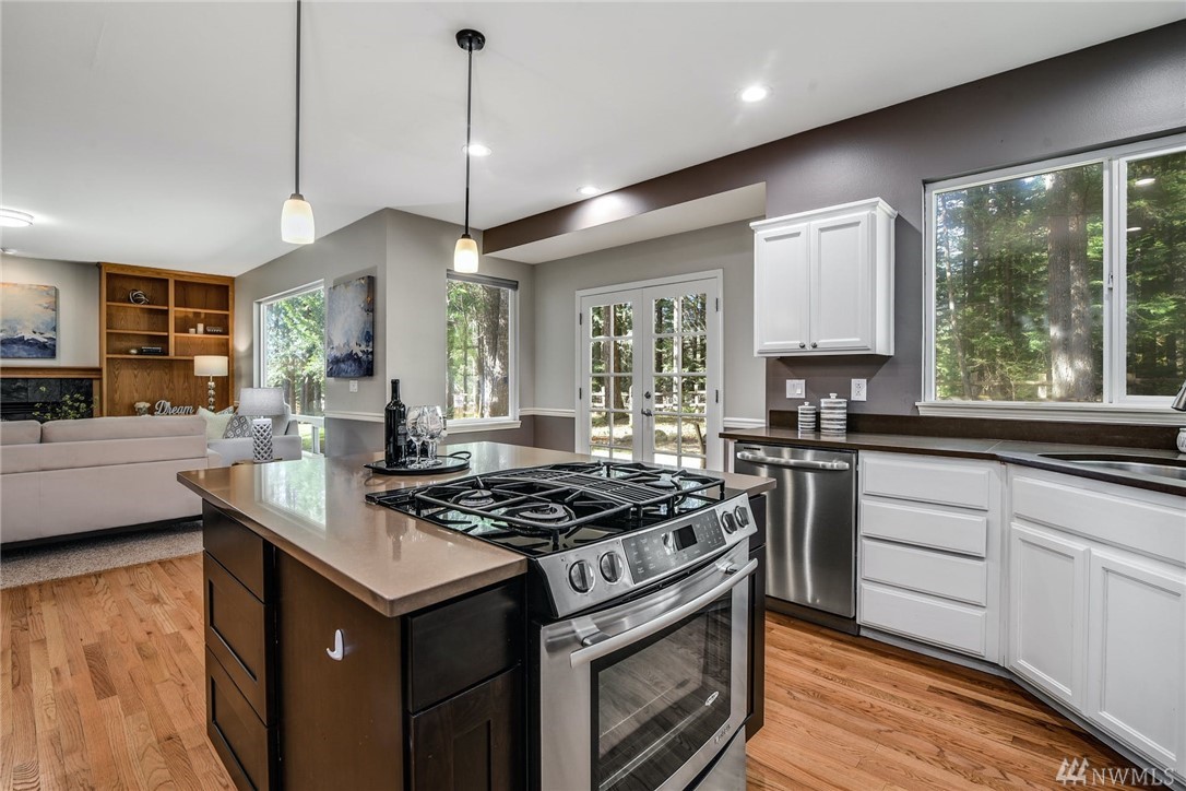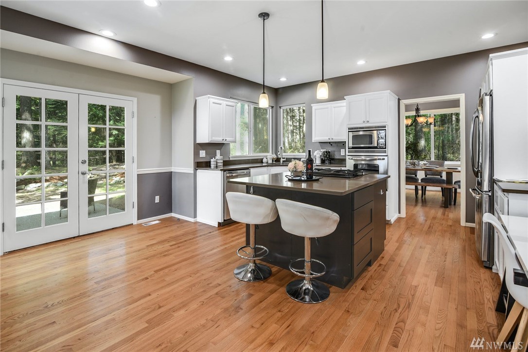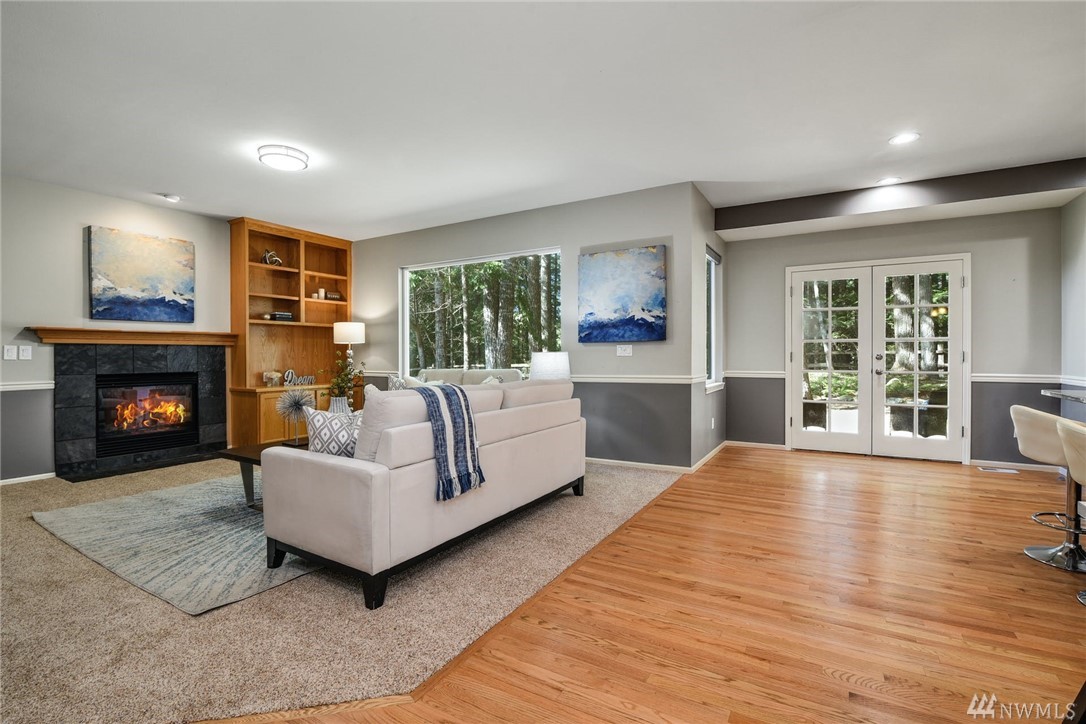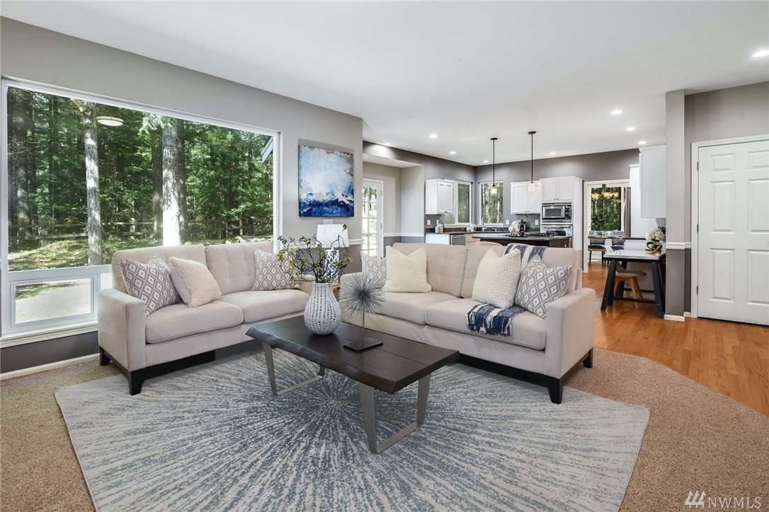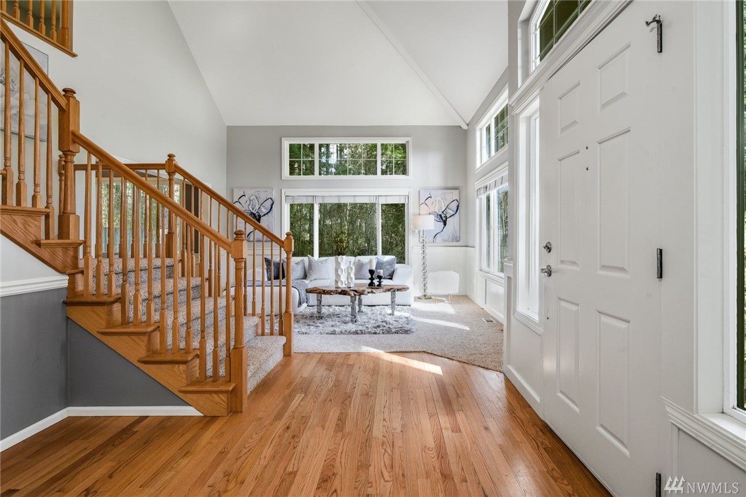 This stately home sits in a quiet cul-de-sac on a private, wooded lot that backs to a natural buffer zone. South-facing with copious light, the home features hardwoods & new carpet throughout. The kitchen pleases with stainless appliances, quartz countertops & chef's cooktop. Spacious living area with cozy fireplace, huge rec room and separate office with French doors. Low-maintenance yard. 4-car tandem garage with tons of storage! Easy access to I-90: 30 minutes to Downtown Bellevue or Snoqualmie Pass Ski Area. Nationally ranked and award-winning schools. Minutes to world-class hiking at Mt. Si, Teneriffe Falls and Granite Lakes. Northwest living at its best!
