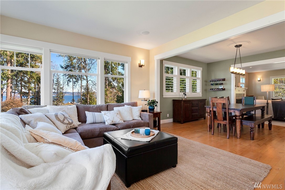 Sweeping views of the Puget Sound, Mt Baker, Kingston/Edmonds ferry, tug boats, cargo ships, aircraft carriers, submarines, & pleasure boats from almost every room! Home is located in a brilliantly planned, quality neighborhood w/12 Custom homes that shares 500' of private beach owned by the HOA. This gorgeous custom craftsman home offers 3 generous beds, bonus room, 2.75 bth, 2980 ft all on a flat & useable .39 acres. Primary suite has large 5 pc en-suite bth. High-end finishes, cherry cabinetry, granite kitchen, wood floors, plantation shutters, gas fireplace & too much more to list. Home borders an open space area where you can enjoy beautiful views while entertaining from your covered porch & back deck. 10 mins to Fast Ferry.