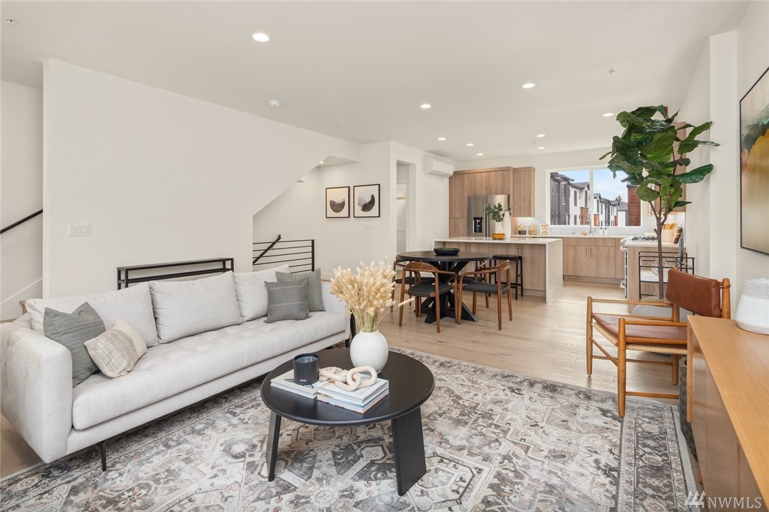 THE FIELDHOUSE, A Walk Anywhere Community in the heart of DT Bothell just steps to McMenamins, shopping, cafes, parks and trails! Upgraded features come standard: huge center island, pantry, Quartz counters, under-cabinet lighting, AC, KitchenAid appliances, E/V car charger enabled, wrought-iron railings, sleek hardwoods, covered deck and front porch, plentiful storage. Owners suite w/sumptuous bath, spacious walk-in closet, custom ceramic tile. 2nd bedroom w/ensuite. Two car garage! This 2 bedroom "Hero" is in a premier and private location and is designed to maximize natural light. High value location provides convenience & walkability. Look for our new model home & red signs directly across from the new construction!