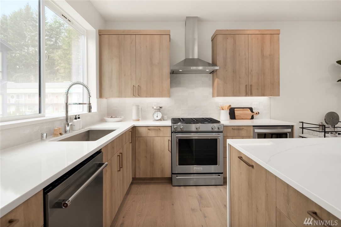THE FIELDHOUSE, A Walk Anywhere Community in the heart of DT Bothell just steps to McMenamins, shopping, cafes, parks and trails! Upgraded features come standard: huge center island, pantry, Quartz counters, under-cabinet lighting, AC, KitchenAid appliances, E/V car charger enabled, wrought-iron railings, sleek hardwoods, covered deck and front porch, plentiful storage. Owners suite w/sumptuous bath, spacious walk-in closet, custom ceramic tile. 2nd bedroom w/ensuite. Two car garage! This 2 bedroom "Hero" is in a premier and private location and is designed to maximize natural light. High value location provides convenience & walkability. Look for our new model home & red signs directly across from the new construction!