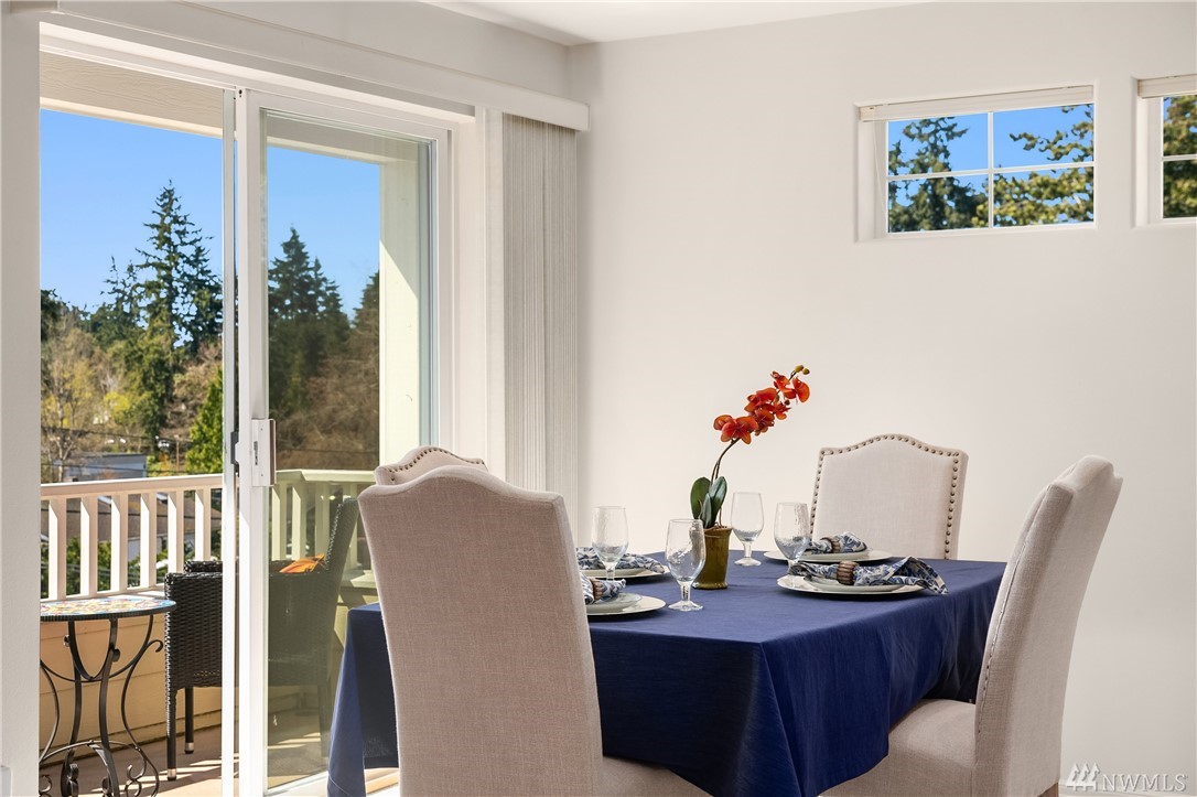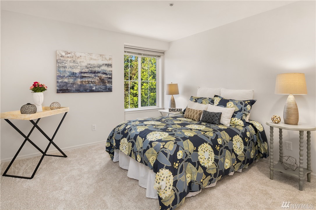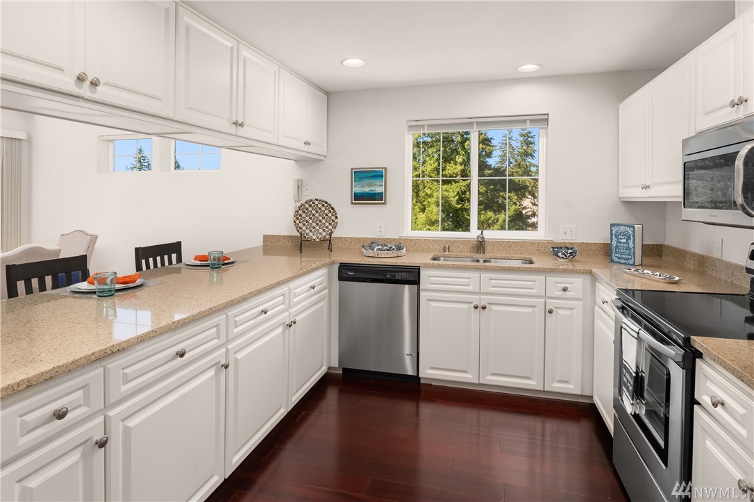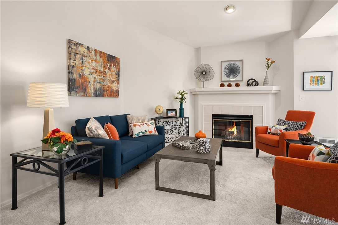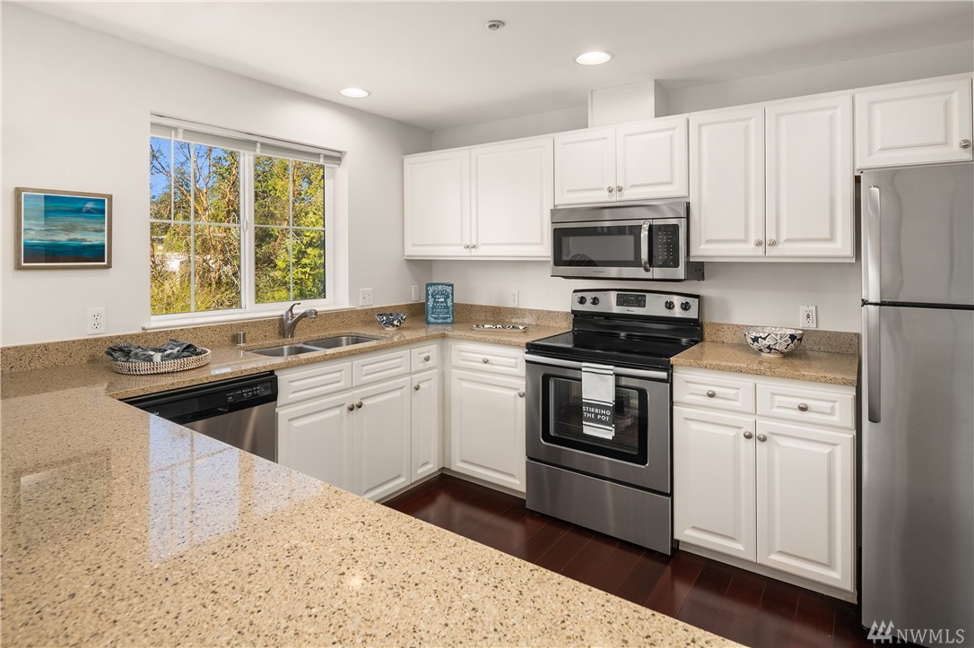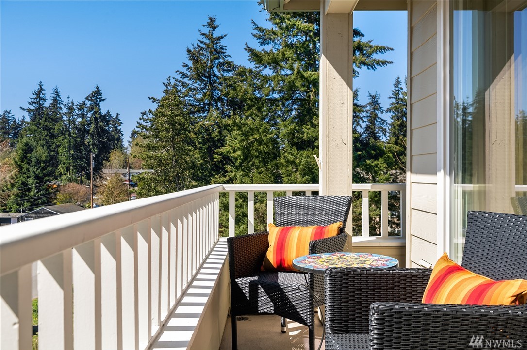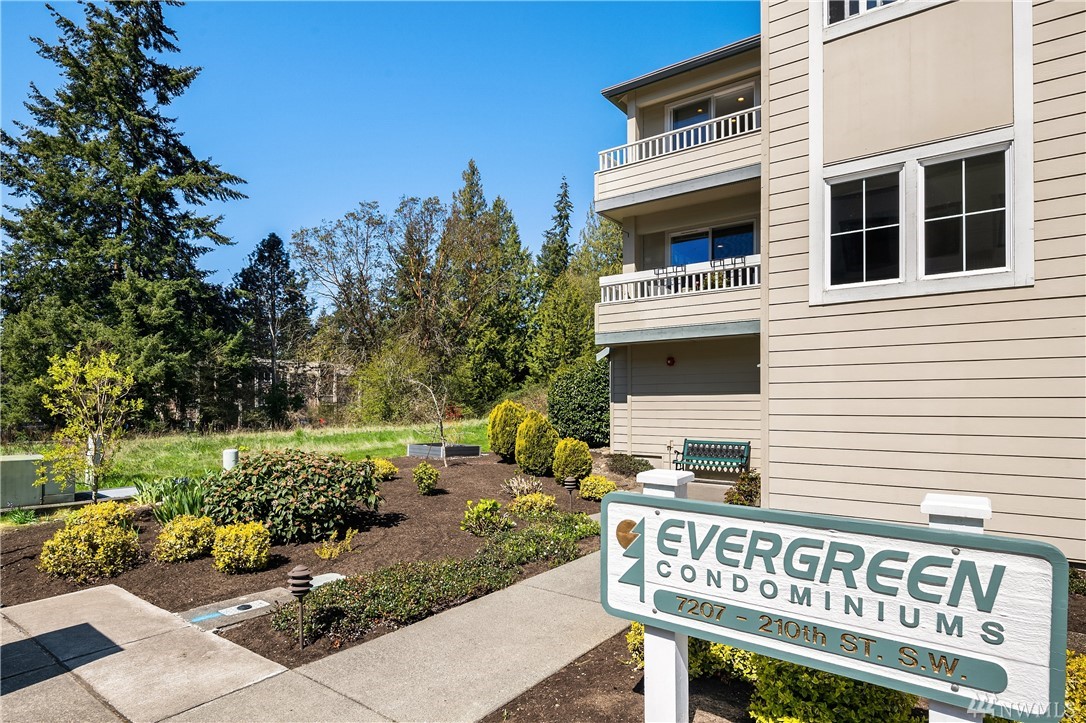 A rare find! Beautiful southwest top floor corner unit. Light and bright. Adult building, 55 and over, with 2 parking spots in secure garage plus large storage unit. Living room has vaulted ceilings and a gas fireplace. Open kitchen design with lots of counter space, plenty of cabinets, and stainless steel appliances. Quartz counters and roomy breakfast bar. Private deck off dining room to soak in the sun. Large master bedroom with spacious dedicated full bath. All new paint and carpets. Beautiful hardwoods too. Ready to move in. Close to shopping and Lynnwood golf course. Only 10 units in the building. Wonderfully maintained building and landscaping. Elevator too. A no smoking building. And a very nice territorial view!