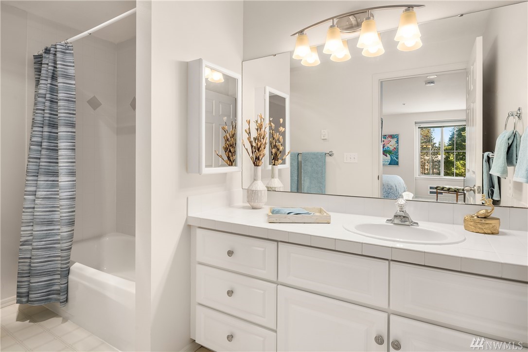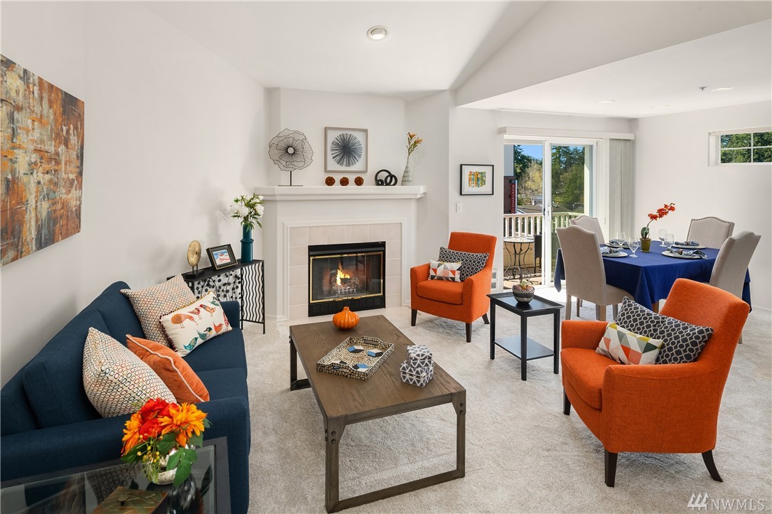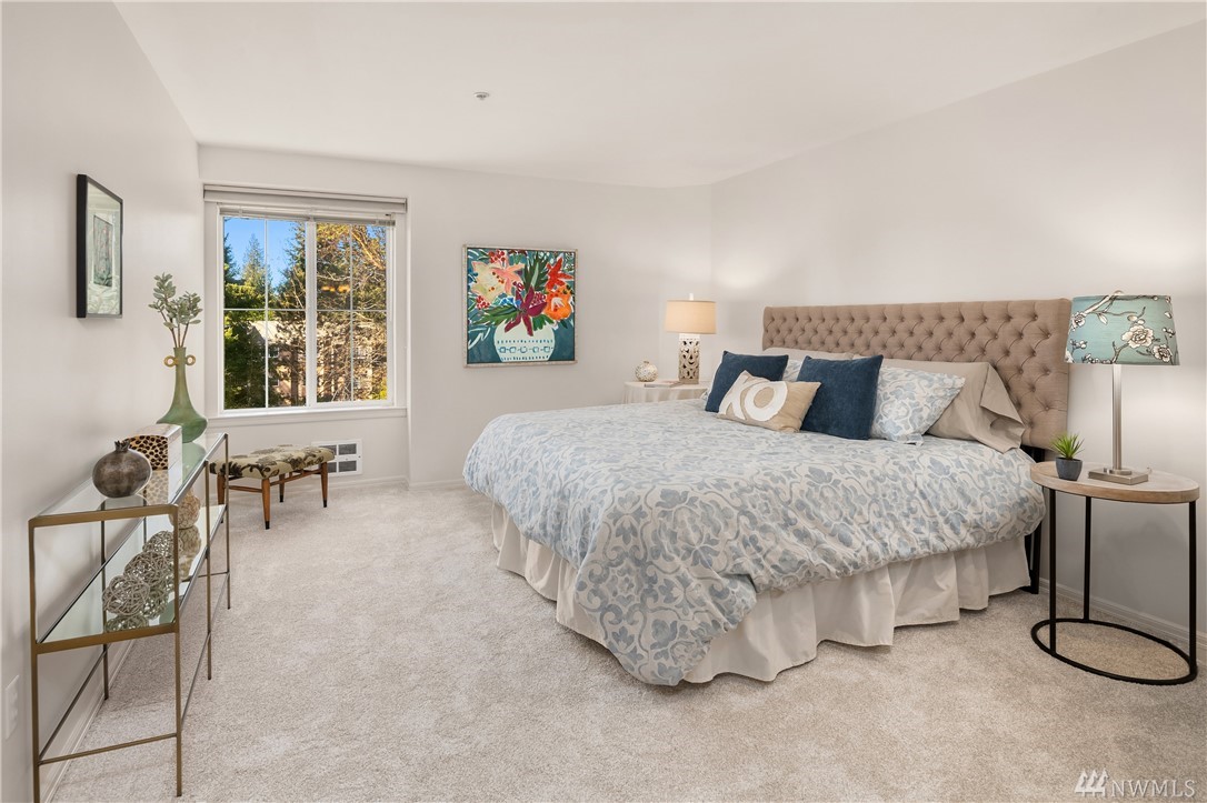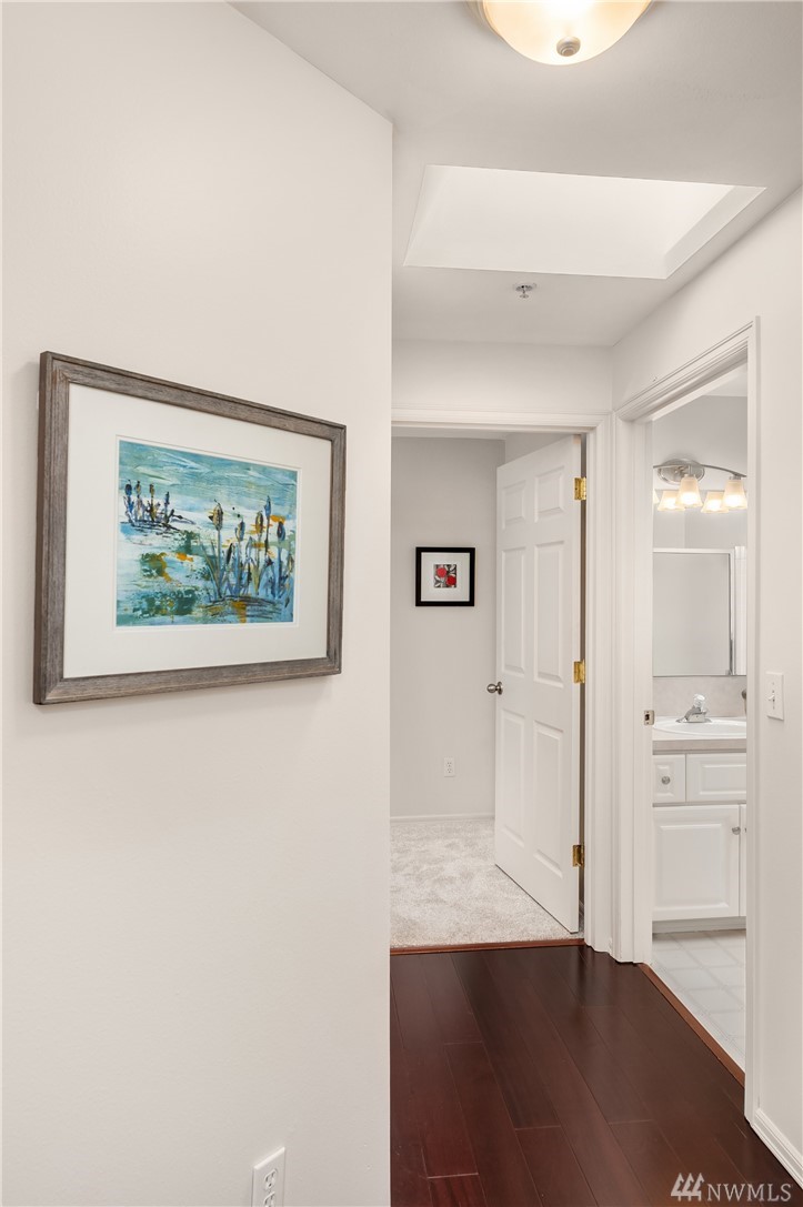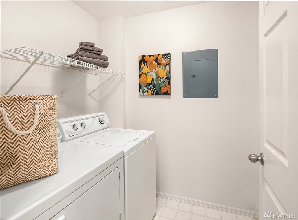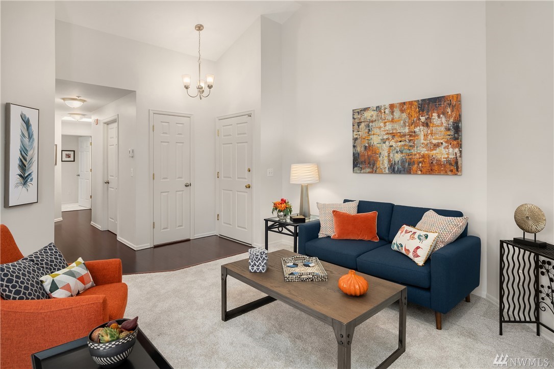 A rare find! Beautiful southwest top floor corner unit. Light and bright. Adult building, 55 and over, with 2 parking spots in secure garage plus large storage unit. Living room has vaulted ceilings and a gas fireplace. Open kitchen design with lots of counter space, plenty of cabinets, and stainless steel appliances. Quartz counters and roomy breakfast bar. Private deck off dining room to soak in the sun. Large master bedroom with spacious dedicated full bath. All new paint and carpets. Beautiful hardwoods too. Ready to move in. Close to shopping and Lynnwood golf course. Only 10 units in the building. Wonderfully maintained building and landscaping. Elevator too. A no smoking building. And a very nice territorial view!