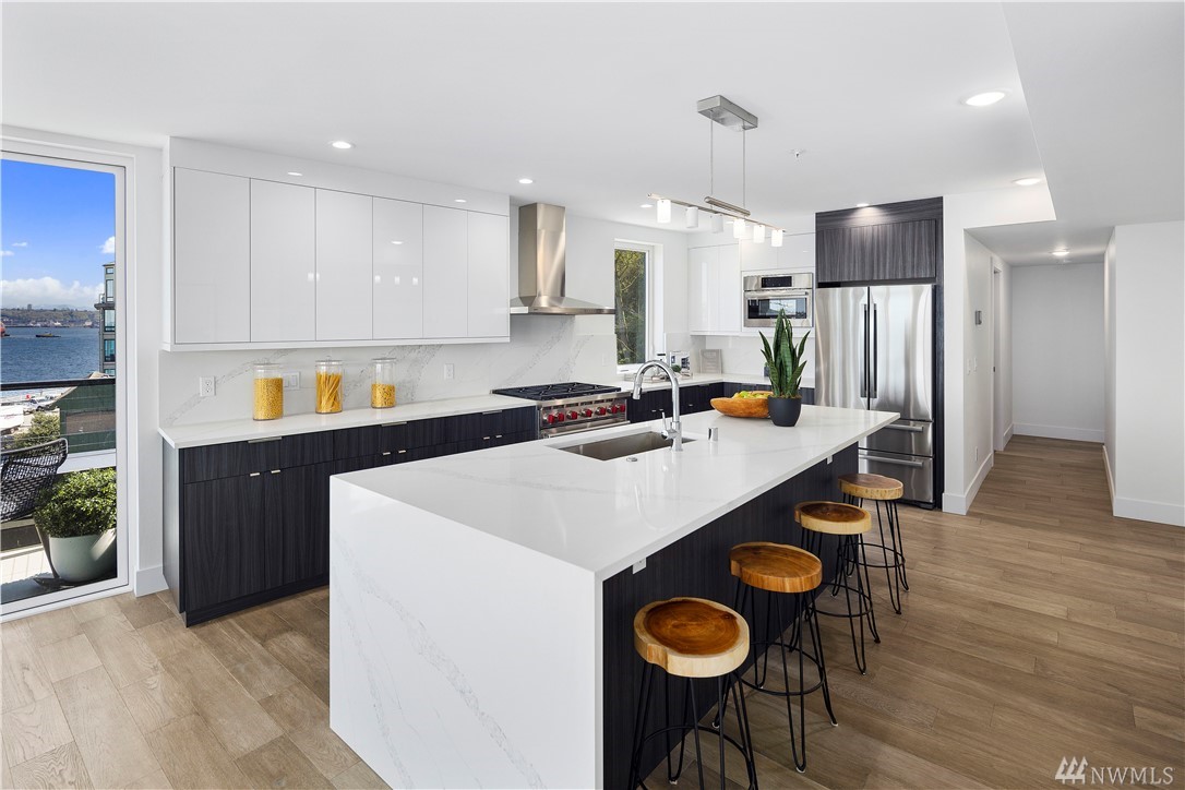 Would you prefer waterfront views or skyline views? Here you get them ALL! The Pinnacle at Alki is a new kind of luxury living in Seattle. This exclusive new construction condo is right on the amazing Alki beach. Your new 3 bed, 2.5 bath home has gorgeous quartz waterfall island, floor-to-ceiling windows, designer finishes, garage parking, tons of free street parking too & so much more. Watch the space needle fireworks from your rooftop deck that also boasts a fireplace and grill. Perfect for every season. Custom designed fireplaces in living room and master bedroom, individual A/C in each unit, all in a boutique building with only 11 total units, 2 on each floor. Perfect combo of privacy and being in the center of it all.