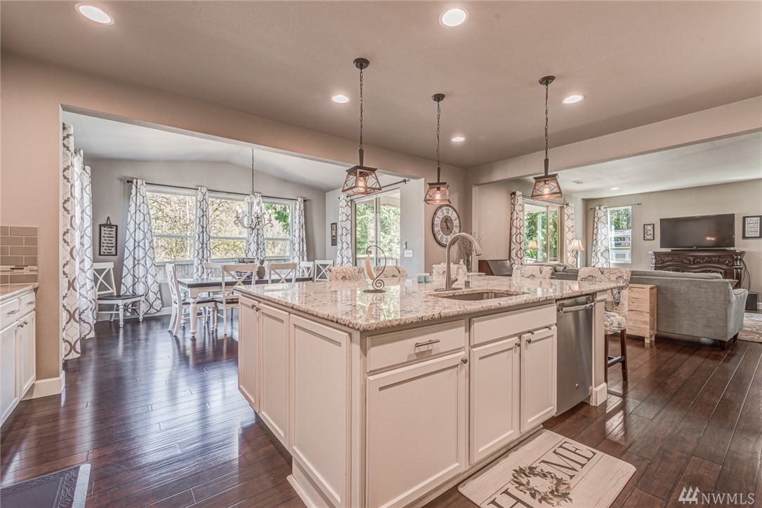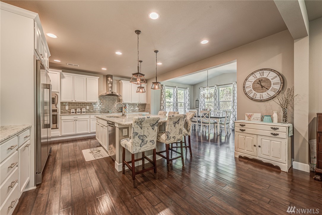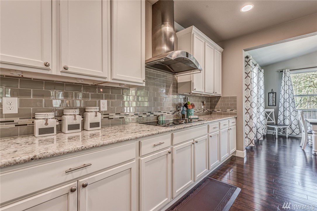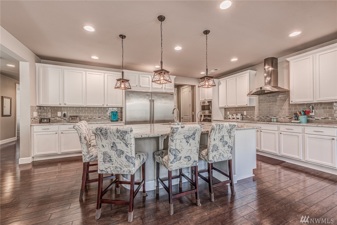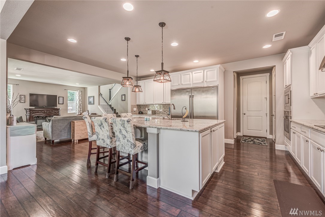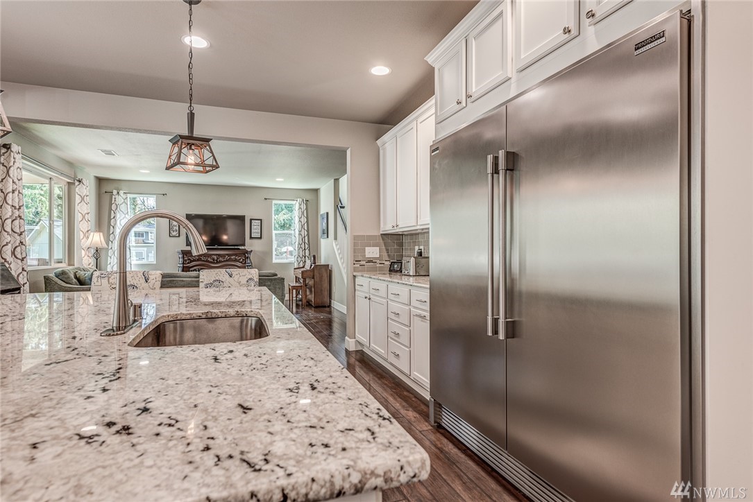 This is THE home. Beautiful top to bottom.Desirable newer Lake Stevens neighborhood. Entry and most of main floor has beautiful laminate floors. Gourmet kitchen that will please anyone from a chef to a pro microwaver. Giant granite slab countertops galore. Opens to great room and dining area.Tall ceilings and warm colors are very soothing.This house is perfect for entertaining or just to snuggle up and watch TV. Master boasts a 5 piece bath and large walk in closet. Upstairs family room has plenty of area to spread out. Three car garage for cars or toys. Laundry with utility sink. Large greenbelt lot w/garden area w/raised beds that will stay. Newer shed that will stay. Newer heat pump to keep winter warm and summer cool. Upgrades galore.
