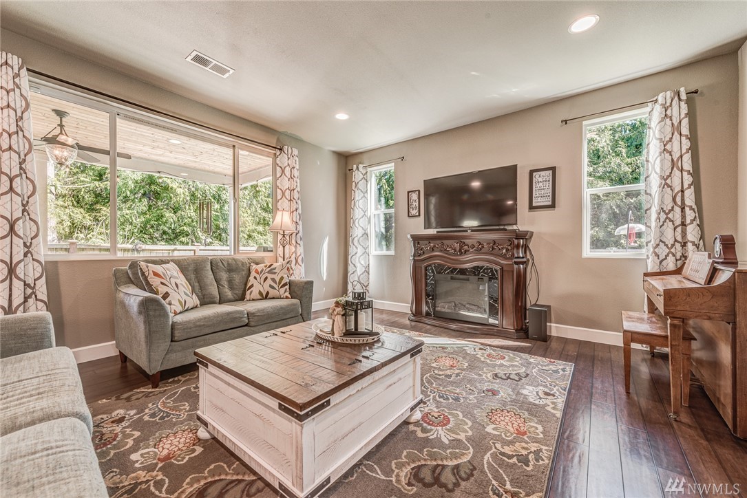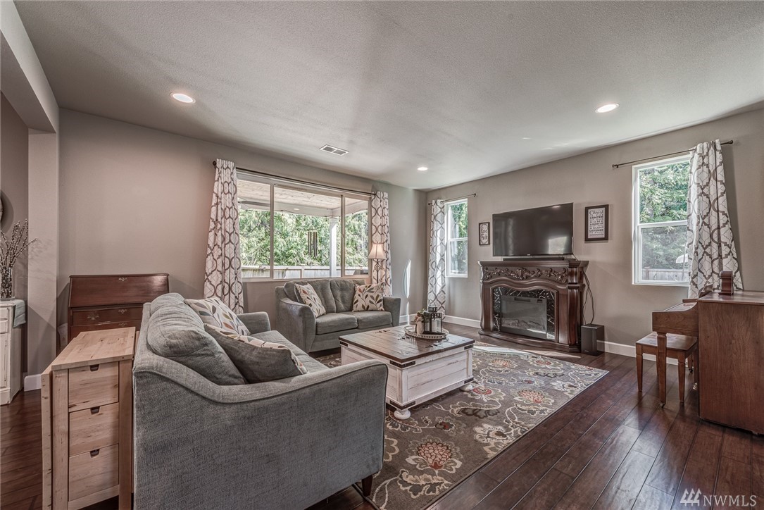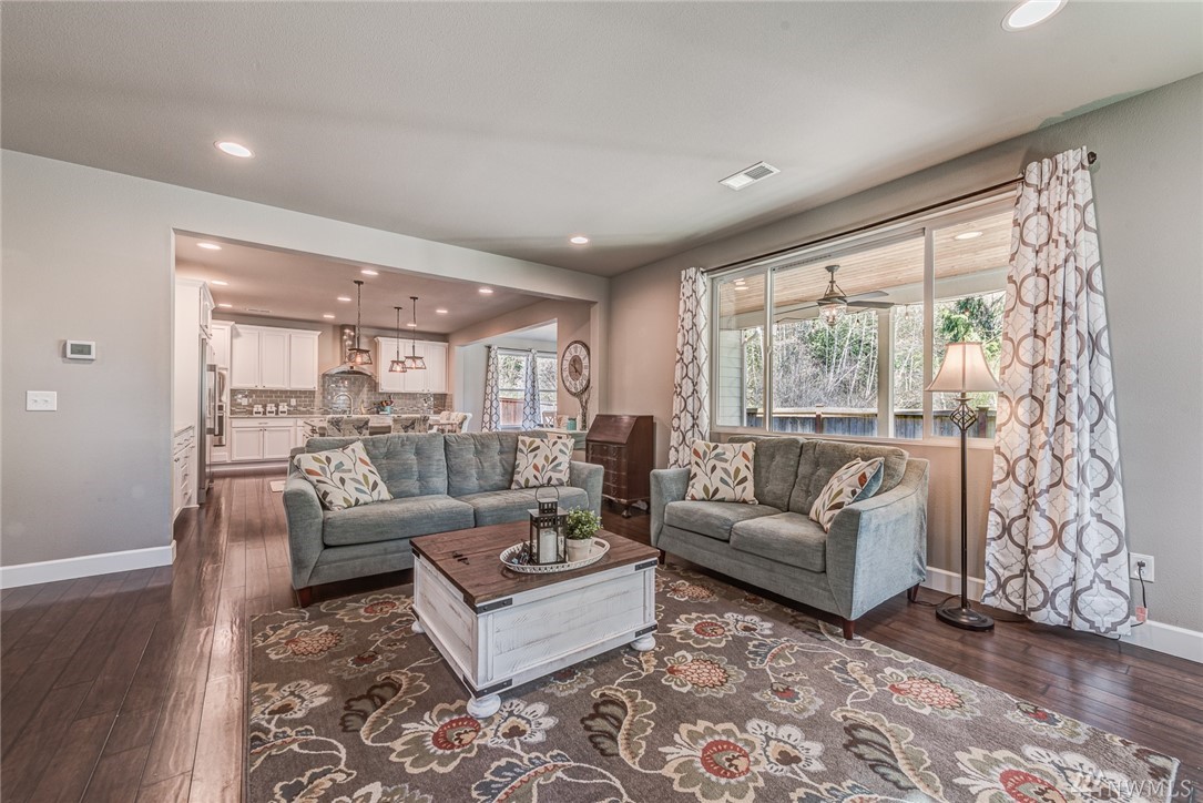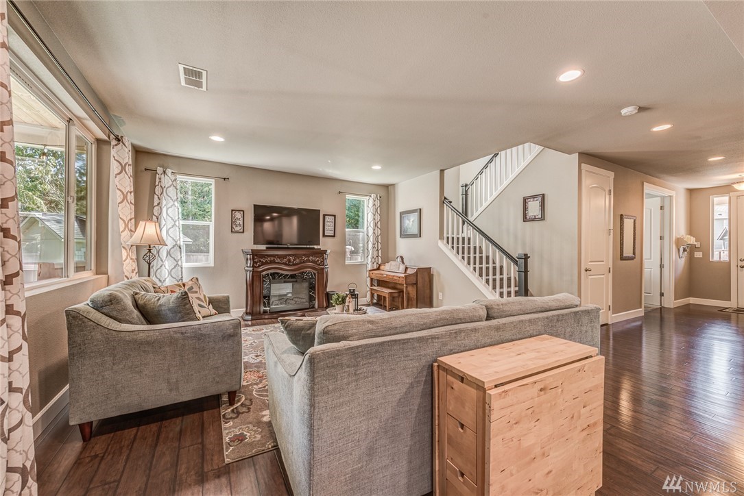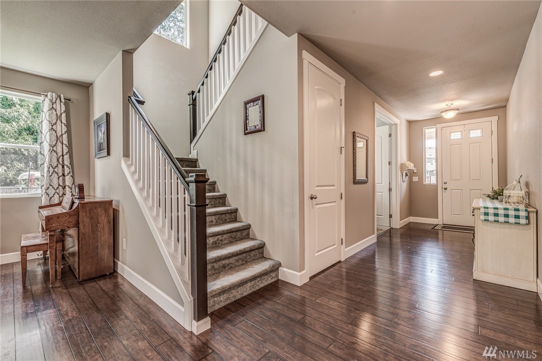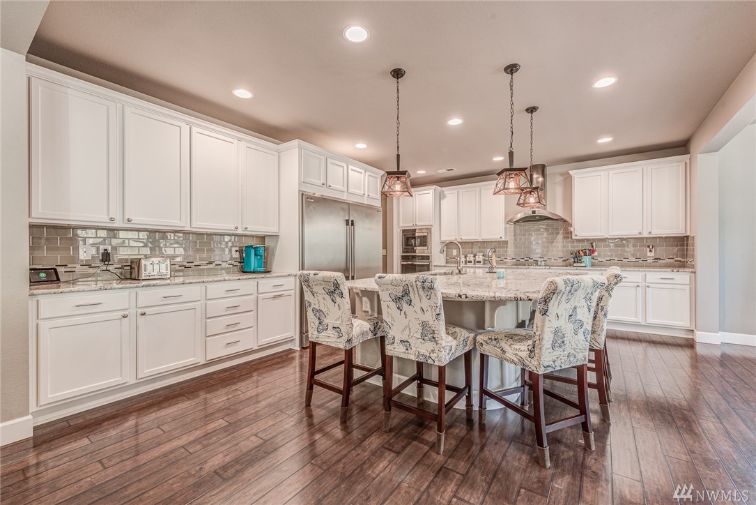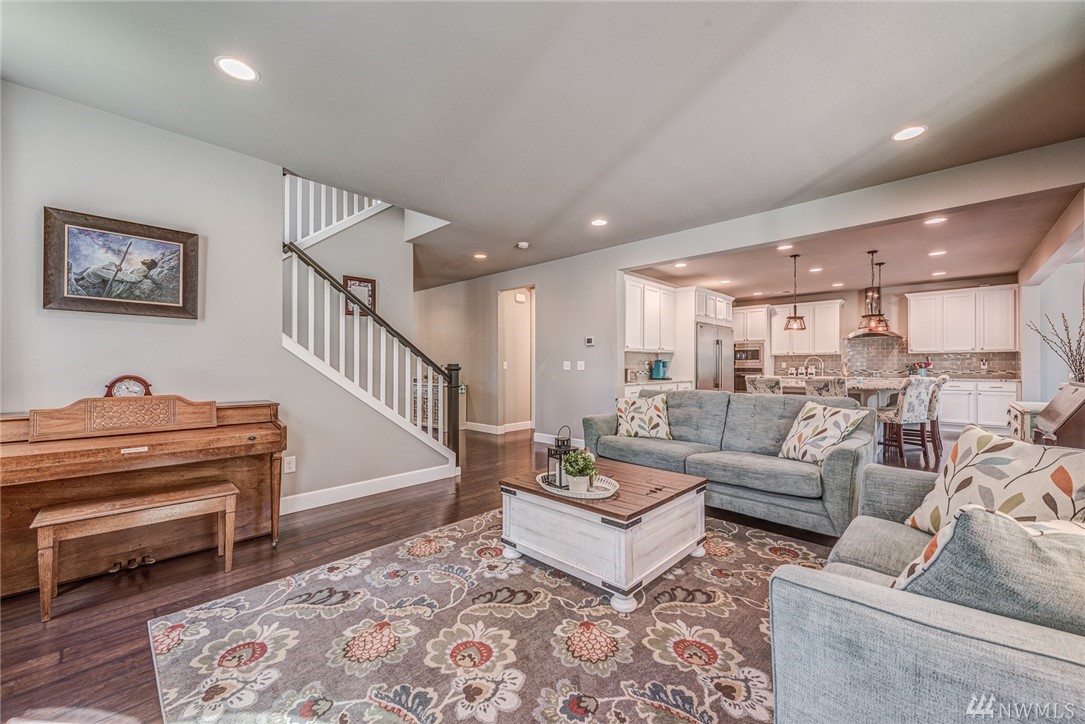 This is THE home. Beautiful top to bottom.Desirable newer Lake Stevens neighborhood. Entry and most of main floor has beautiful laminate floors. Gourmet kitchen that will please anyone from a chef to a pro microwaver. Giant granite slab countertops galore. Opens to great room and dining area.Tall ceilings and warm colors are very soothing.This house is perfect for entertaining or just to snuggle up and watch TV. Master boasts a 5 piece bath and large walk in closet. Upstairs family room has plenty of area to spread out. Three car garage for cars or toys. Laundry with utility sink. Large greenbelt lot w/garden area w/raised beds that will stay. Newer shed that will stay. Newer heat pump to keep winter warm and summer cool. Upgrades galore.