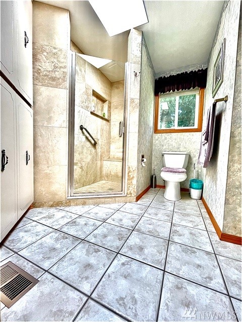 Fantastic property in a great location in Enumclaw.Features incl;2 bed,1.75 bath & large office that has been used as a 3rd bedroom (needs closet & door)Septic is designed for a 3 bedroom, 2,180 SF & situated on a large private .85 acre lot(36,975 SF)w/ natural landscaping,2 car attached garage & large 500SF detached shop.This beautiful 1-story home is very well cared for,incl vinyl windows,Lg well maintained hot tub & gazebo,Corian counter tops,extensive tile & laminate floor.Dbl sided wood fire place w/ beautiful brick that faces/heats living rm & master bedrm,Rheem heat pump/furnace,solar tubes & skylights thru out,very well cared for cedar siding,Lg utility rm w/sink,travertine master 3/4 shower,updated solid doors & molding.Must see