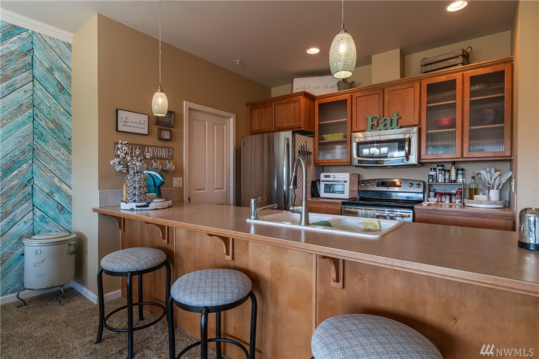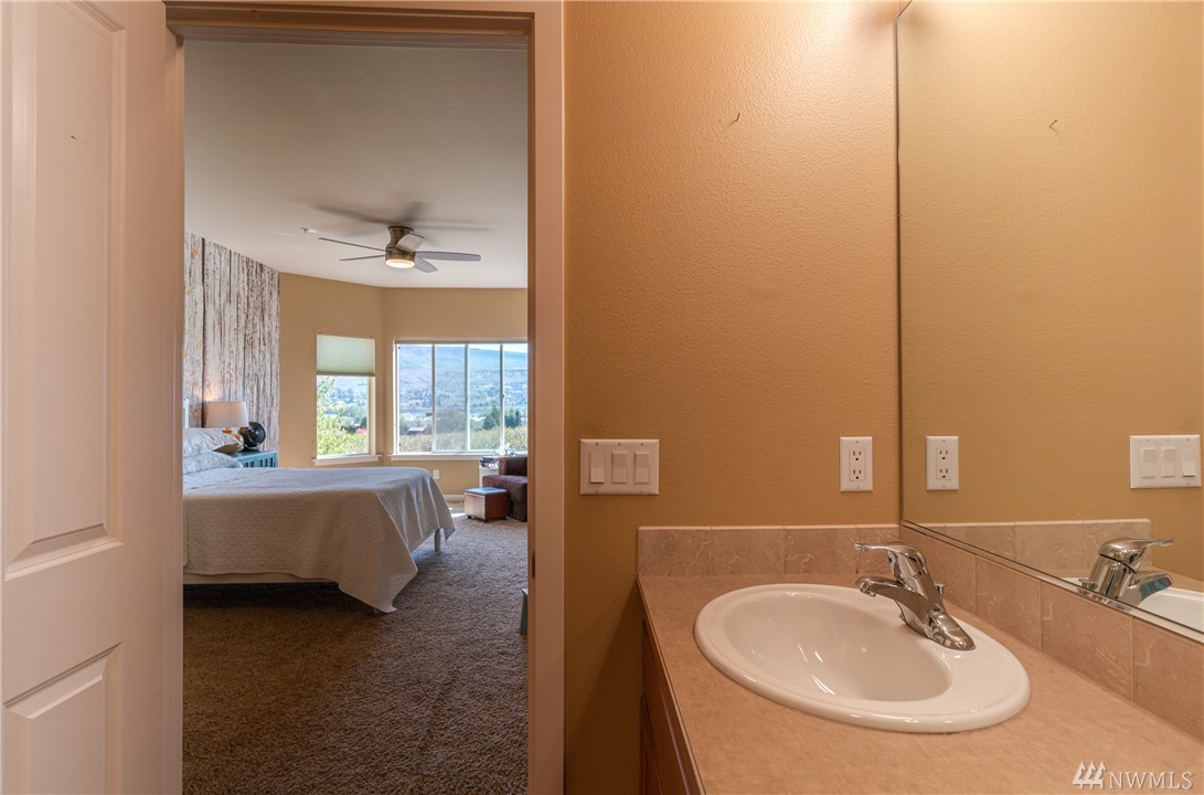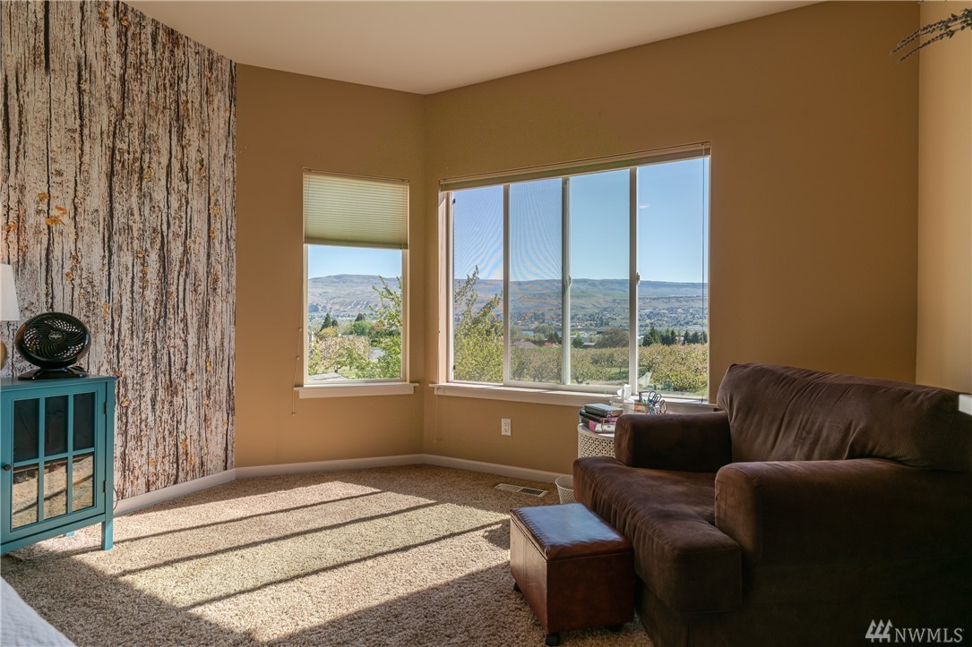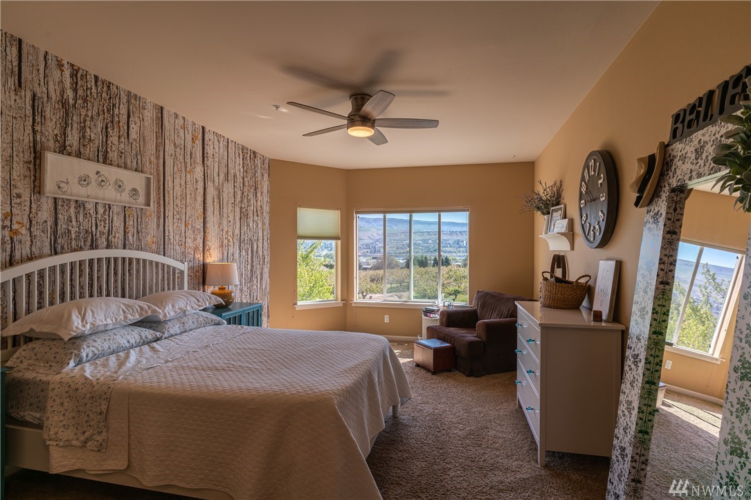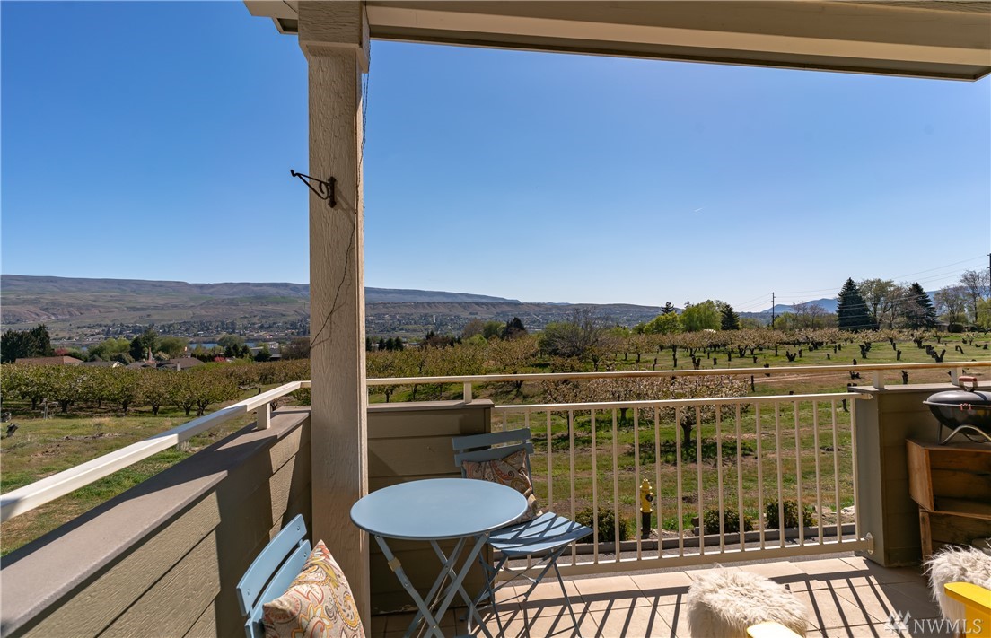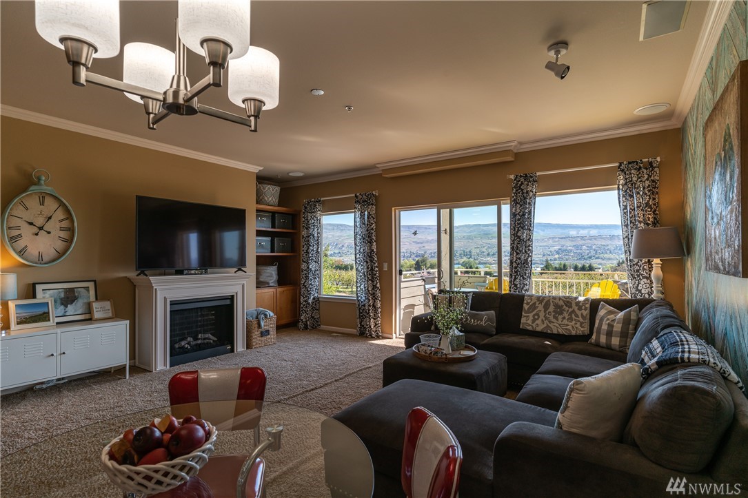 Desirable Cherry Lane view condo w/ custom interior designer features throughout and fantastic centralized location. Open concept living + spacious living room w/ cozy fireplace, open to dining and kitchen. A wall of windows allows for an abundance of natural light. Glass slider to deck with relaxing Columbia River, mountain and Wenatchee Valley territorial views. Kitchen with both formal dining and breakfast bar seating, stainless steel appliances and large pantry. All appliances included in sale. Light and bright master suite offers enough room for sitting area along with master bathroom with dual vanity, walk-in shower and large walk-in closet. Attached heated one car garage is added bonus along with separate secured storage.