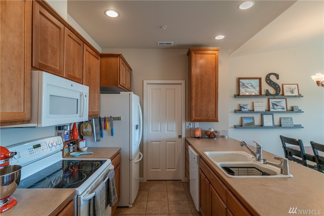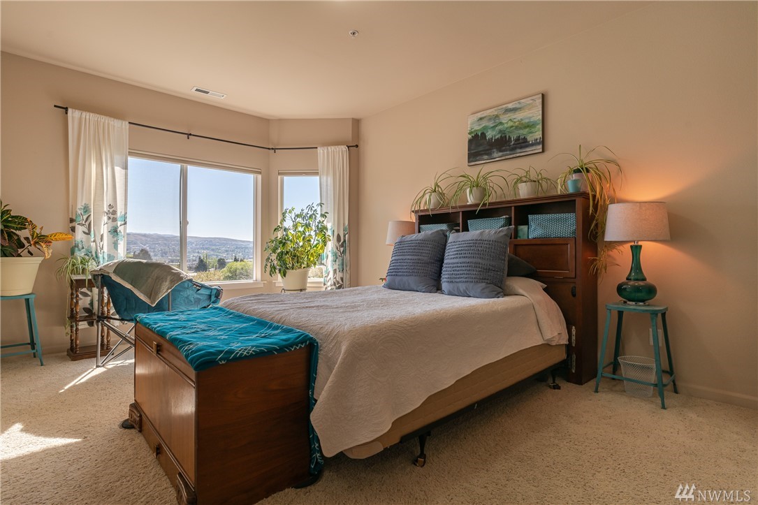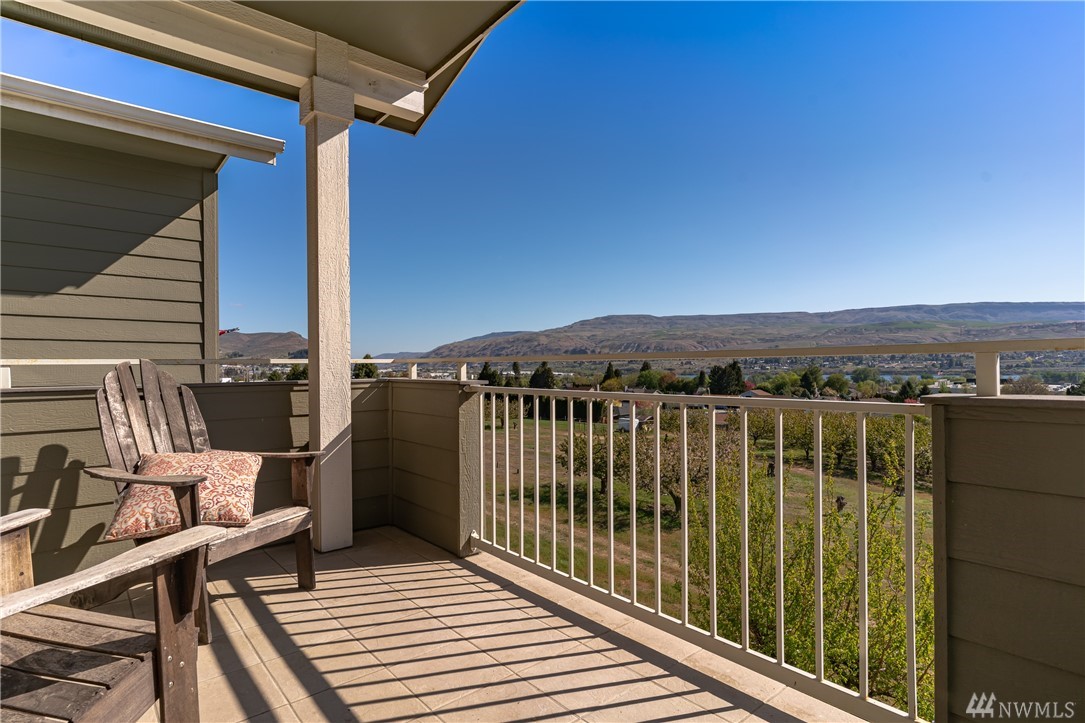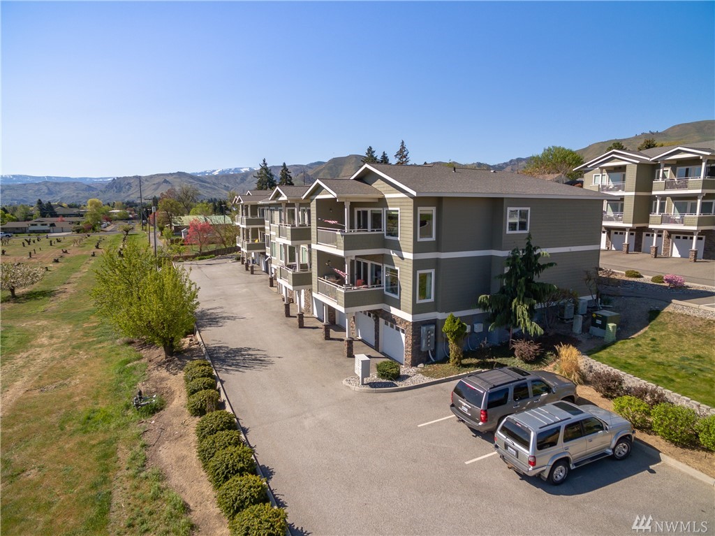 Highly sought after top floor unit in desirable Cherry Lane condominium community. Open concept with nice flow from living, dining and kitchen areas. Living room with fireplace and built-in desk nook tucked subtlety behind closet doors. View deck overlooking the Columbia River and the Wenatchee Valley is the perfect place to sit and out enjoy the peaceful views, relax or BBQ. Main bathroom combined with laundry for convenience. Master bedroom offers room for sitting area, en-suite bathroom with dual vanity, walk-in shower and large walk-in closet. Unit offer attached garage and separate storage area. Close proximity to shopping, recreation and only minutes to downtown.