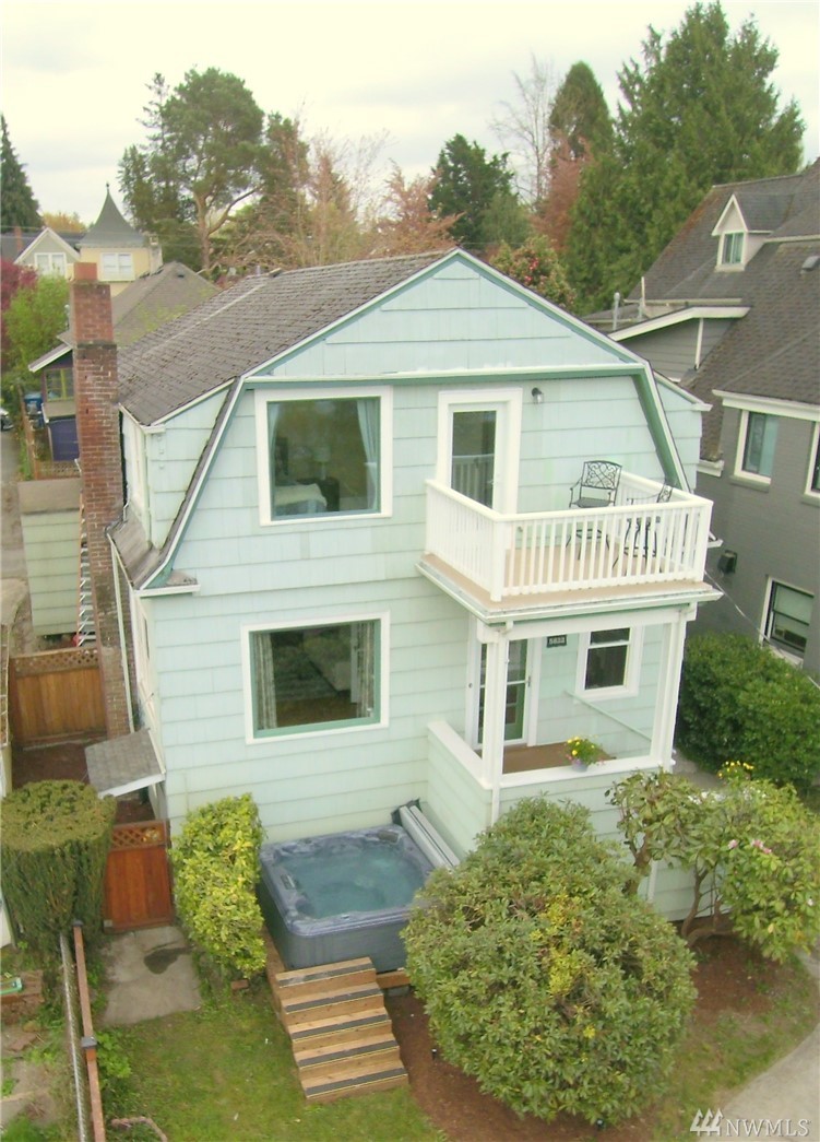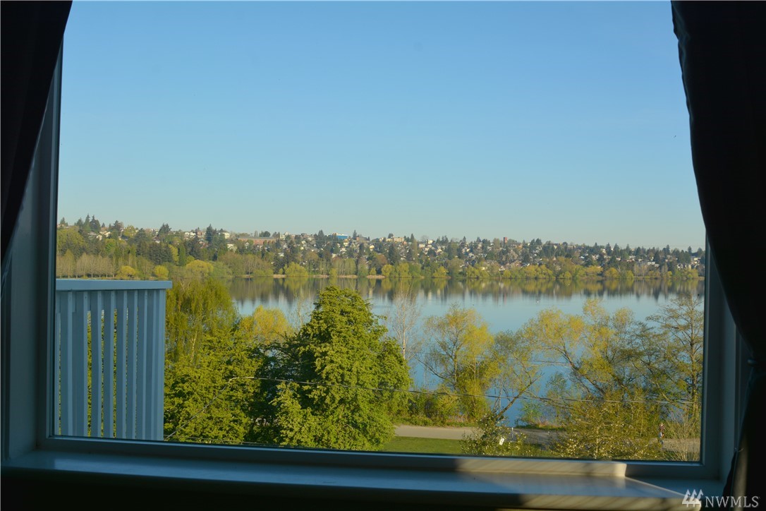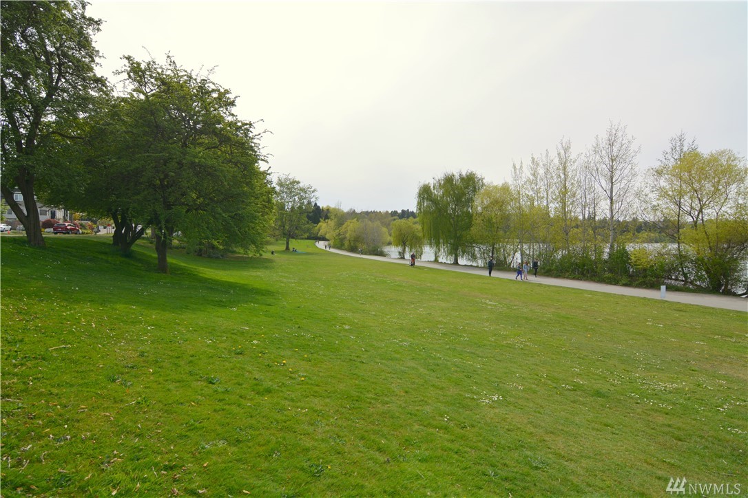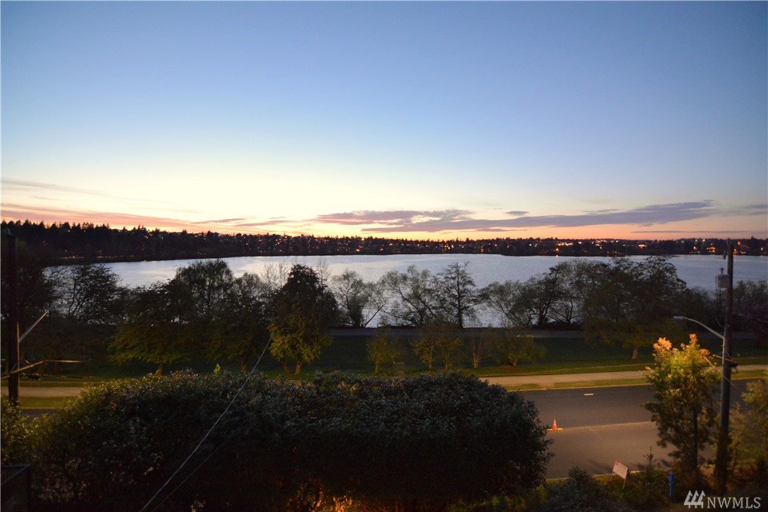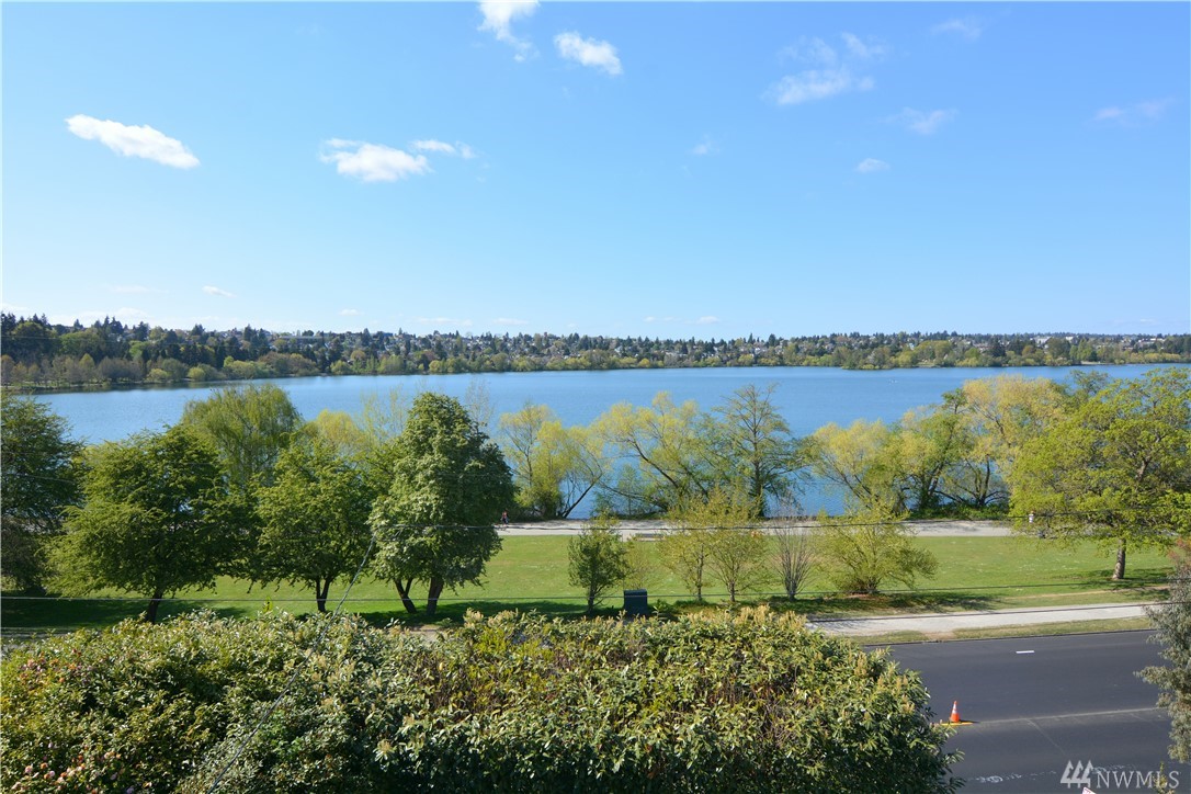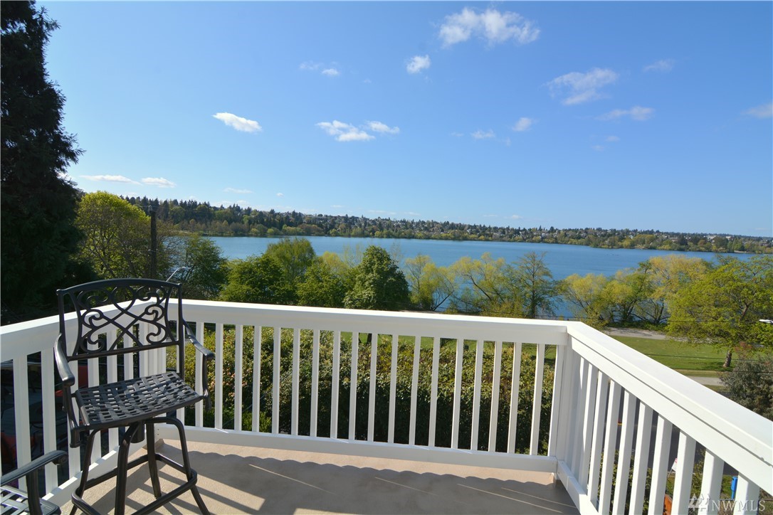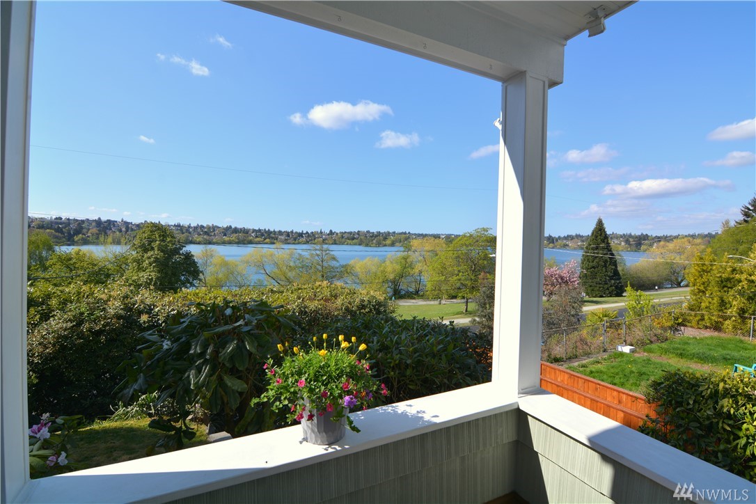 Take in the commanding lake views from the covered front porch & living room or watch sunsets from master bedroom w/ its own deck. The views & lakefront activities will keep you drawn to the front of this classic colonial home. Entry foyer opens to great entertainment space on main floor w/ formal dining room. Upper level bedrooms are light, bright & generously sized. Upper bath boasts large soaking tub & multi head shower. Basement has many possibilities w/ separate entries, kitchen, bath, & living space. Just cross the street immerse yourself in activities on & off the lakefront park. Running, biking, kayak, SUP & swim from your front door! Walk to the many eateries, pubs & local amenities. If you want a Greenlake, lifestyle, this is it!