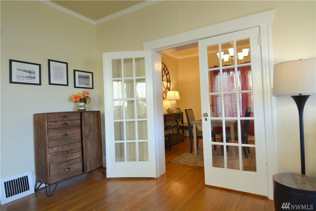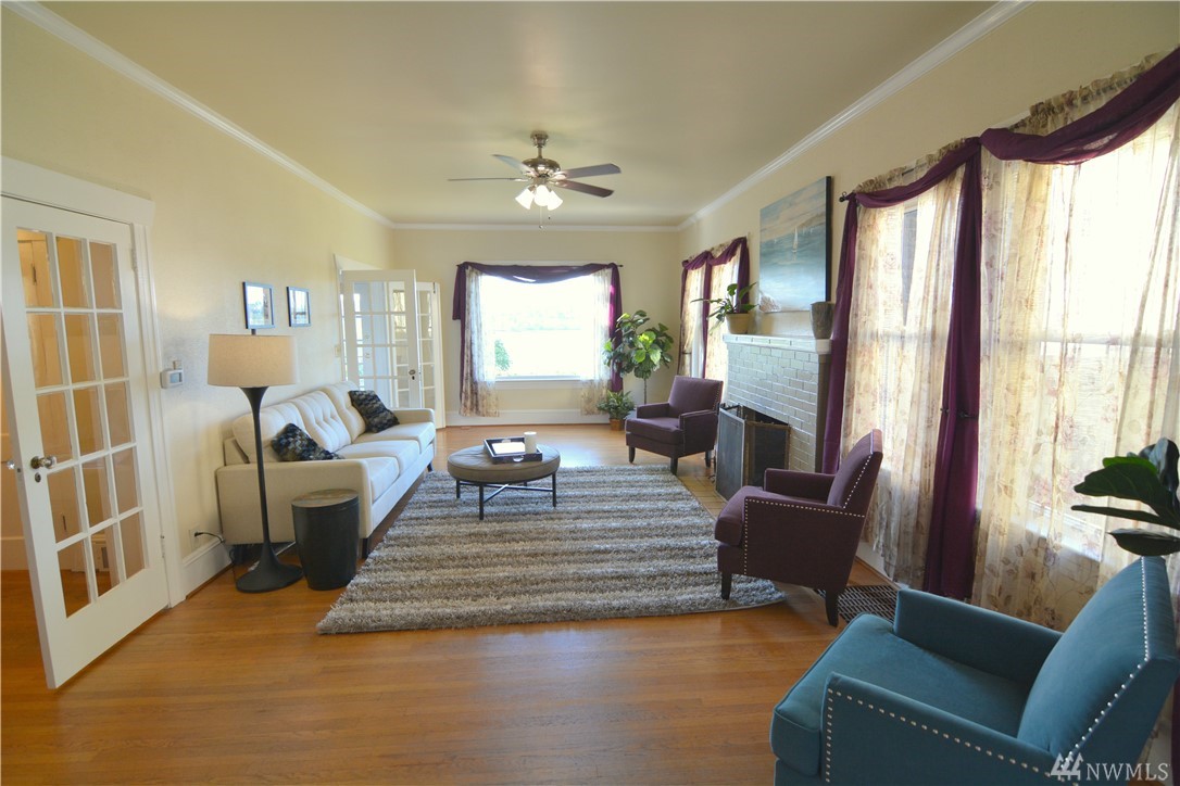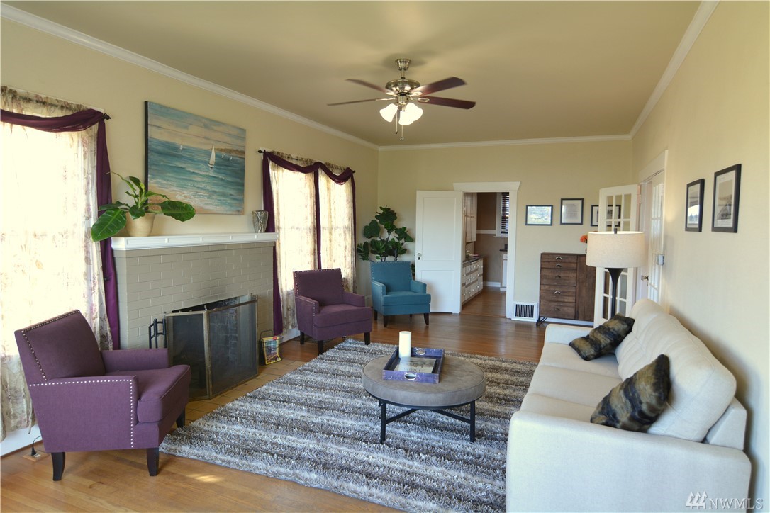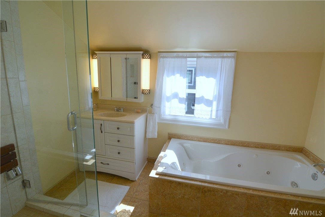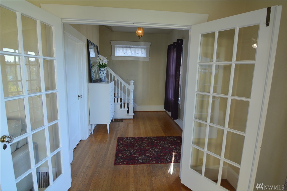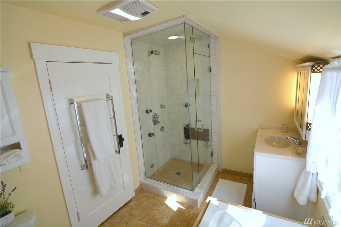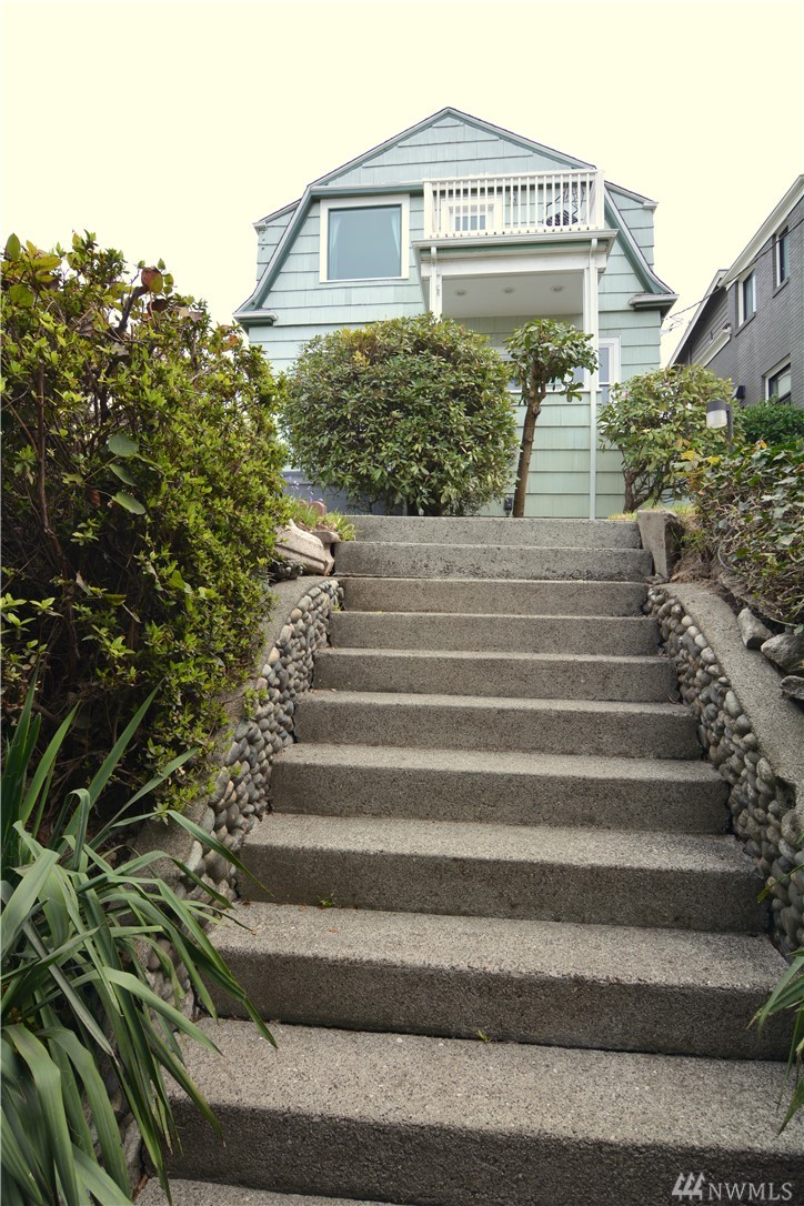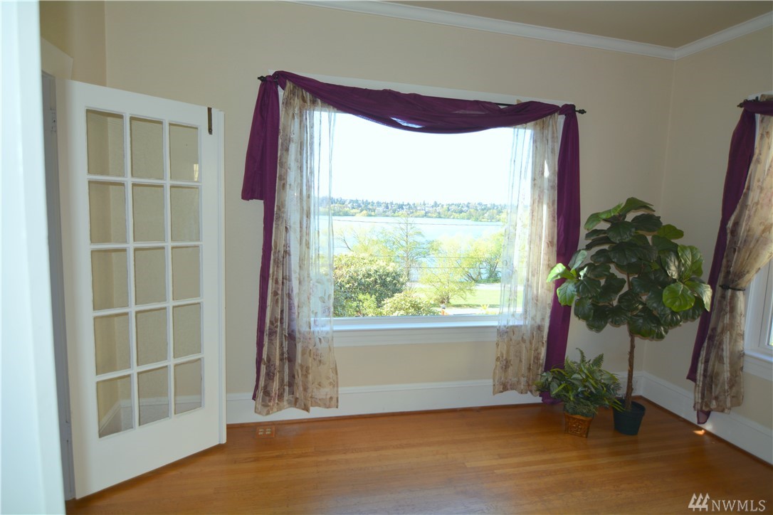 Take in the commanding lake views from the covered front porch & living room or watch sunsets from master bedroom w/ its own deck. The views & lakefront activities will keep you drawn to the front of this classic colonial home. Entry foyer opens to great entertainment space on main floor w/ formal dining room. Upper level bedrooms are light, bright & generously sized. Upper bath boasts large soaking tub & multi head shower. Basement has many possibilities w/ separate entries, kitchen, bath, & living space. Just cross the street immerse yourself in activities on & off the lakefront park. Running, biking, kayak, SUP & swim from your front door! Walk to the many eateries, pubs & local amenities. If you want a Greenlake, lifestyle, this is it!