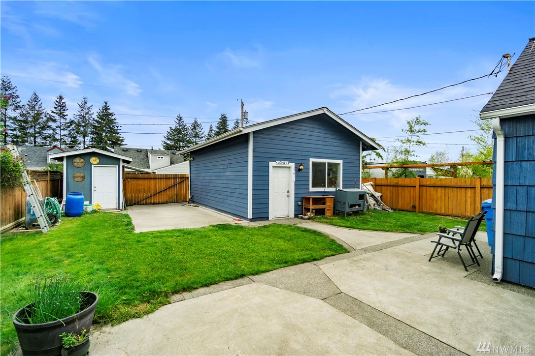 Welcome to this wonderfully maintained home in downtown Puyallup. At entry, you are greeted by the bright/open living room with a large east-facing picture window. The large dining room leads you into the kitchen that is wrapped with counter space and large enough for multiple chefs to work in at the same time. Downstairs you'll find the master bedroom and the full bath. Head upstairs to the additional 2 bedrooms that span the entire home. Head out back to enjoy your patio with western exposure, fully fenced to keep everyone and everything secured. A large detached garage with ample storage rounds out this perfect starter home. Walking distance to the WA State Fair, shops, diners and mins to hwys and malls. Welcome Home!