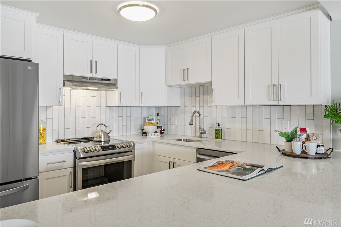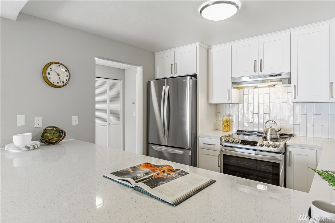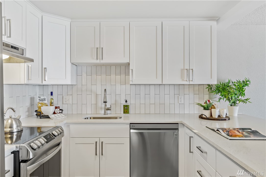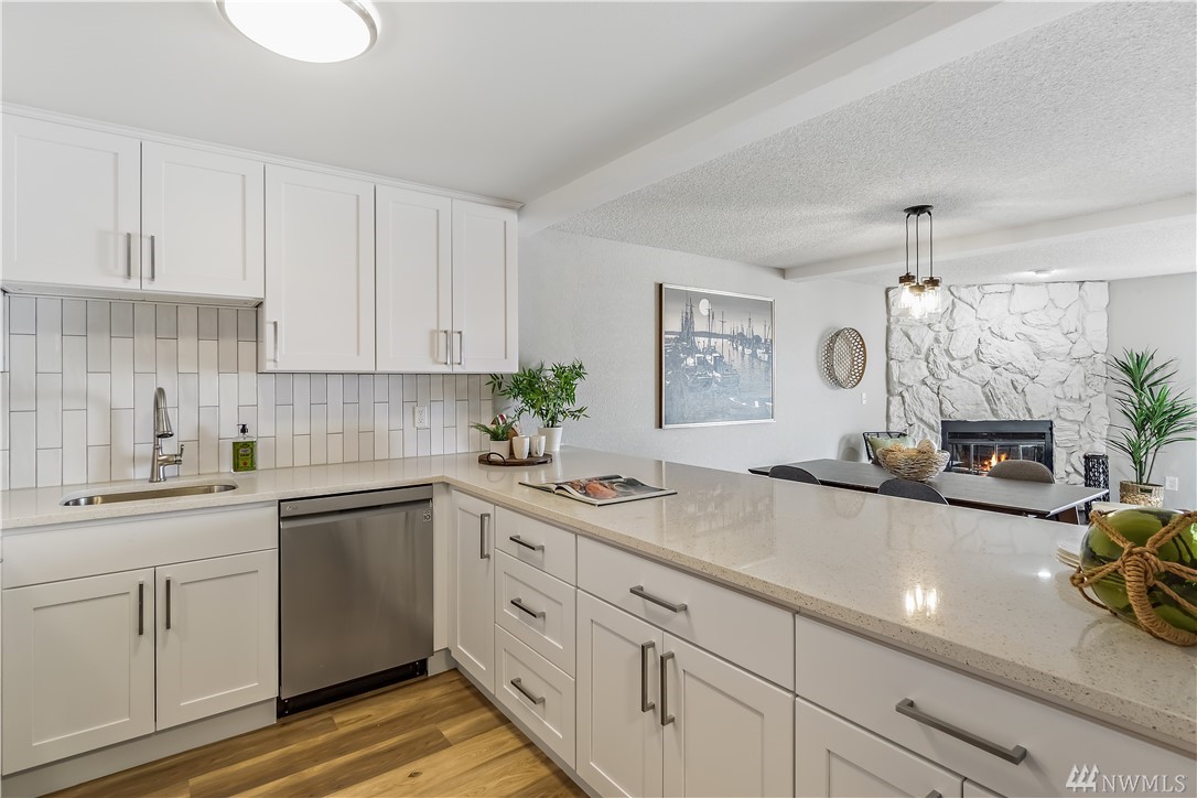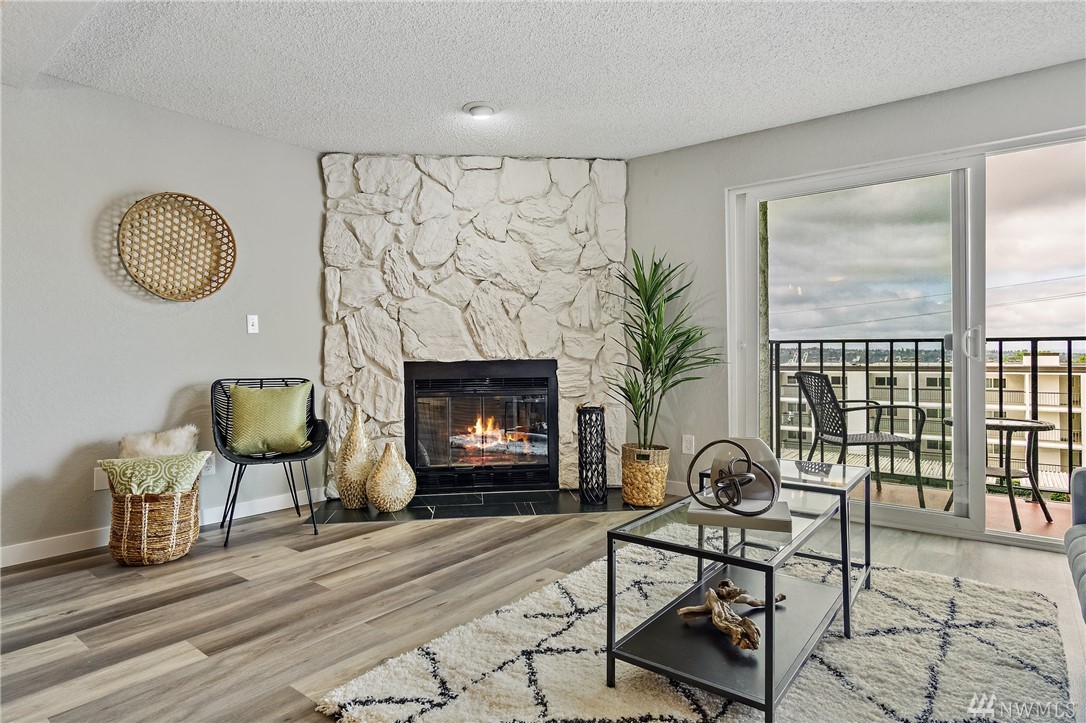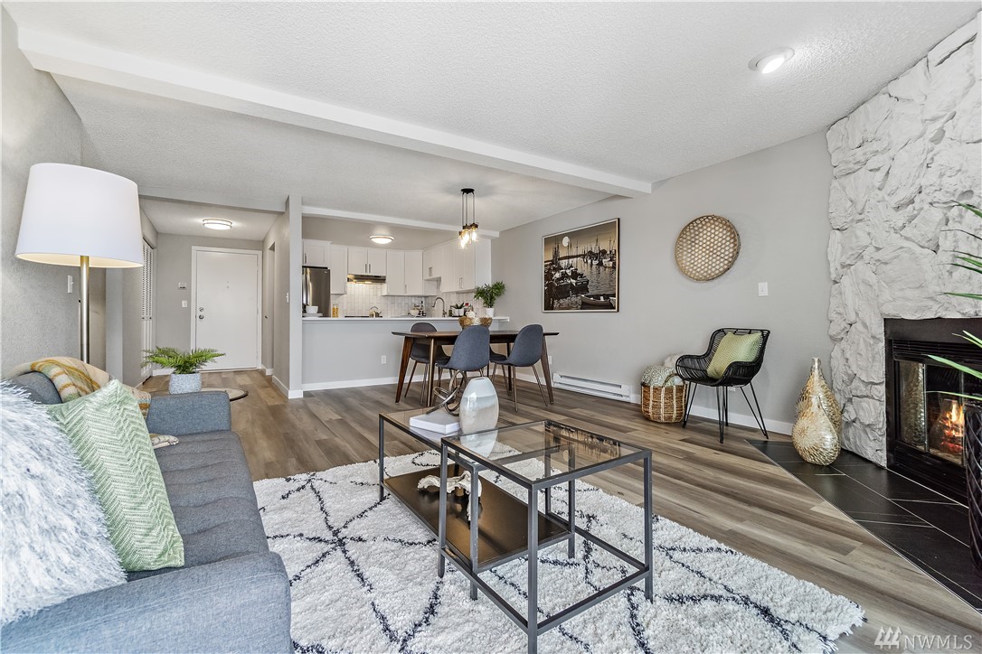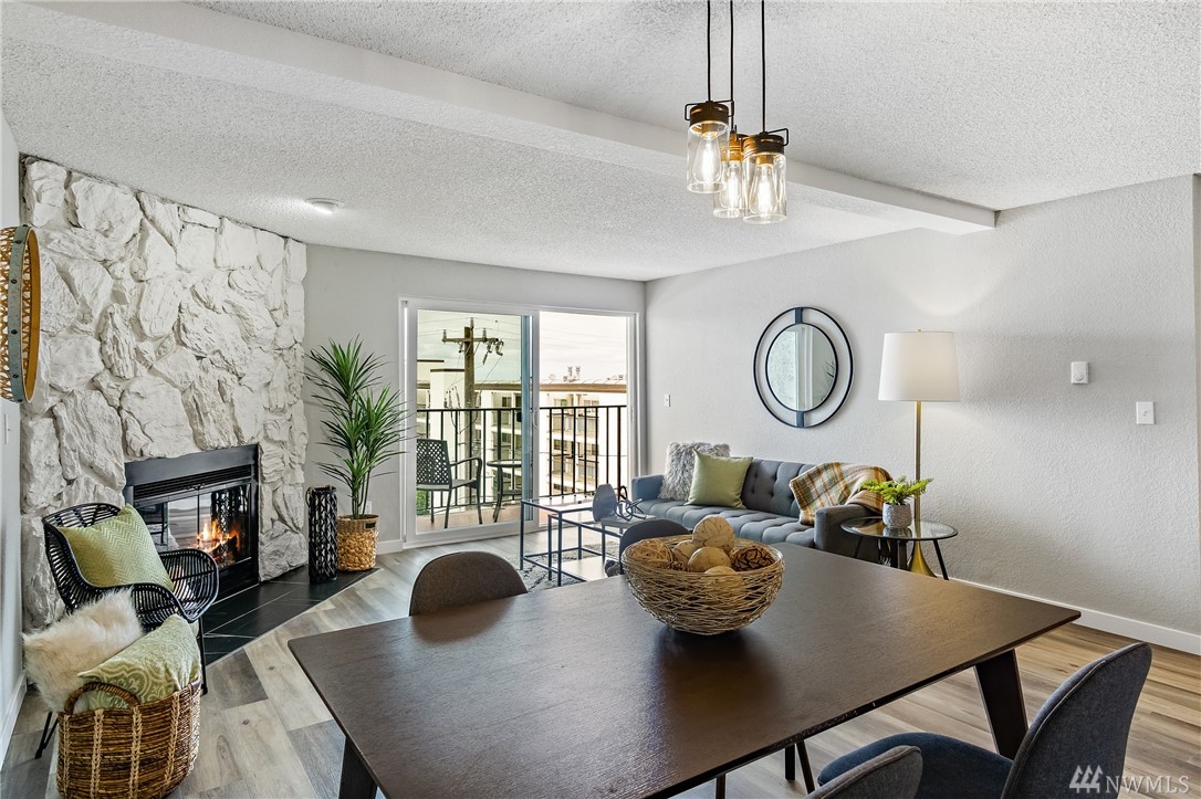 FULLY updated 2 bed/1.75 bath condo in desirable N Beacon Hill w/ city, sound & mountain views! Quiet community & great location near Downtown, I-90/I-5 access, SoDo, bus lines, schools, parks, stadiums, upcoming Beacon Hill LR Station! Bright, Kitchen w/ beautiful modern touches: Quartz countertops, subway tiled backsplash & brand-new SS appliances. You will love the open Dining Room/ Great Room layout w/ stone, gas FP & slider to covered balcony that adjoins to Master Suite. Enjoy views from every room! Area for desk space & Utility w/ BRAND NEW appliances (on 4/23)! Secure lobby entrance, assigned parking in enclosed garage, designated storage & guest parking. Low HOA dues, pets ok w/ Board approval/NO Pending Assessments/NO RENTAL CAP!