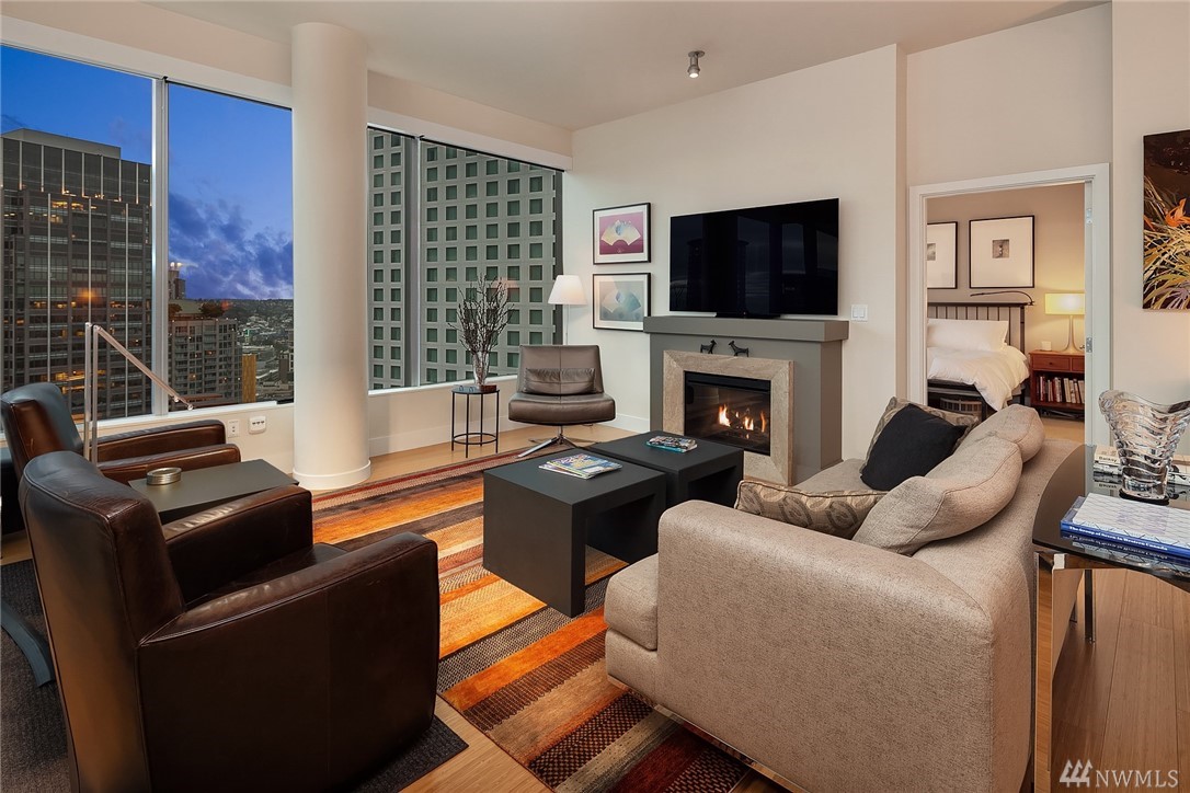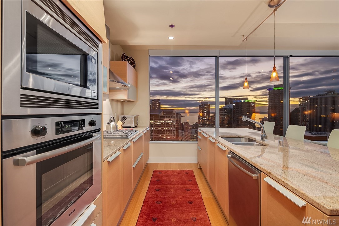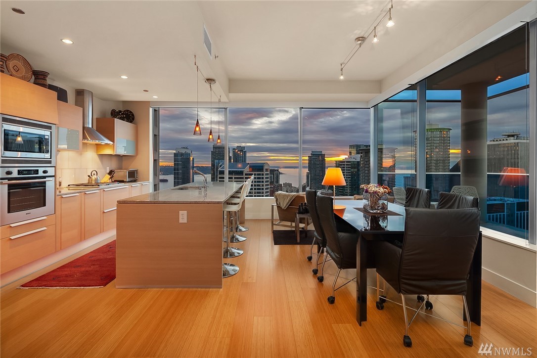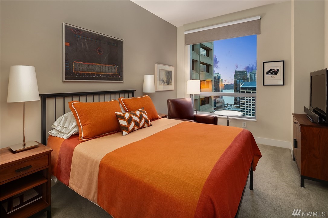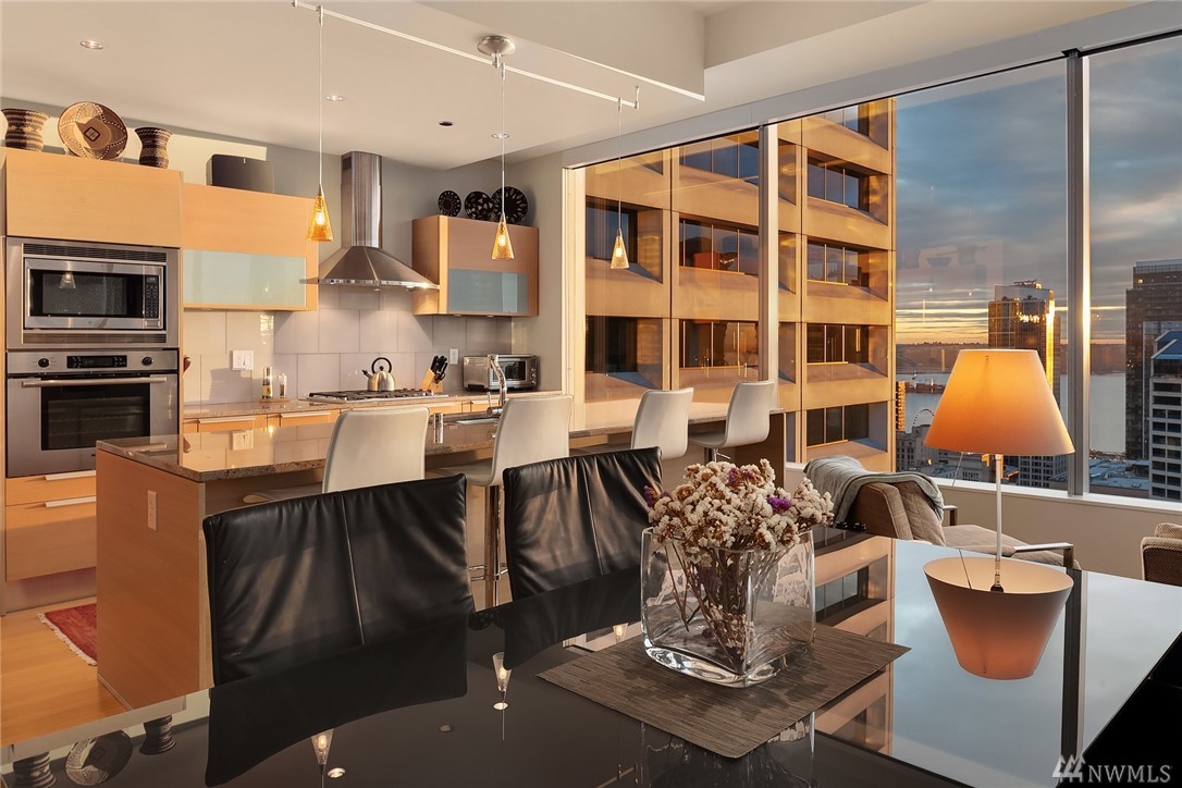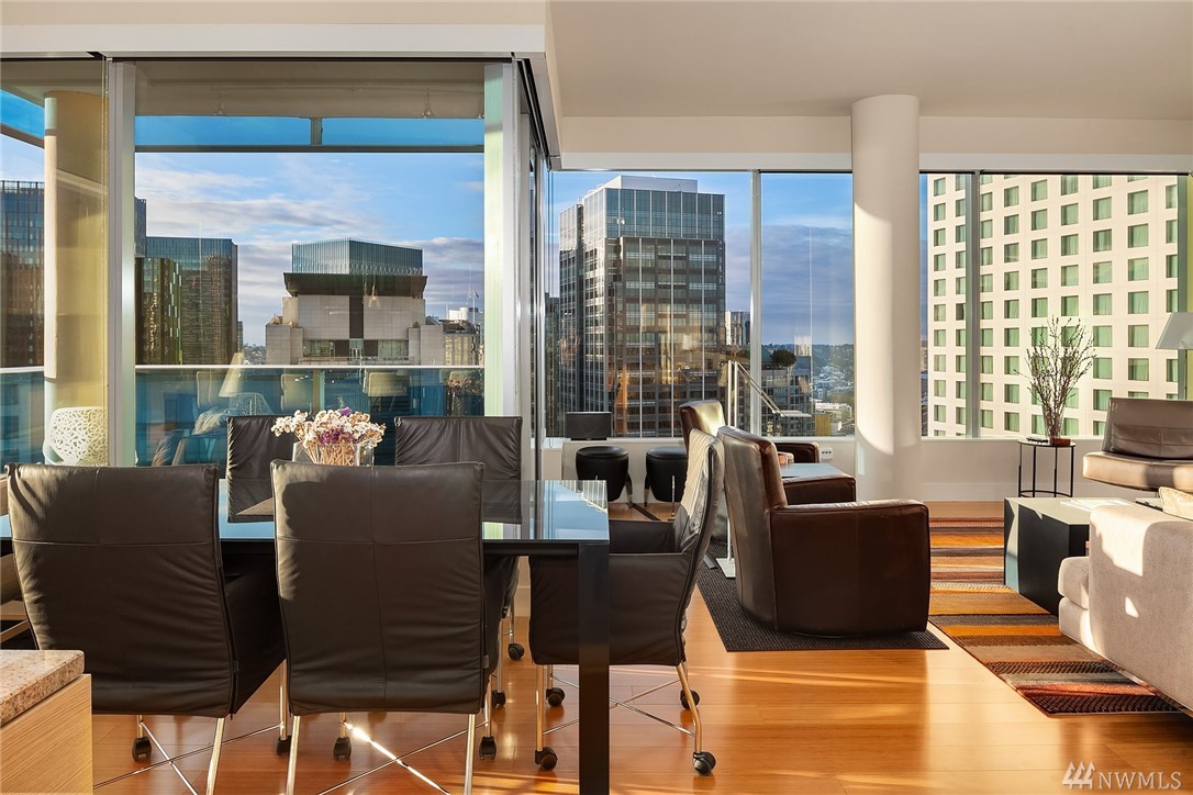 Sparkling City lights, Sound and mountain views from this rare NW corner home at Olive 8! 10' ceilings, Marble baths, Pedini kitchen. World-class hotel amenities: 24-hour concierge, room service, gym, saline lap pool & spa. Residents-only club w/ BBQ terrace, dog run & grooming station, entertainment room & caterer's kitchen. Walk to shopping, theaters, restaurants, Amazon, Whole Foods. Easy access to I-5, light rail & SLU streetcar. EV charger. Experience the best that city life has to offer!