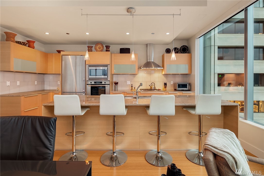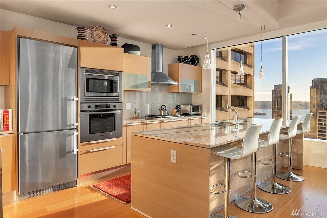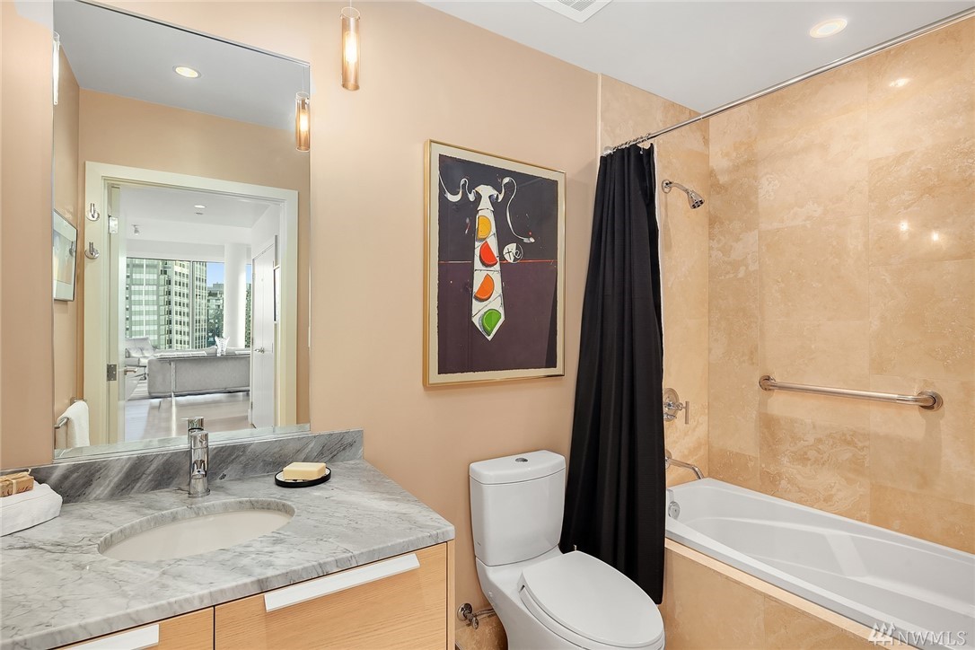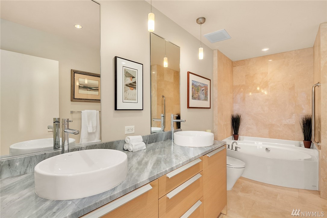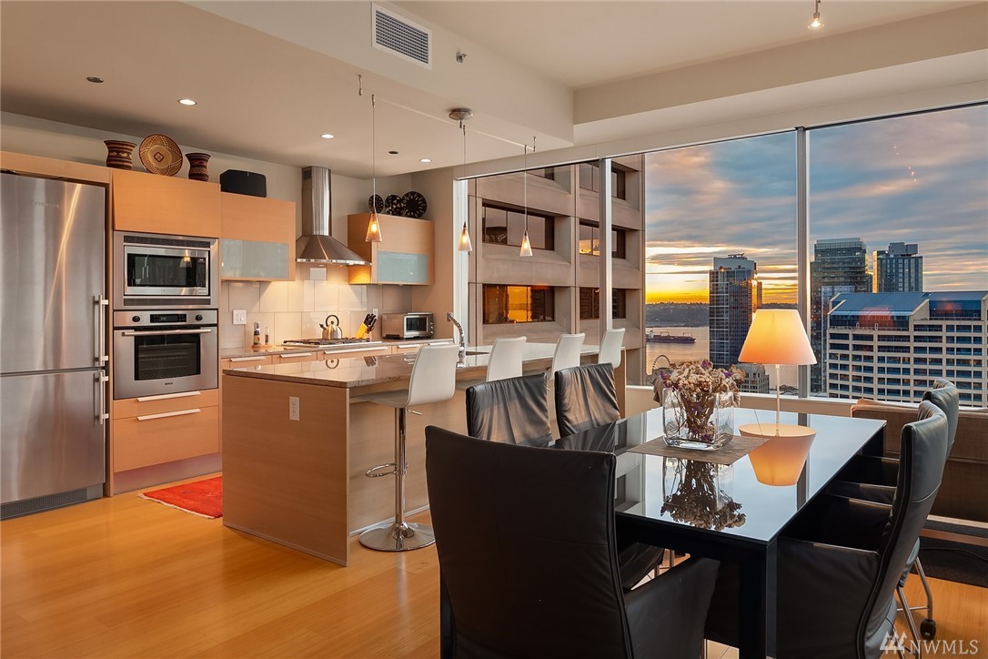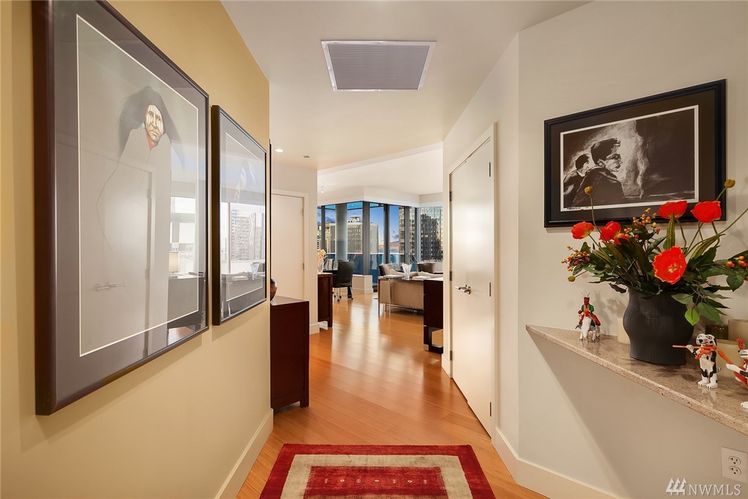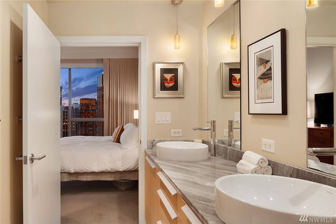 Sparkling City lights, Sound and mountain views from this rare NW corner home at Olive 8! 10' ceilings, Marble baths, Pedini kitchen. World-class hotel amenities: 24-hour concierge, room service, gym, saline lap pool & spa. Residents-only club w/ BBQ terrace, dog run & grooming station, entertainment room & caterer's kitchen. Walk to shopping, theaters, restaurants, Amazon, Whole Foods. Easy access to I-5, light rail & SLU streetcar. EV charger. Experience the best that city life has to offer!