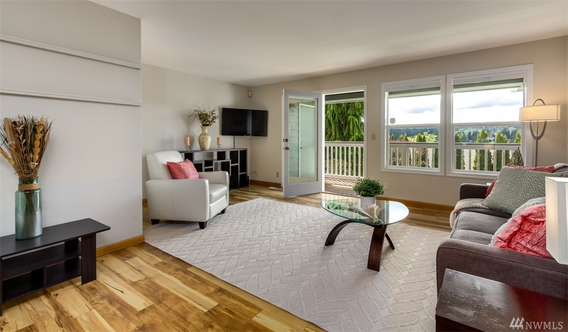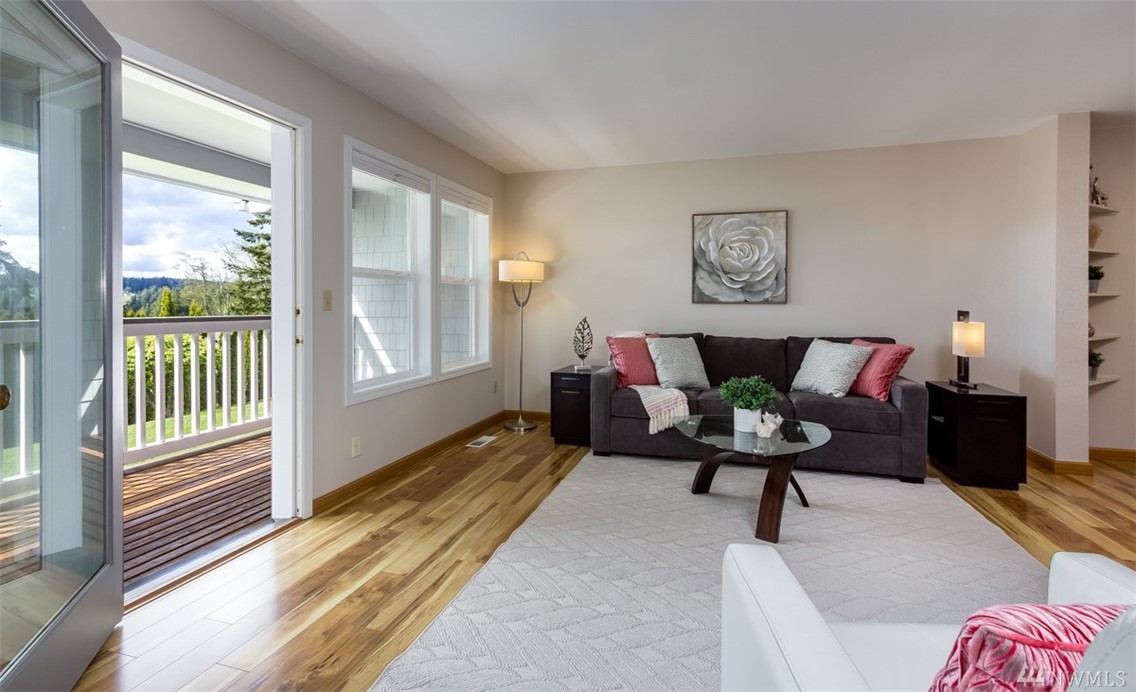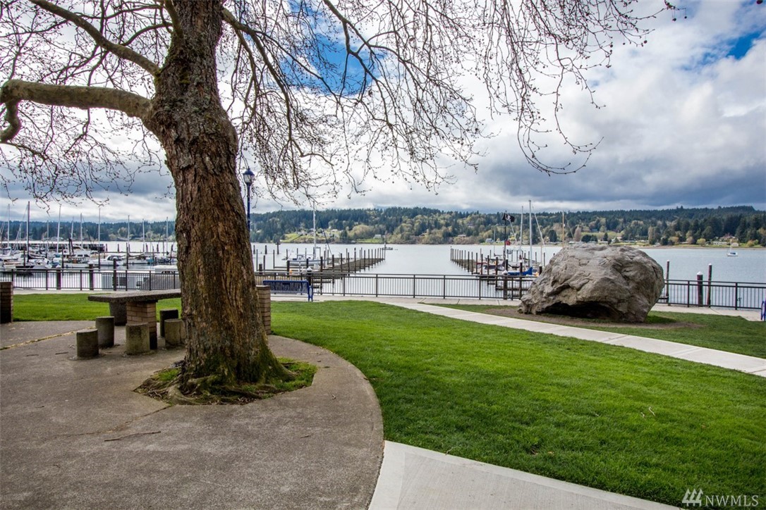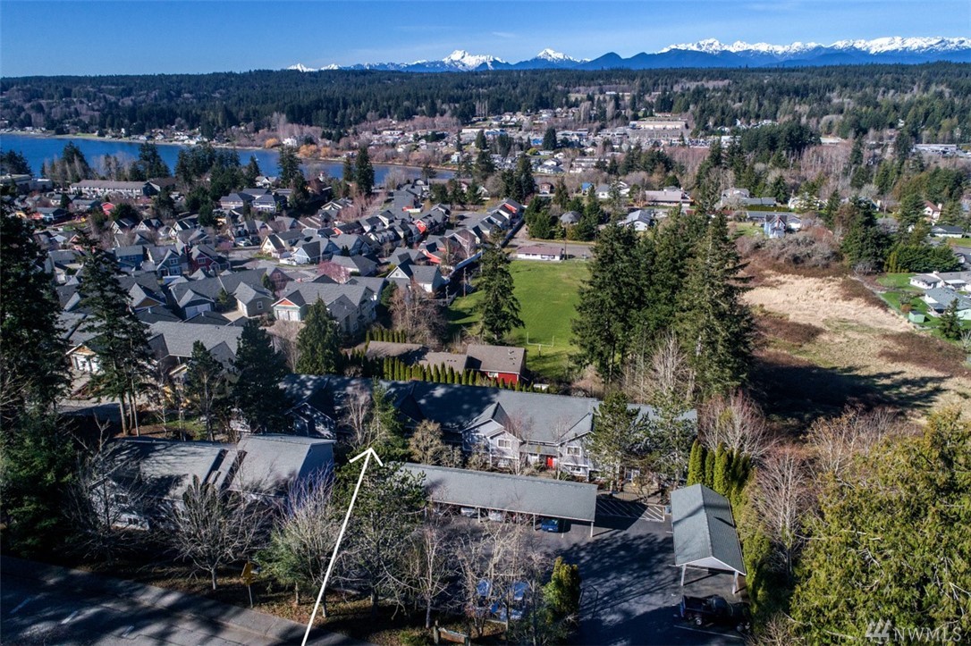 The majestic view through the large front glass doors will have you from the minute you enter. Walk out on your balcony to enjoy the privacy of the backyard and mountain view. This beautifully maintained complex and condo offers two bedroom both with en-suites and California closets, on upper level with the laundry. On the main floor enjoy "open concept living" with your kitchen, opening to dining, open to living room out to your beautiful deck. The complex just put on a new roof (2 years old), and painted 2019, with "Nantucket colors", owners added new Heat pump with A/C . Enjoy walking it to downtown, or along the beautiful waterfront park, don't miss Poulsbo's famous bakery.