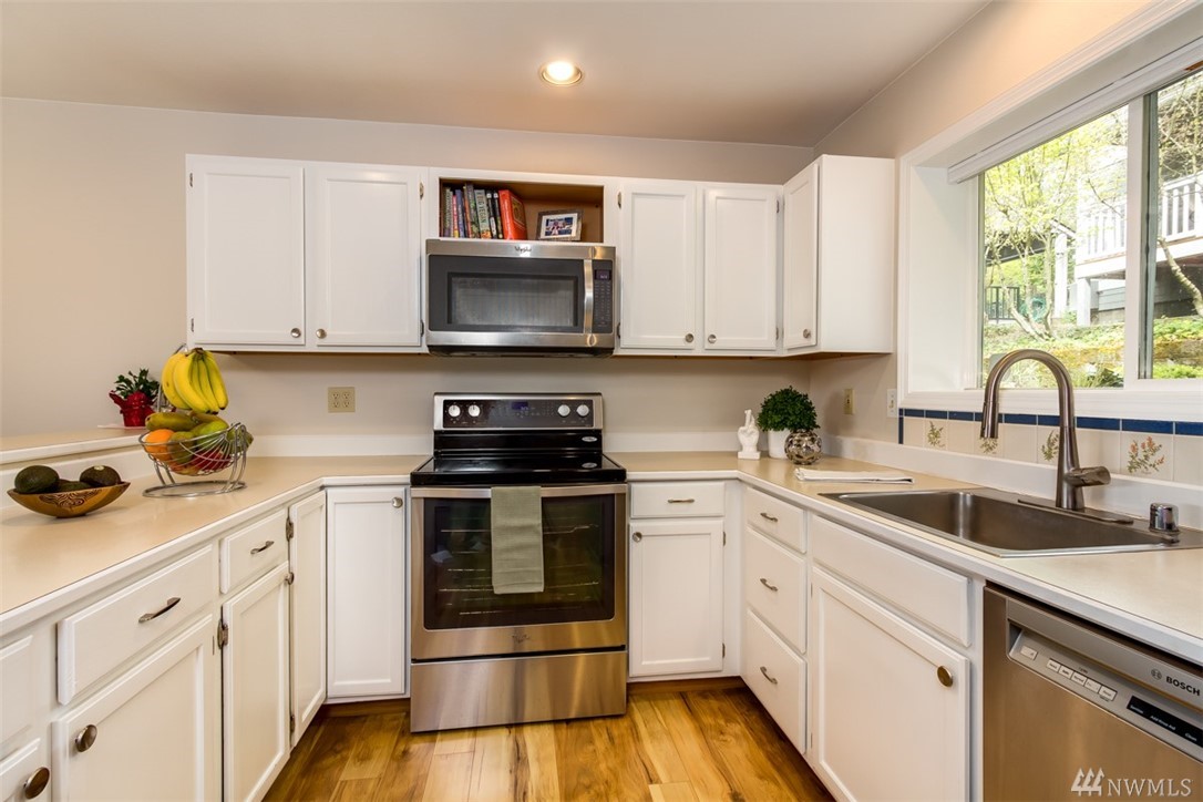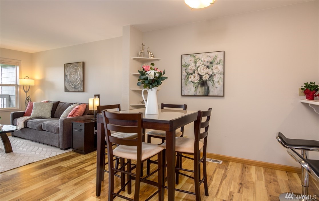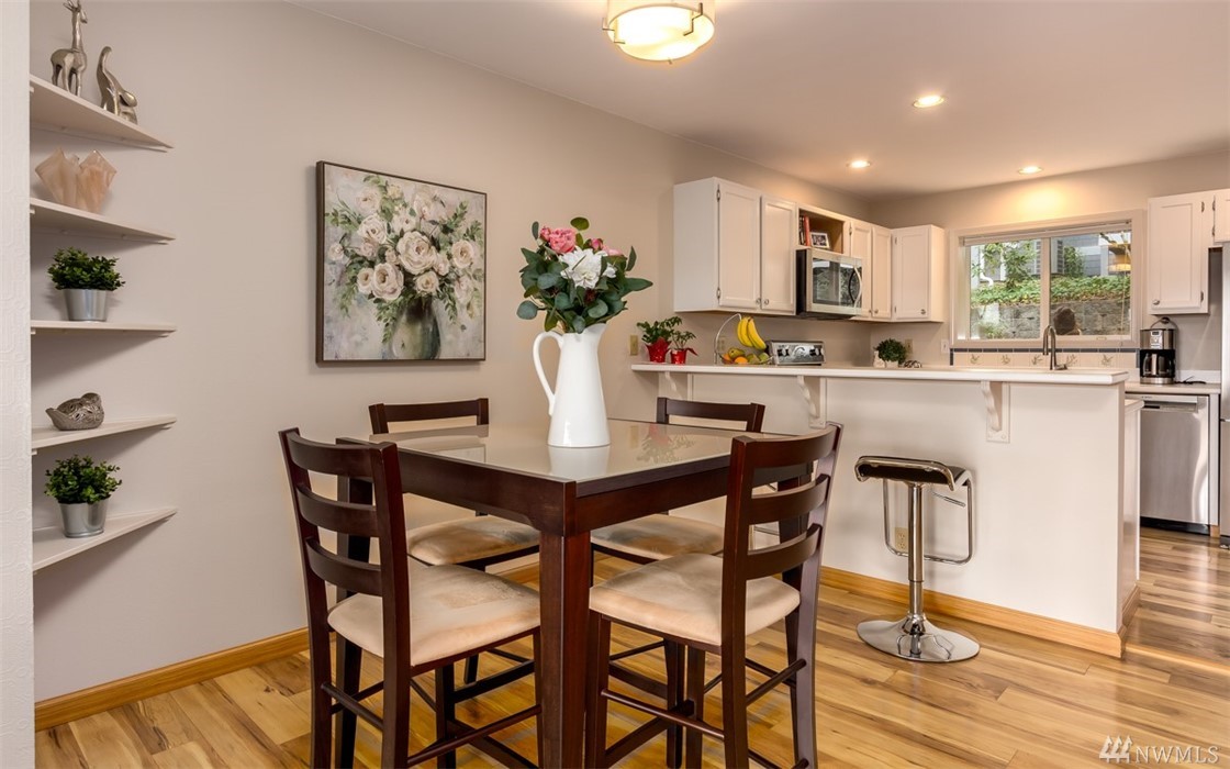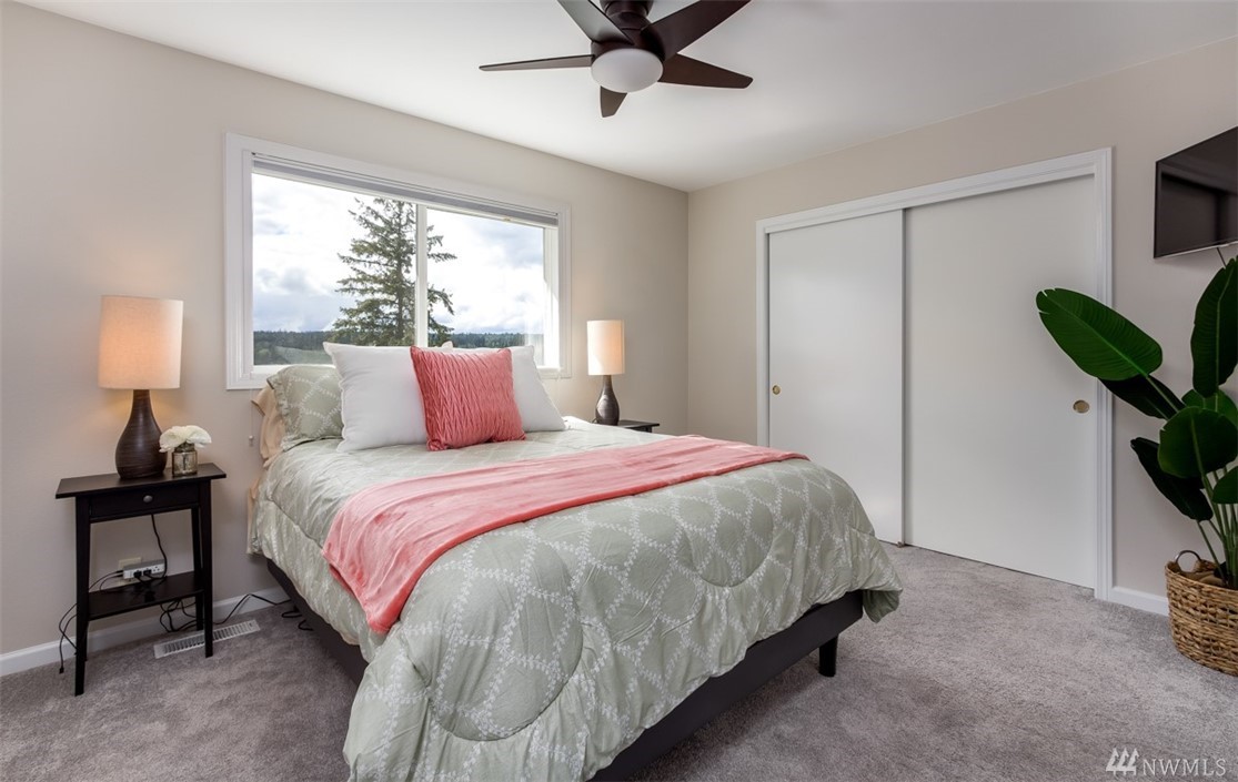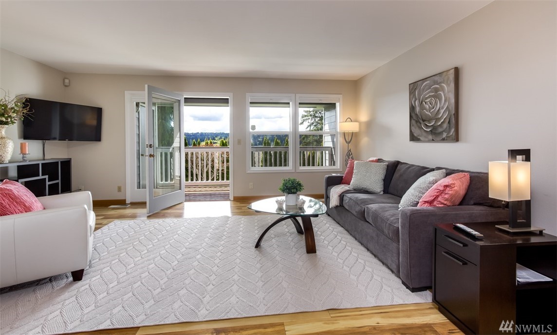The majestic view through the large front glass doors will have you from the minute you enter. Walk out on your balcony to enjoy the privacy of the backyard and mountain view. This beautifully maintained complex and condo offers two bedroom both with en-suites and California closets, on upper level with the laundry. On the main floor enjoy "open concept living" with your kitchen, opening to dining, open to living room out to your beautiful deck. The complex just put on a new roof (2 years old), and painted 2019, with "Nantucket colors", owners added new Heat pump with A/C . Enjoy walking it to downtown, or along the beautiful waterfront park, don't miss Poulsbo's famous bakery.