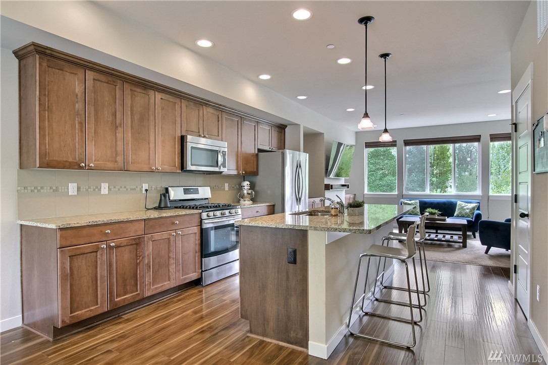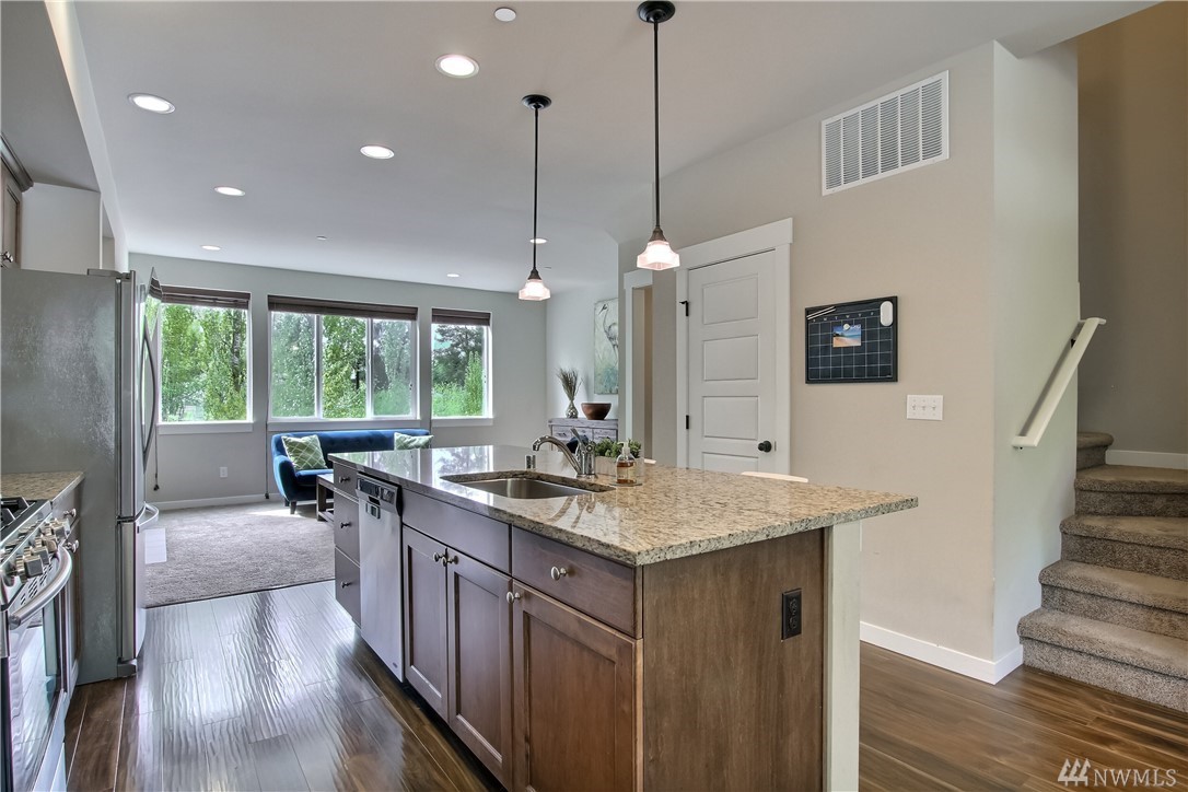 Embrace the open spaces on the main level of this easy-commute townhome. Imagine sharing conversation with friends across your granite-topped kitchen island while preparing a meal on your enviable gas range. Then meander to the living room, with its oversized windows that invite beautiful sunsets and territorial views, and enjoy a relaxing moment basking in the warmth of the gas fireplace. Sure, your commute was a breeze. But then you capped it off by easily parking in your huge garage with extra space for a work area. Your new home is tucked away just enough to disconnect from the busyness of life. You'll appreciate summer drives to places like Meadowdale Beach Park only a few minutes away. Come see why this home is where it all connects.