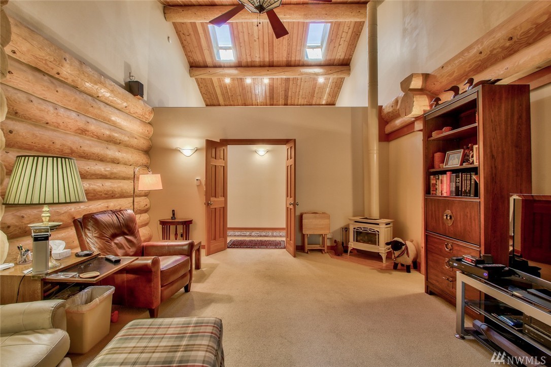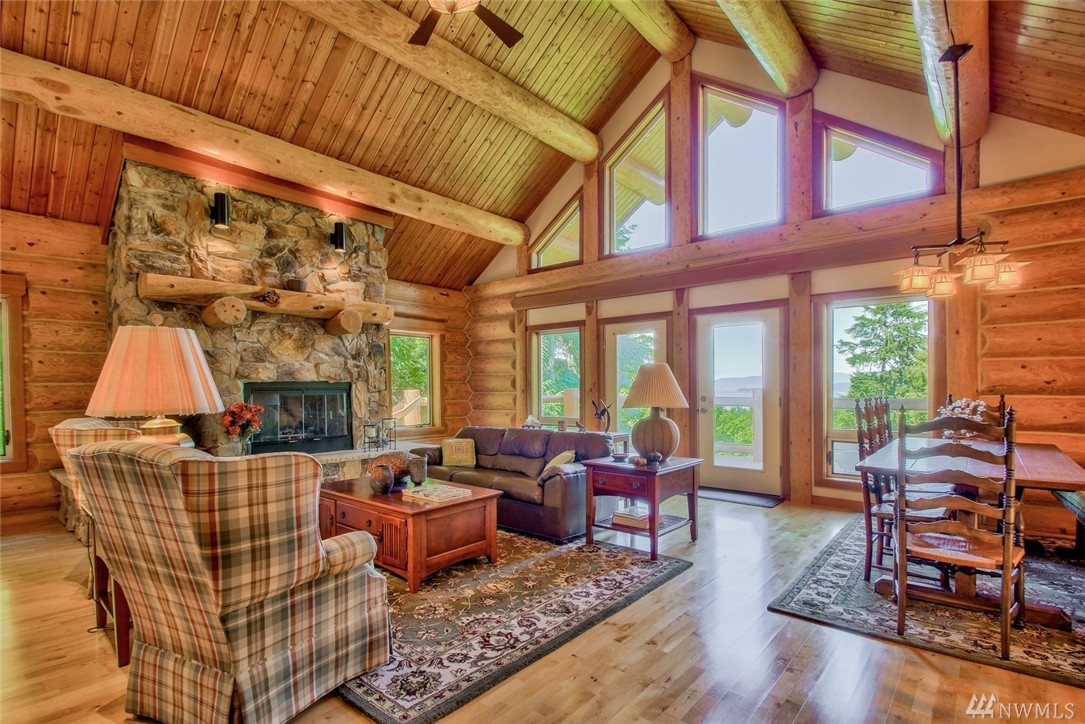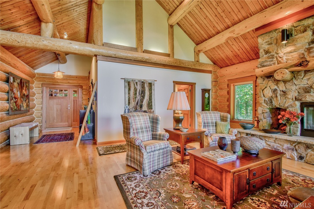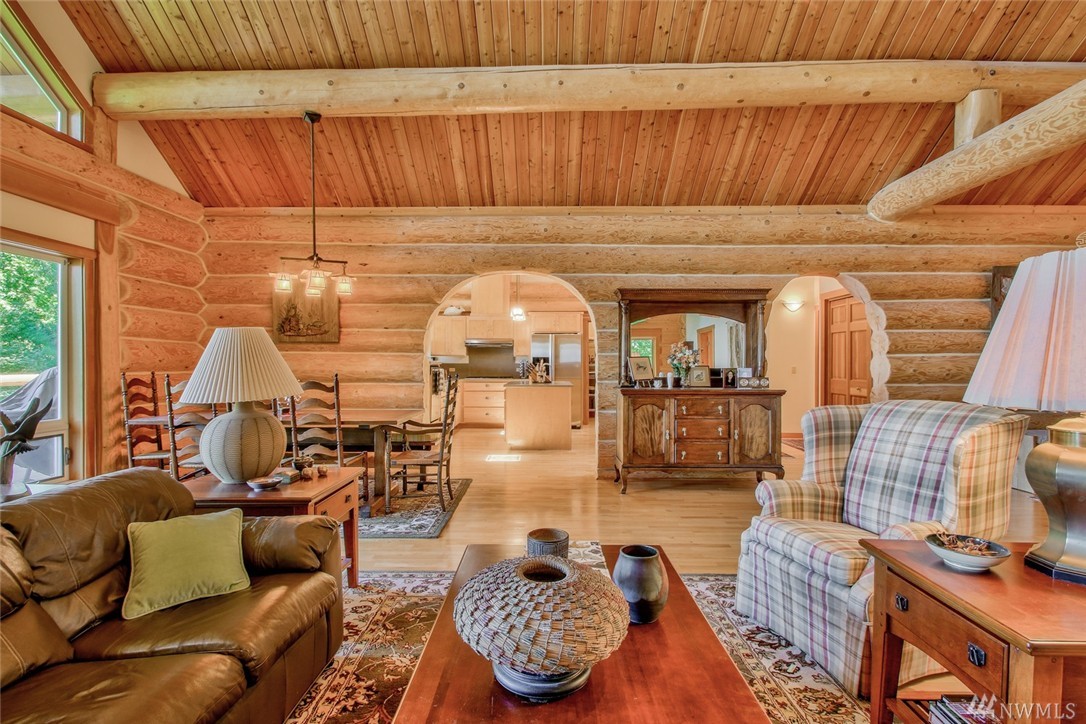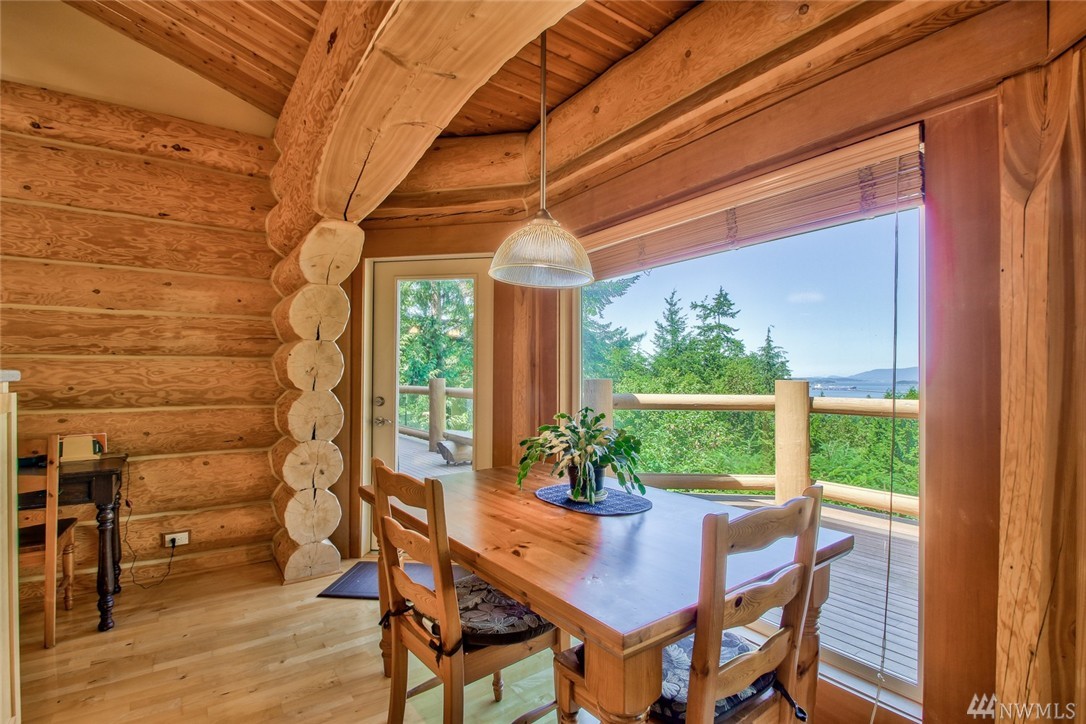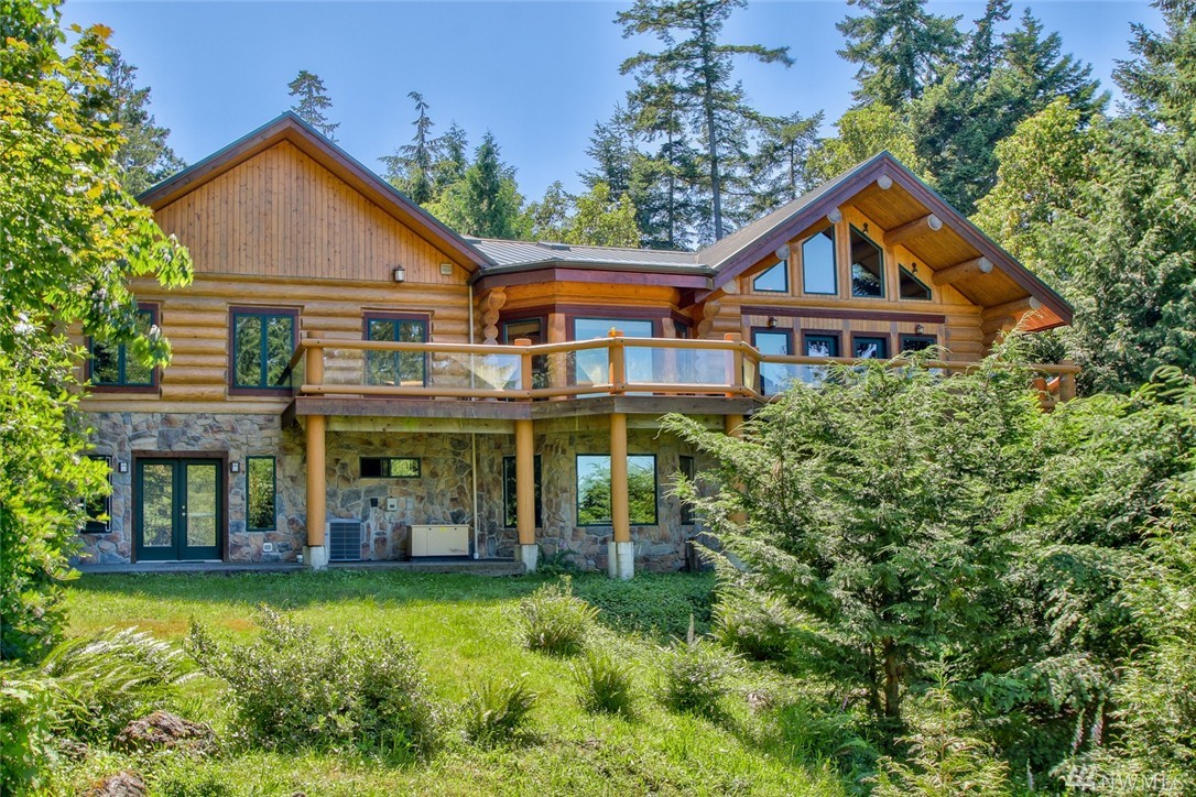Beautiful, peaceful setting is what you find when you enter this hand-crafted, custom built log home, nestled in the woods; gorgeous view of Fidalgo Bay. Follow the path to two spring fed ponds; relax & listen to the birds sing. 4 bdrm, 3 bath, solid wood doors, intercom/radio throughout & well-appointed kitchen. Vaulted ceilings w/view to the water. View easement is recorded. Extra shop area (10x19) in garage. Beautiful property w/ a security gate. 16kw generator w/auto switch.