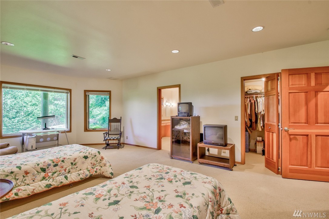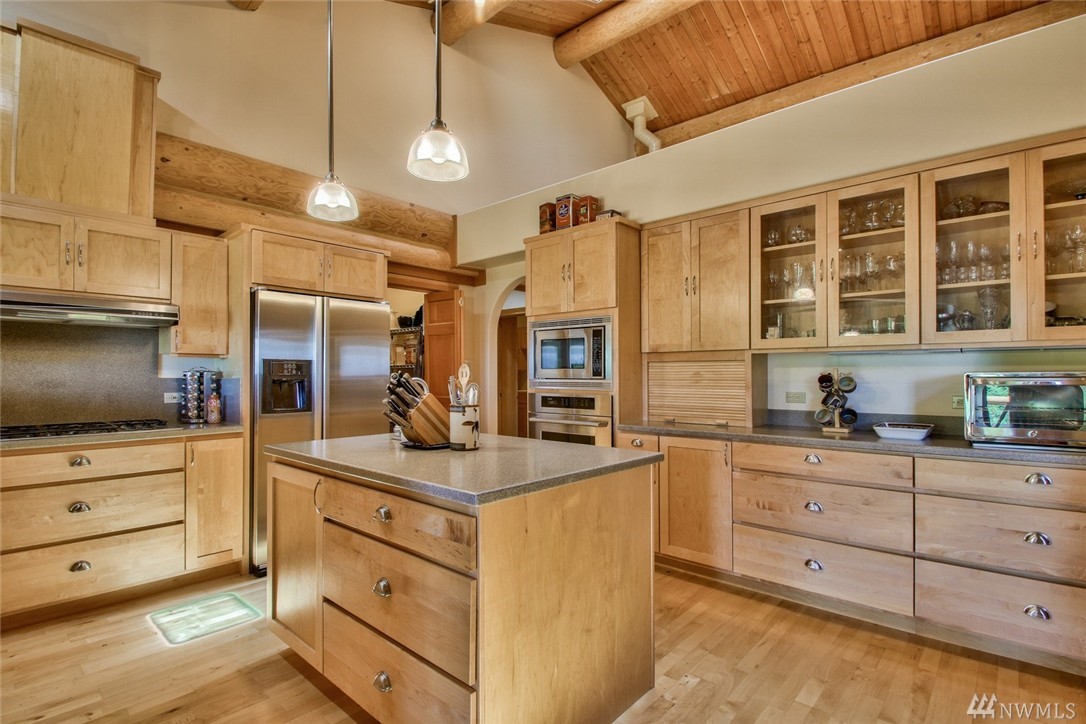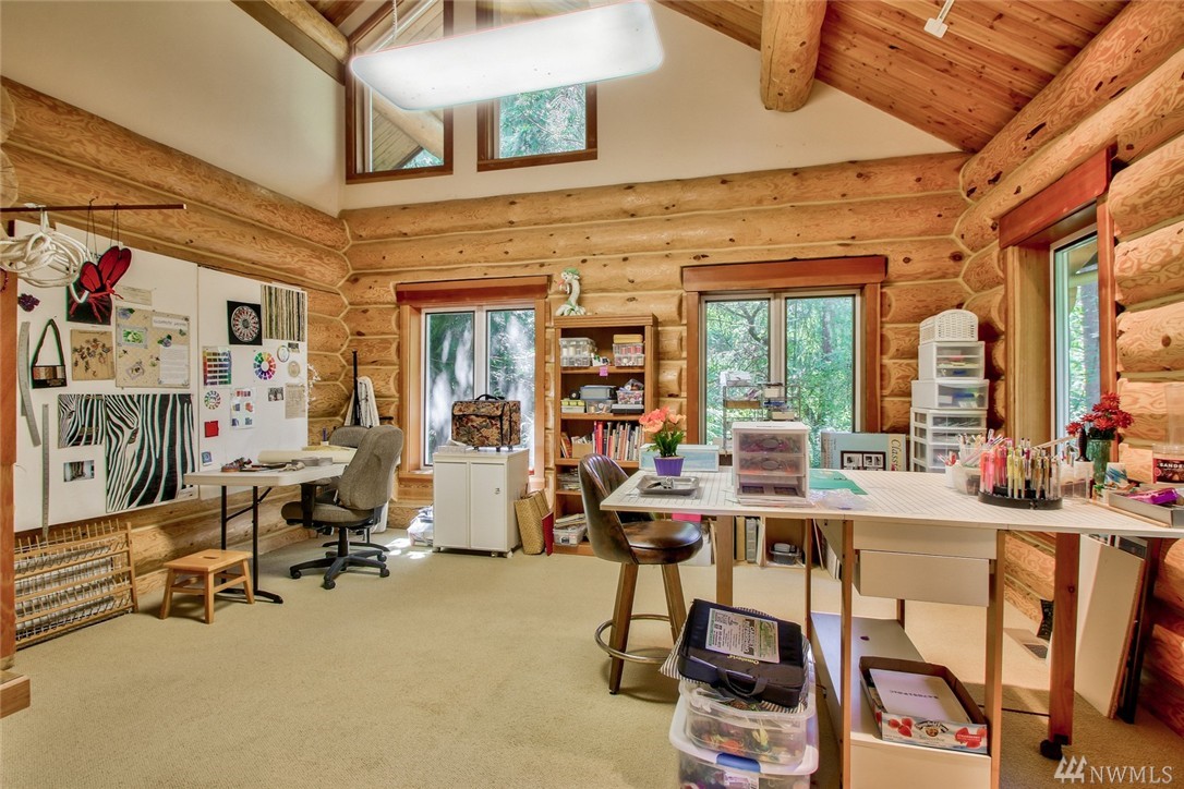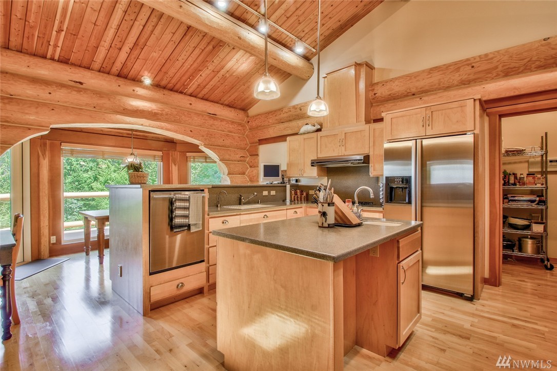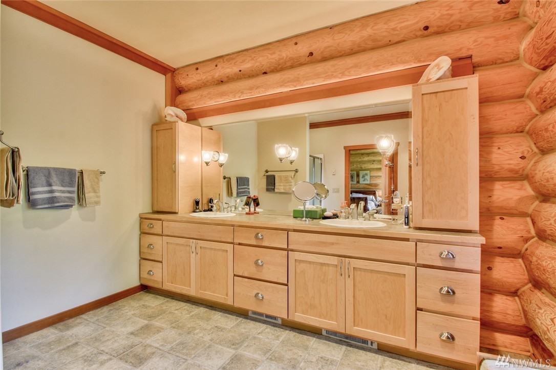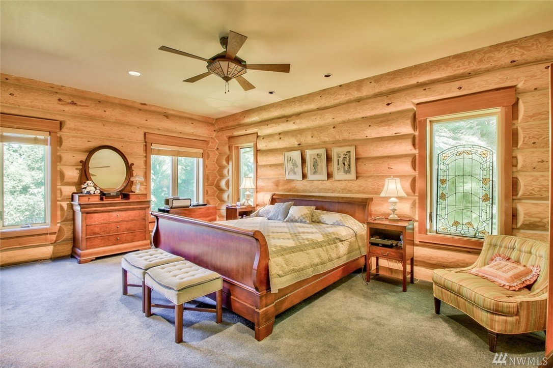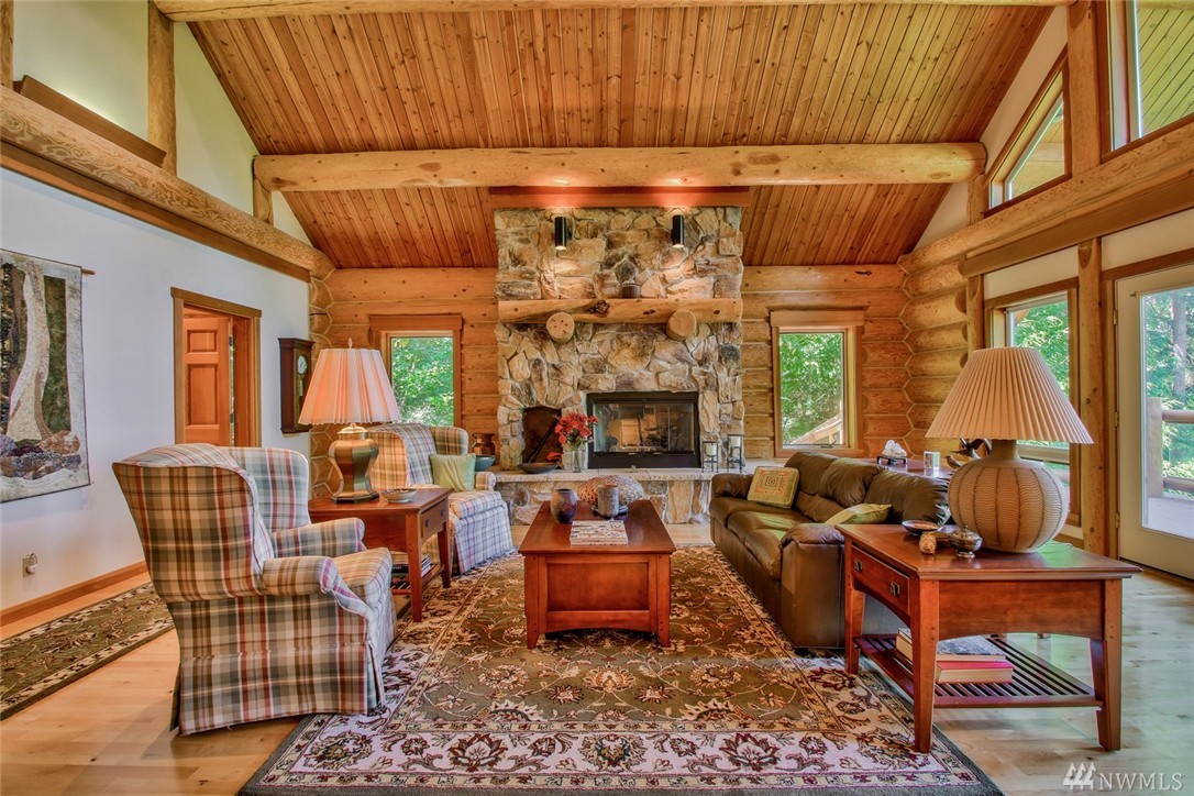 Beautiful, peaceful setting is what you find when you enter this hand-crafted, custom built log home, nestled in the woods; gorgeous view of Fidalgo Bay. Follow the path to two spring fed ponds; relax & listen to the birds sing. 4 bdrm, 3 bath, solid wood doors, intercom/radio throughout & well-appointed kitchen. Vaulted ceilings w/view to the water. View easement is recorded. Extra shop area (10x19) in garage. Beautiful property w/ a security gate. 16kw generator w/auto switch.