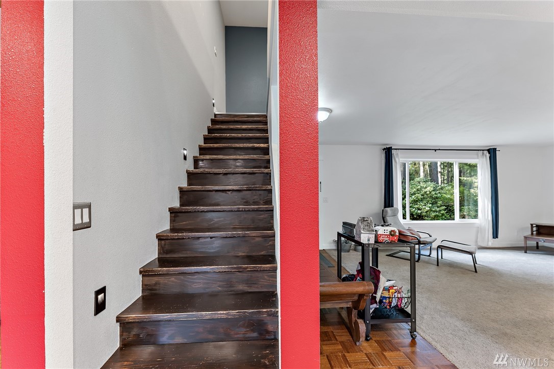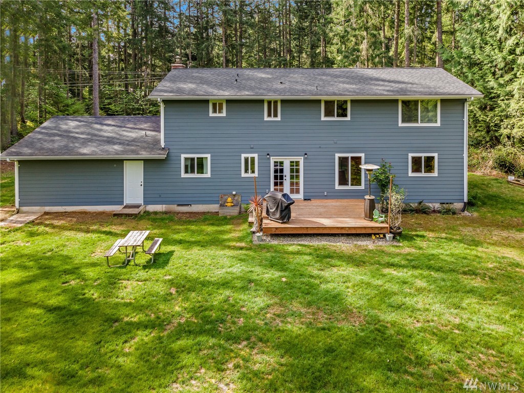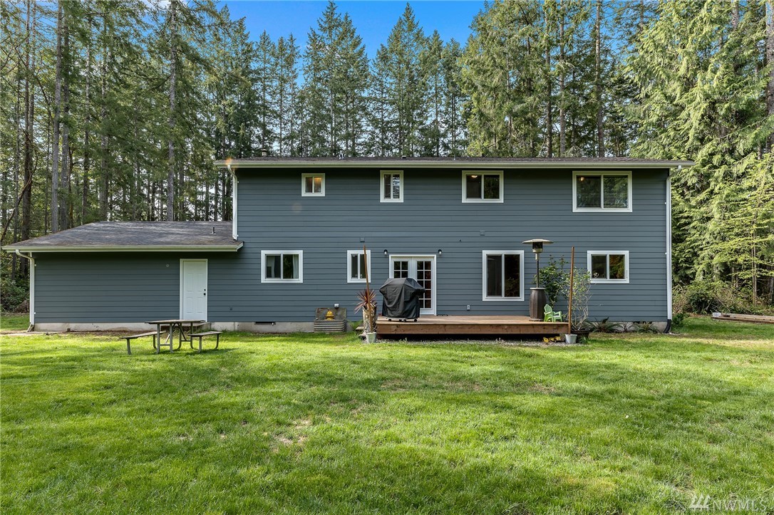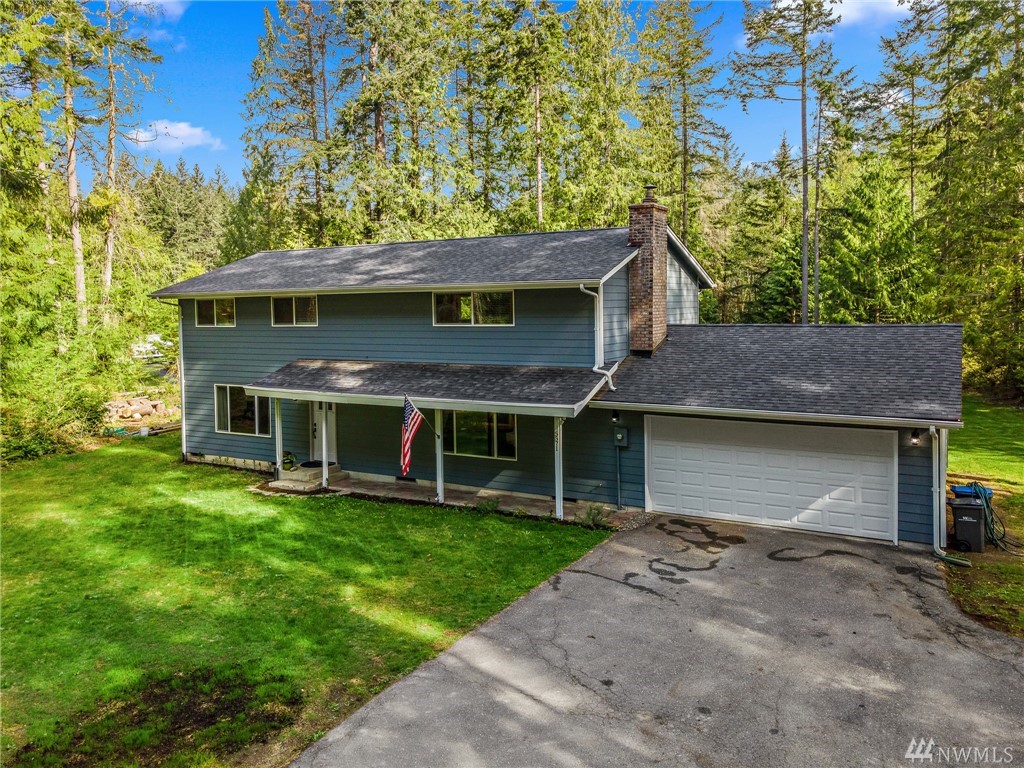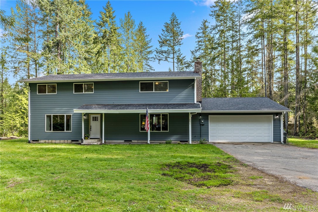 Beautiful 2-story, 2400 sqft home on 2.4 acres. Featuring remodeled kitchen, spacious master suite with large walk in closet and private bath. All bedrooms and laundry located upstairs with additional rec room and full bath. The main floor offers a large living room with hardwood floors, mud room off the garage entry, open concept family room and kitchen with a dining room that opens to the deck in the private, spacious back yard. This home has plenty of storage. All kitchen appliances stay. Newer vinyl windows, siding, exterior paint, ductless mini split heating units, water pump and roof. This home is only five minutes to Gig Harbor North shopping and 10 minutes to downtown. Welcome home!