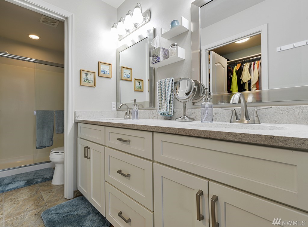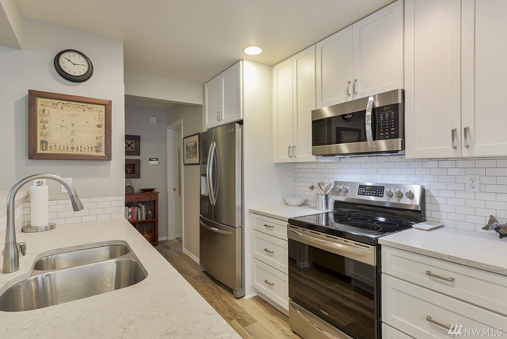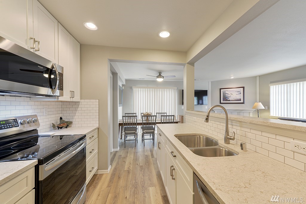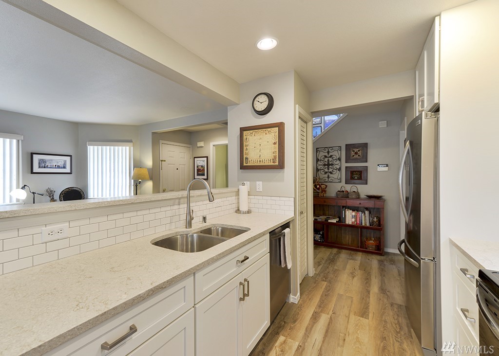 Spectacular rare find 3-bedroom Townhome w/a Master on the main & two-car garage! One of the largest homes in Newport Lane, in beautiful Browns Pt. Easy access to I-5/509, parks and trails, right next to Norpoint Center so you can stay fit! Stylishly Remodeled kitchen with honed quartz counters and new stainless appliances. Sweet! Bathrooms updated as well. Master Suite on both levels. You pick! Beautiful new luxury waterproof flooring on the main. Enjoy summer fun on your fenced patio w/lovely new landscape. End unit, light and bright in all rooms! Storage galore, you must see it for yourself! This is turnkey ready. Carefree home at last!