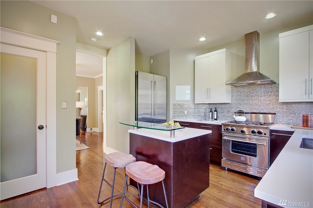 Classic craftsman on coveted top of Queen Anne, done to the nines from top to bottom. Serene & private yet bright & sunny, step inside to high ceilings, dramatic built-ins, rich moldings & hardwoods. The living & dining rooms flow to the stunning kitchen to the private backyard. The kitchen boasts high-end finishes, walk-in pantry & island. A daylight basement w/ separate entrance has a media room & guest bed/bath. Updated systems, tons of storage. 3 short blocks to everything QA has to offer!