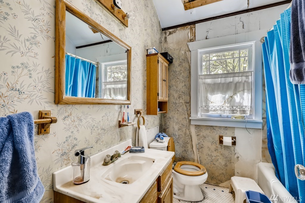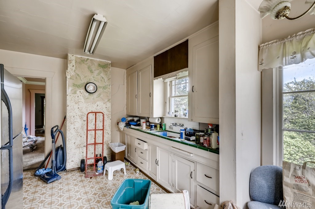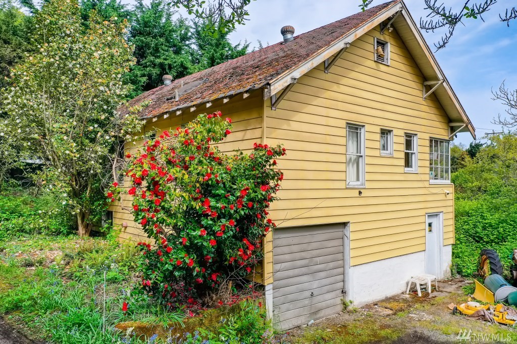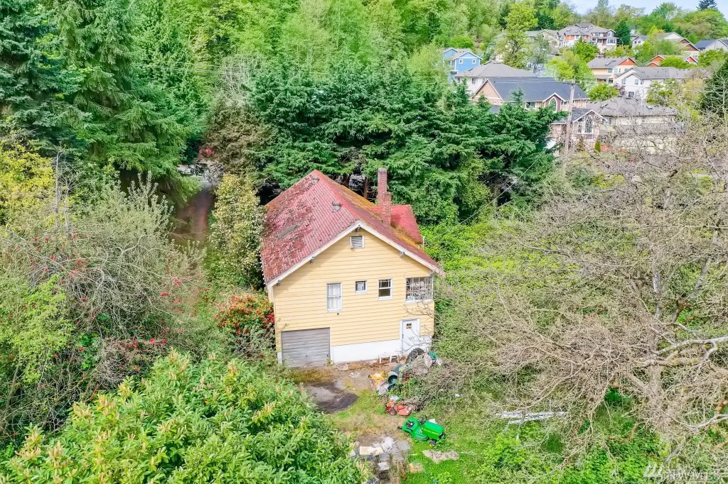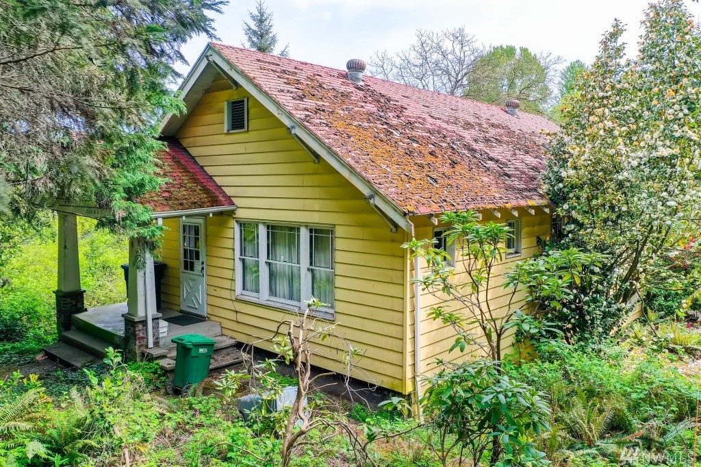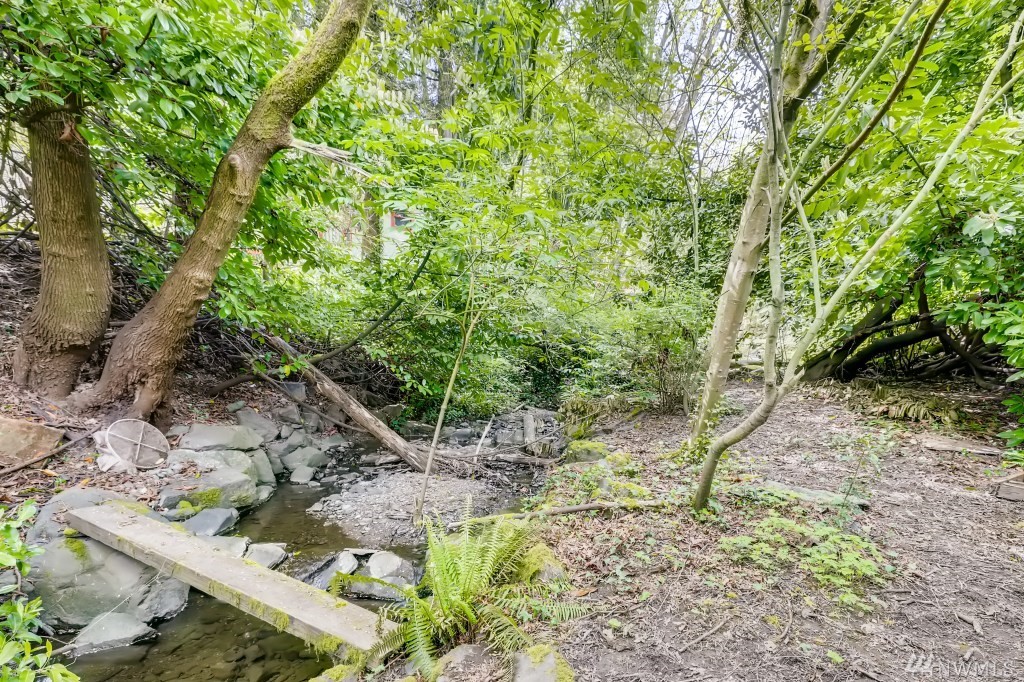 Watch the salmon run in the year 'round creek right out your back door. Tucked away on over 1.16 acre woodsy setting you'll find this 1925 old world charmer brimming w/original style, where your ideas and inspiration will bring this home back to life! Let your imagination run WILD: There's value-added potential to finish bsmnt, add deck from ktchn, add third flr, potential roof-top fourth flr or sub-divide/build two extra homes to the north or DADU for potential rental. Do your STUDIES, pick your plans and permits and get started. Enjoy the visiting wildlife and chickens are welcomed. Sold AS IS; BUYER TO VERIFY everything. Lots of history in this special home site, while keeping an eye on the exceptional location and vibrant future ahead.