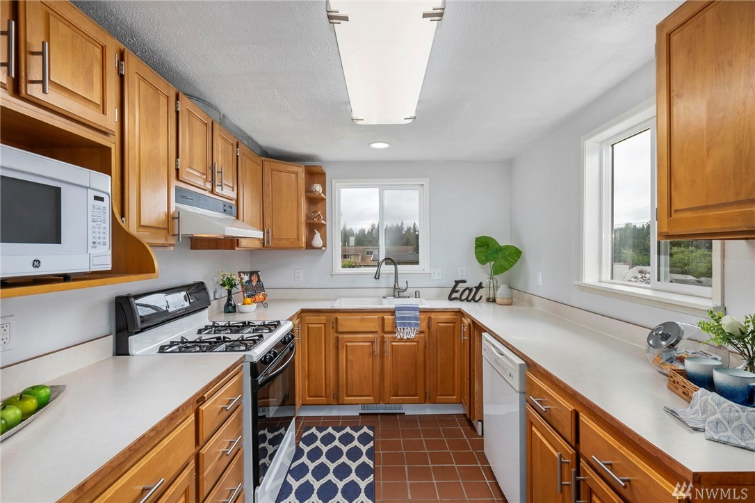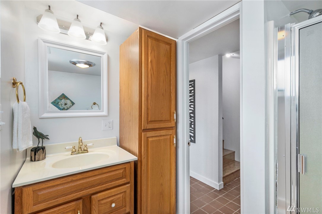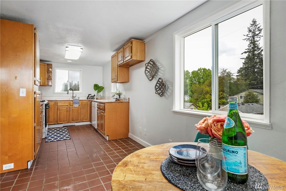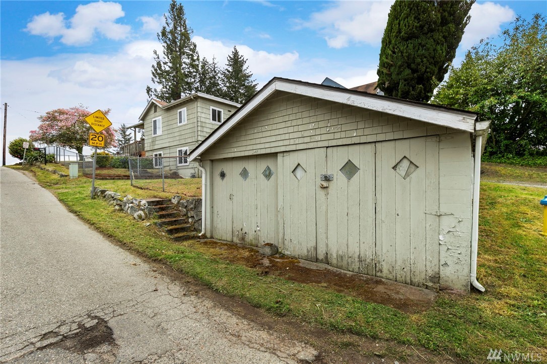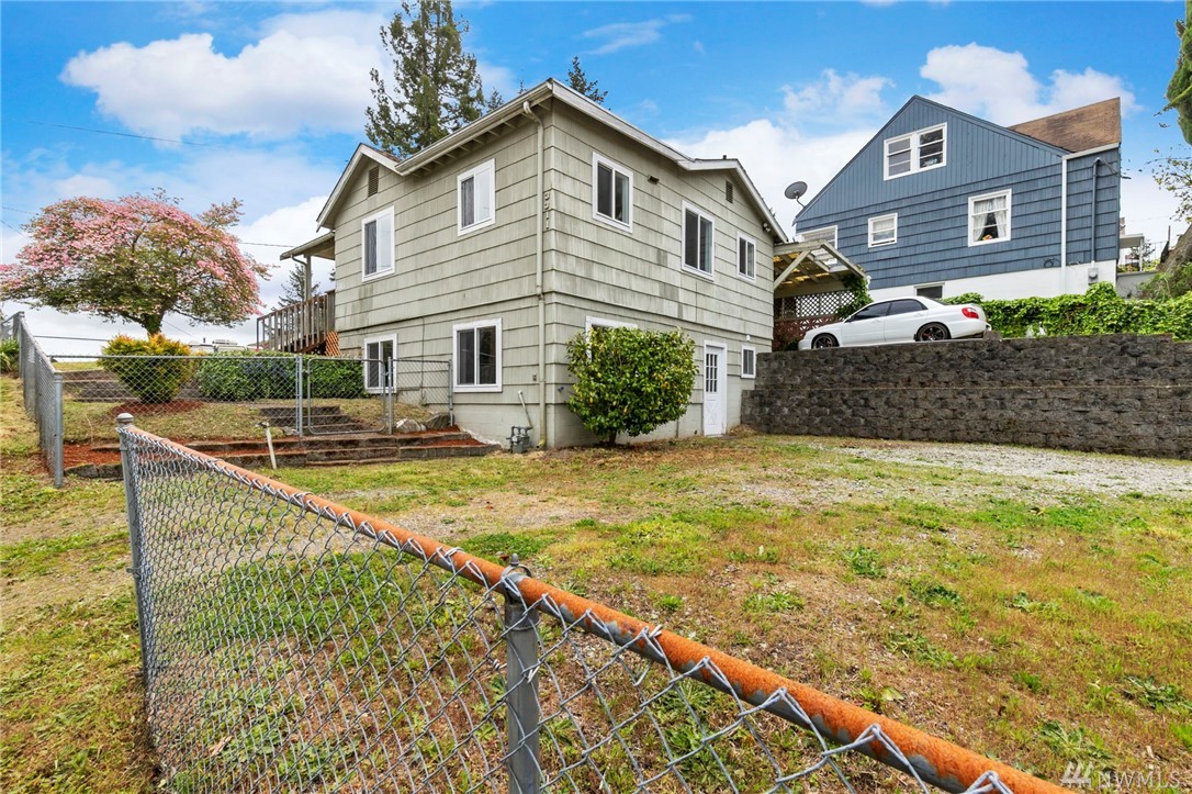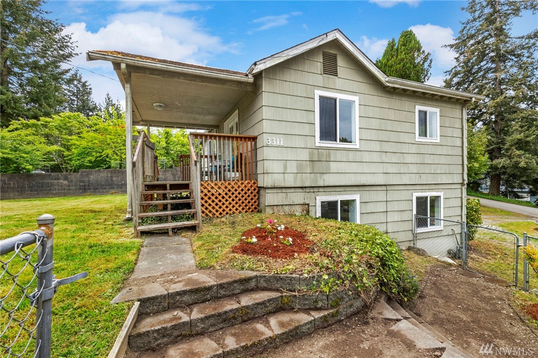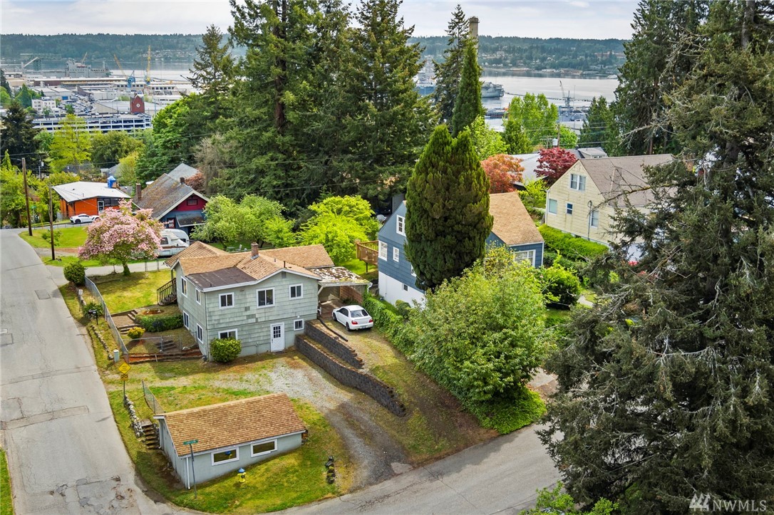 Wonderful location for this Bremerton home just a few blocks from the Navy Shipyard and Ferries with a partial Sound view. Enter through french doors to the spacious dining area with tile floors and Kitchen with tons of storage. Beautiful brick archway leading to the cozy living area, plus main floor bedroom and full bath. Downstairs master bedroom, 2 additional bedrooms and ¾ bath. Detached garage, Carport, RV parking and more. Spacious fenced yard with mature landscaping. Just minutes to shopping, highways and dining.