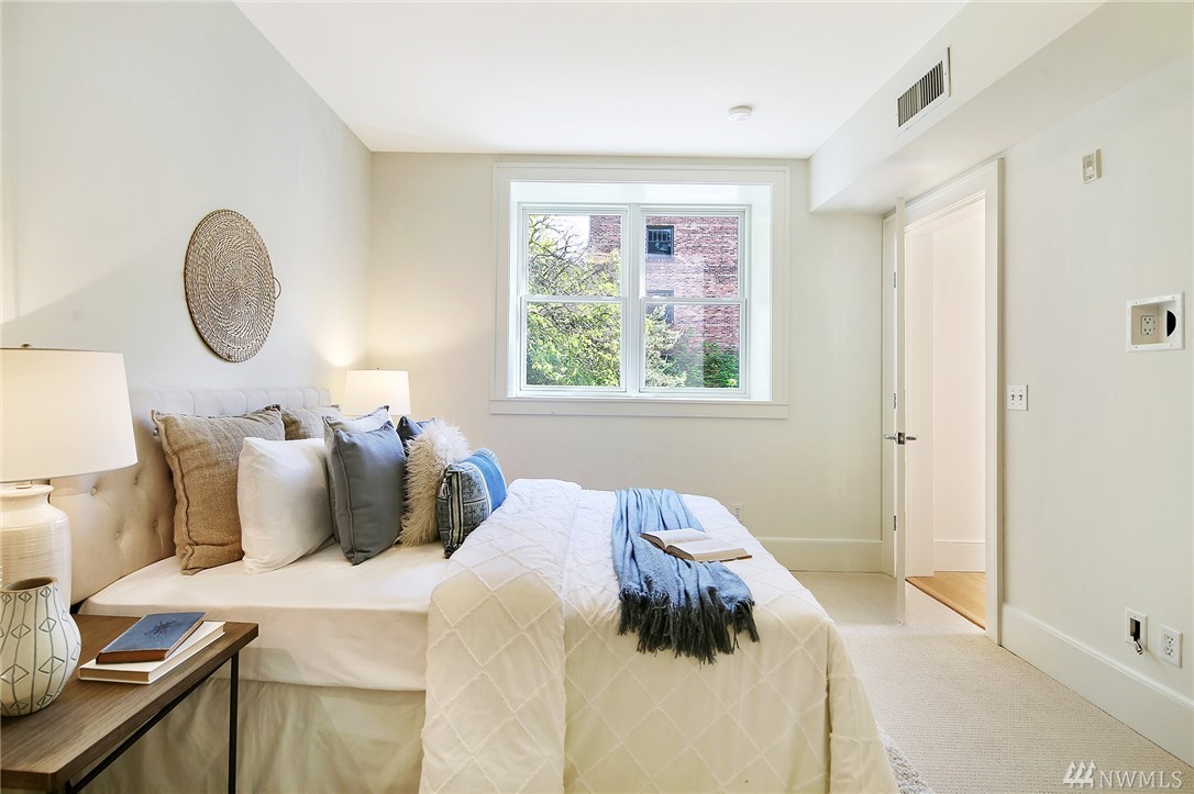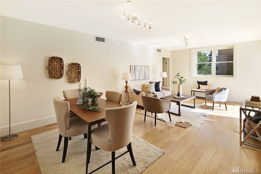 Location is everything! This 2 bed + den is the SE corner unit in an 18-unit building on Queen Anne's South Slope with a west facing patio. Leona is an exquisite, elegant and sophisticated historic 1908 building that was completely redone in 2008 keeping the exterior intact. Hardwood floors, stone slab countertops, stone tile showers, Subzero, Wolf, Miele appliances. New carpet in bedrooms and freshly painted throughout. 1 parking, 1 storage, pet friendly. Walk score of 95 and convenient to all of the fabulous amenities that Queen Anne offers including parks, grocery stores and restaurants.