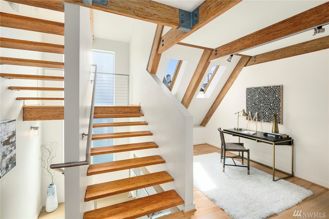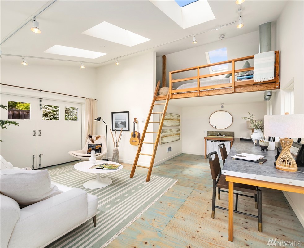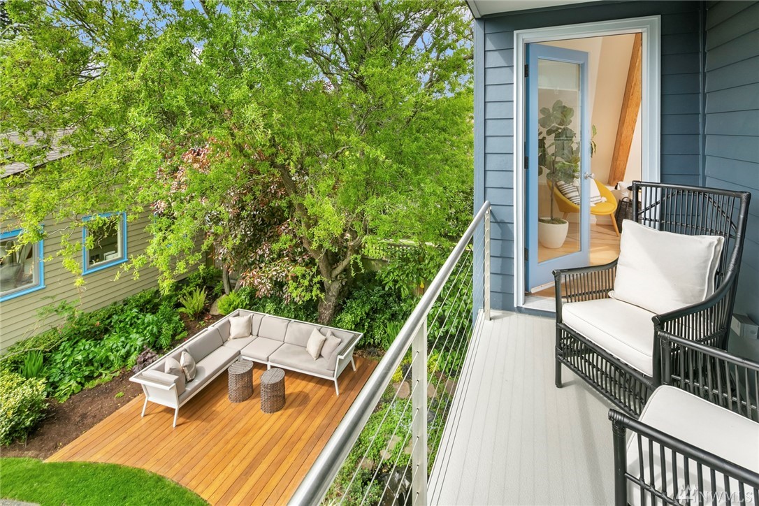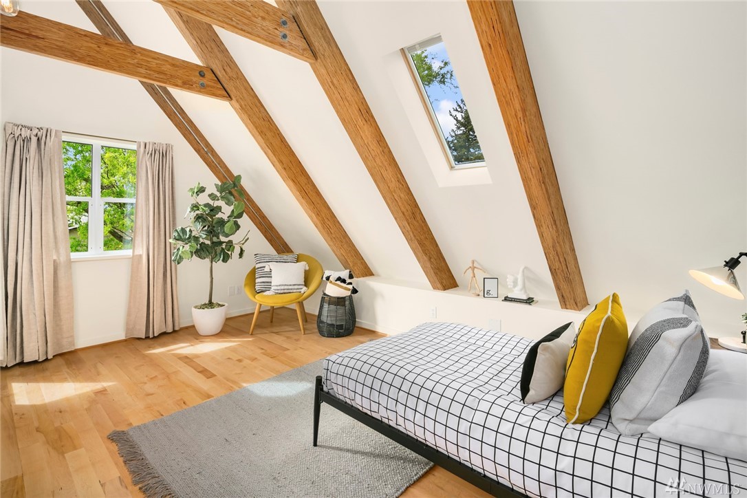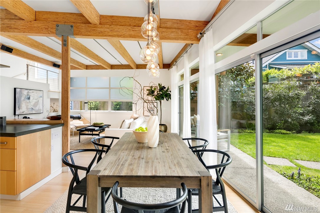 A truly one-of-a-kind home that has it all. Located just .3 miles to Queen Anne Ave. yet private & serene. Traditional on the outside but modern on the inside combining elegance & beauty with what is expected of modern living. Open format main floor with soaring 10’ ceilings & exposed parallel strand beams. Large slider doors reveal the backyard & mature garden oasis which seamlessly connects to the living space. 3 bed 2 bath up (including Owner’s Suite), 3rd floor flex space & skylights for every room. Lower level could easily be converted to ADU, currently 4th bedroom with en-suite & media room. Incredible detached studio with 13’ ceilings, loft, water/sewer, storage & plenty of light. Short 6-minute walk to all Queen Anne has to offer.
